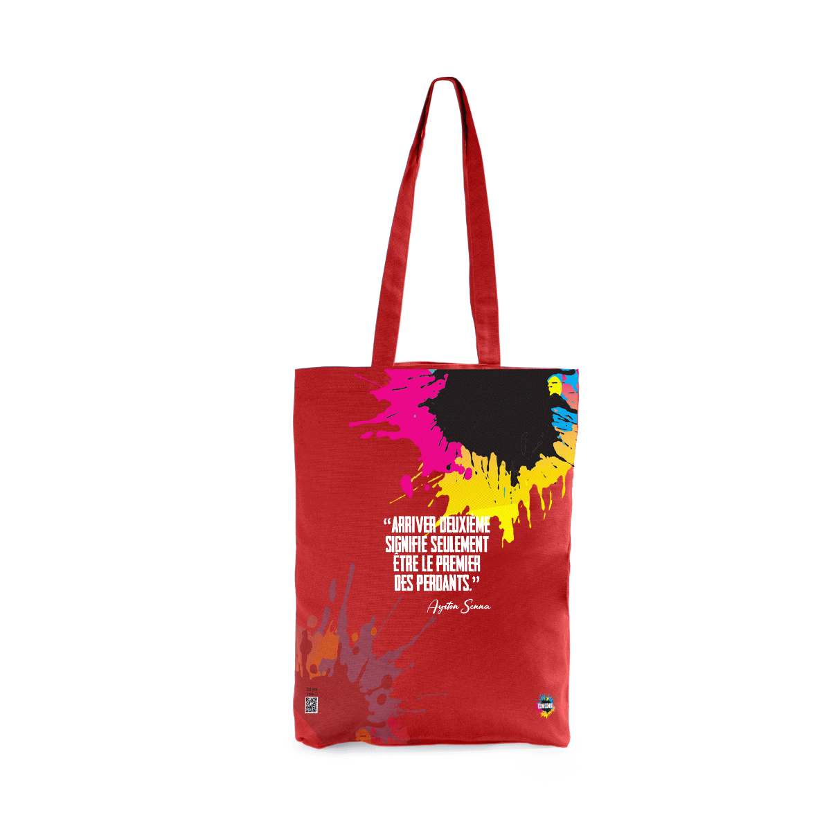 Borsa 100% cotone biologico, 270 g/m², colorato con tasselli sulla base. Tracolla da 70 cm. Misure - 38 cm / 42 cm / 9 cm