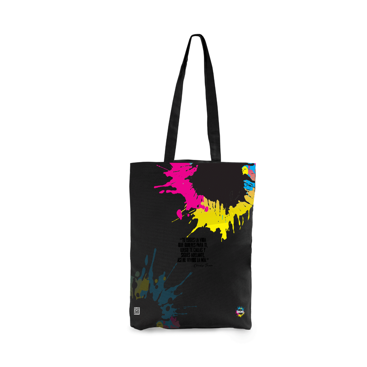 Borsa 100% cotone biologico, 270 g/m², colorato con tasselli sulla base. Tracolla da 70 cm. Misure - 38 cm / 42 cm / 9 cm