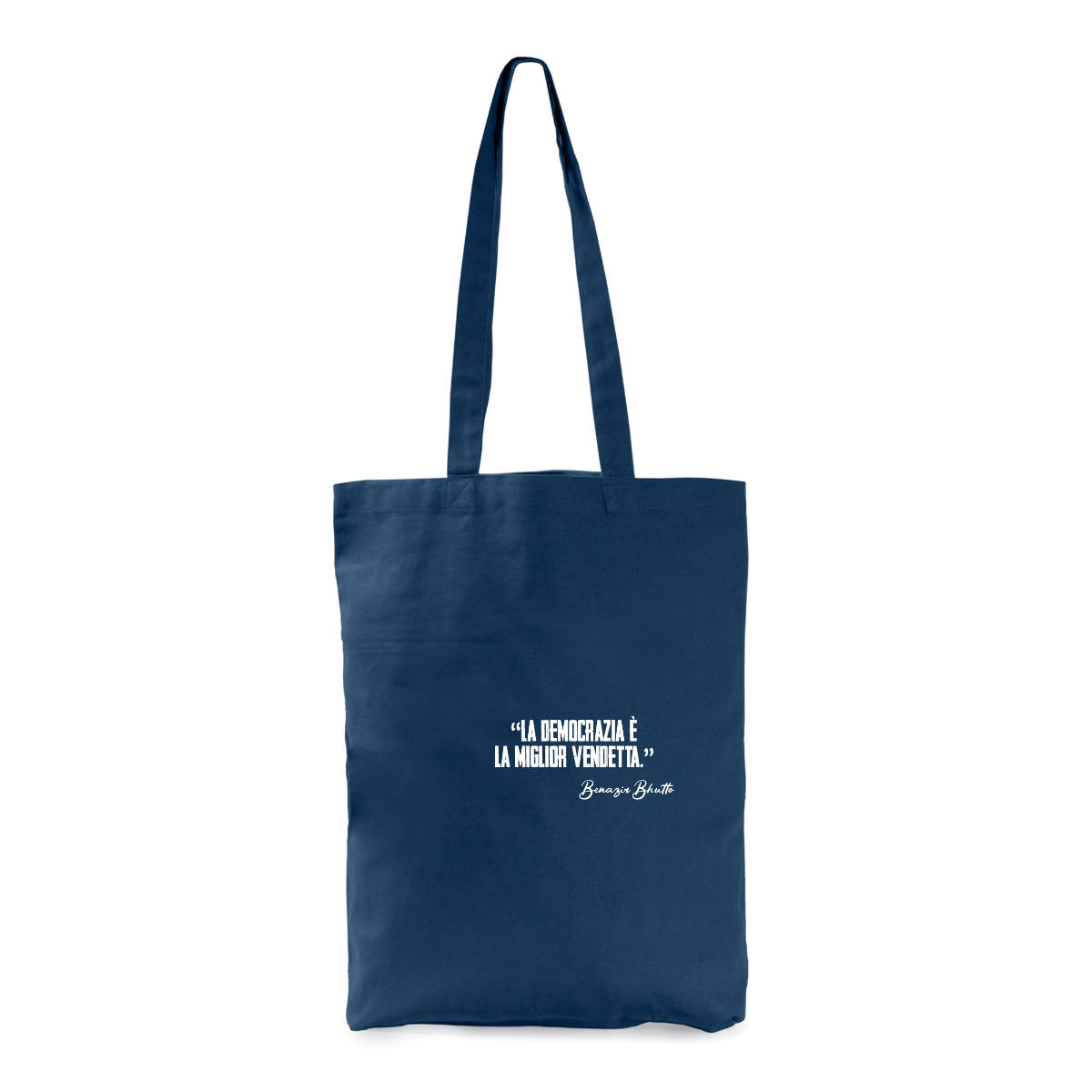 Bolsa de algodón 100 % orgánico, 270 g/m², coloreada con borlas en la base. Asa de hombro de 70 cm. Dimensiones: 38 cm / 42 cm / 9 cm.