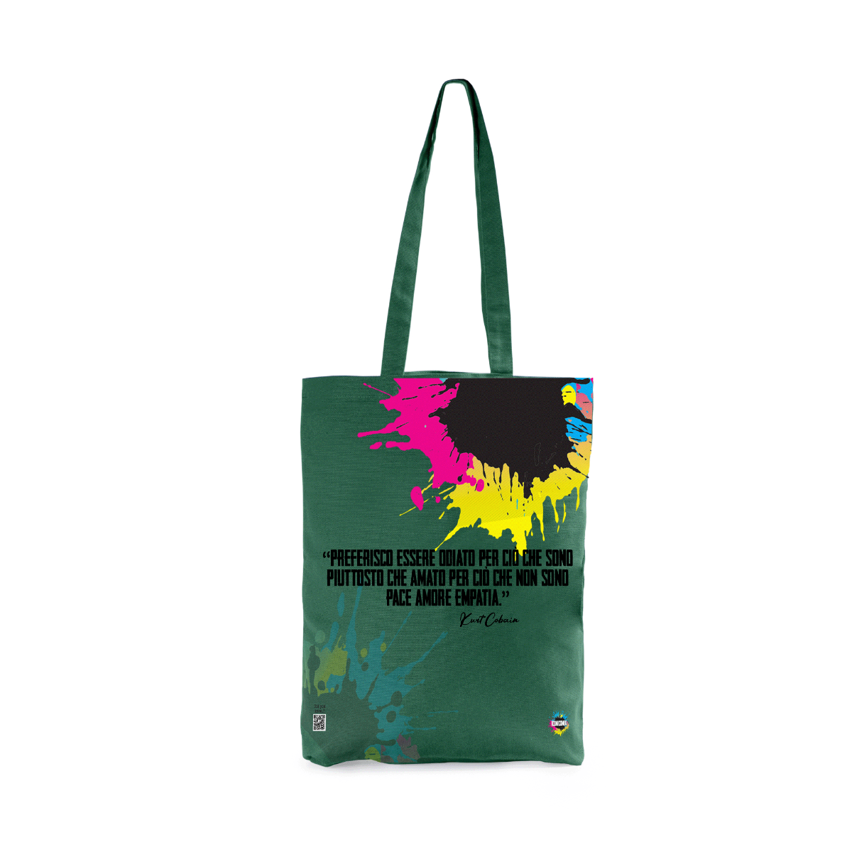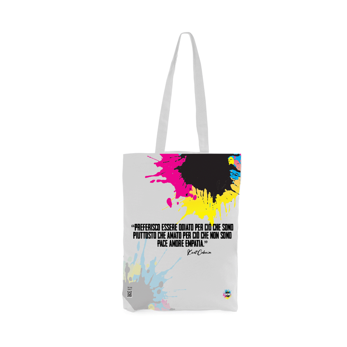 Borsa 100% cotone biologico, 270 g/m², colorato con tasselli sulla base. Tracolla da 70 cm. Misure - 38 cm / 42 cm / 9 cm