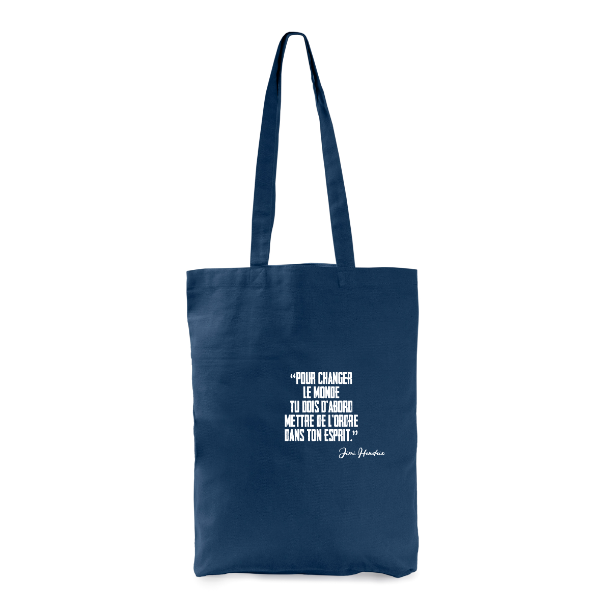 Bolsa de algodón 100 % orgánico, 270 g/m², coloreada con borlas en la base. Asa de hombro de 70 cm. Dimensiones: 38 cm / 42 cm / 9 cm.