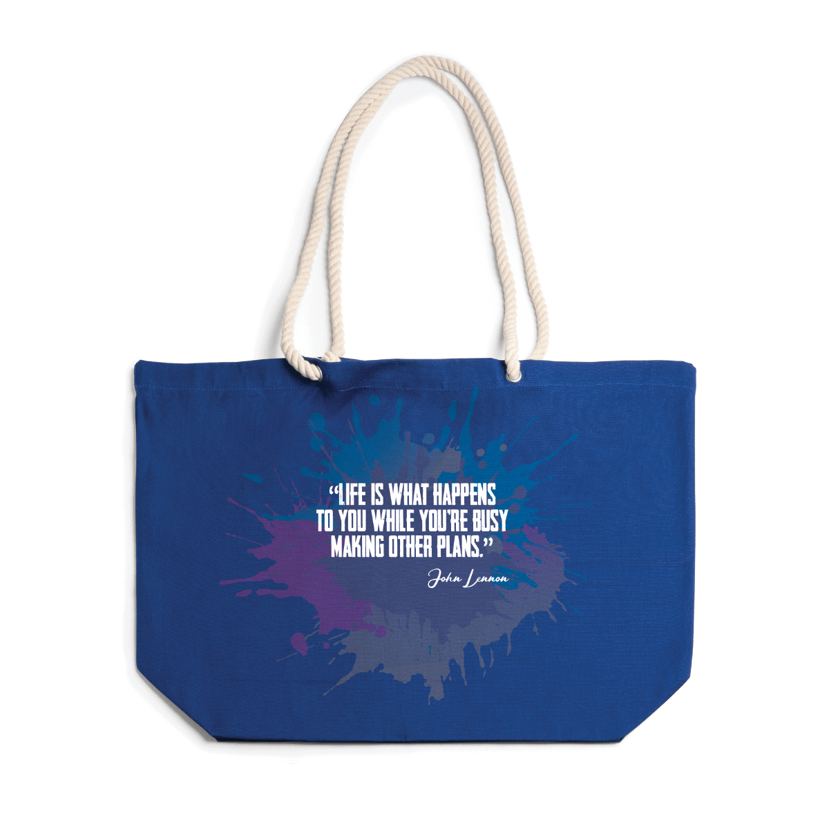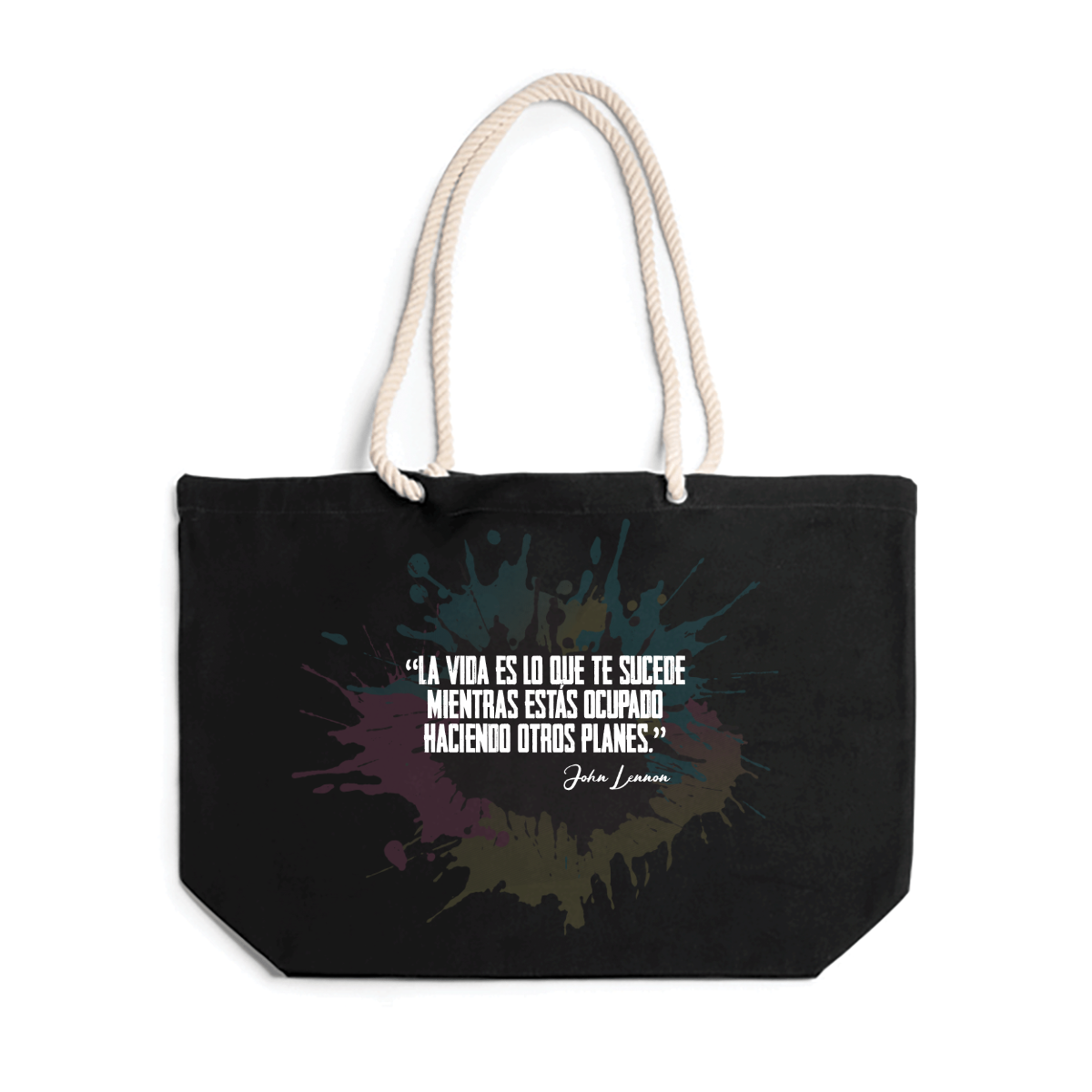 Sac de plage 100 % coton, 260 g/m². Bandoulière robuste en coton de style nautique. Bandoulière de 90 cm. Tissu 100 % coton. Dimensions : 55 cm - 39 cm - 15 cm.