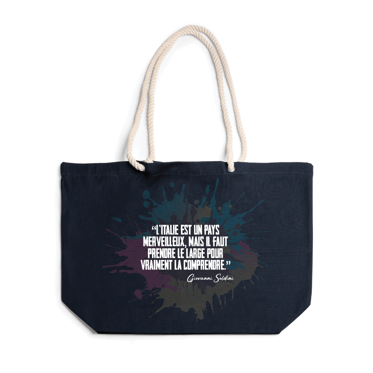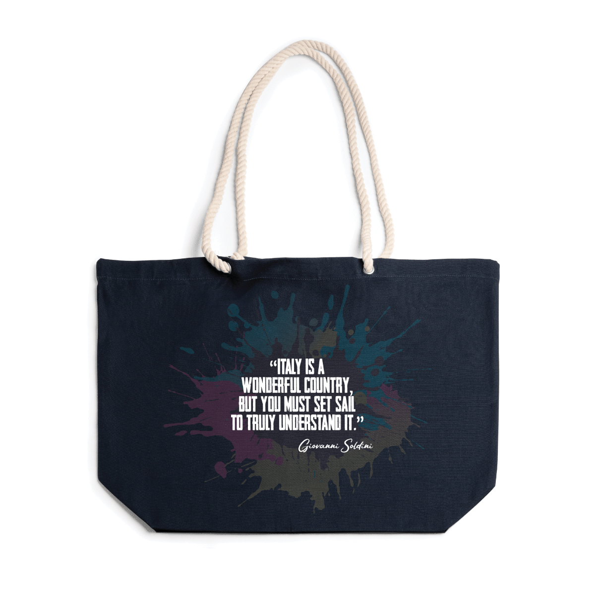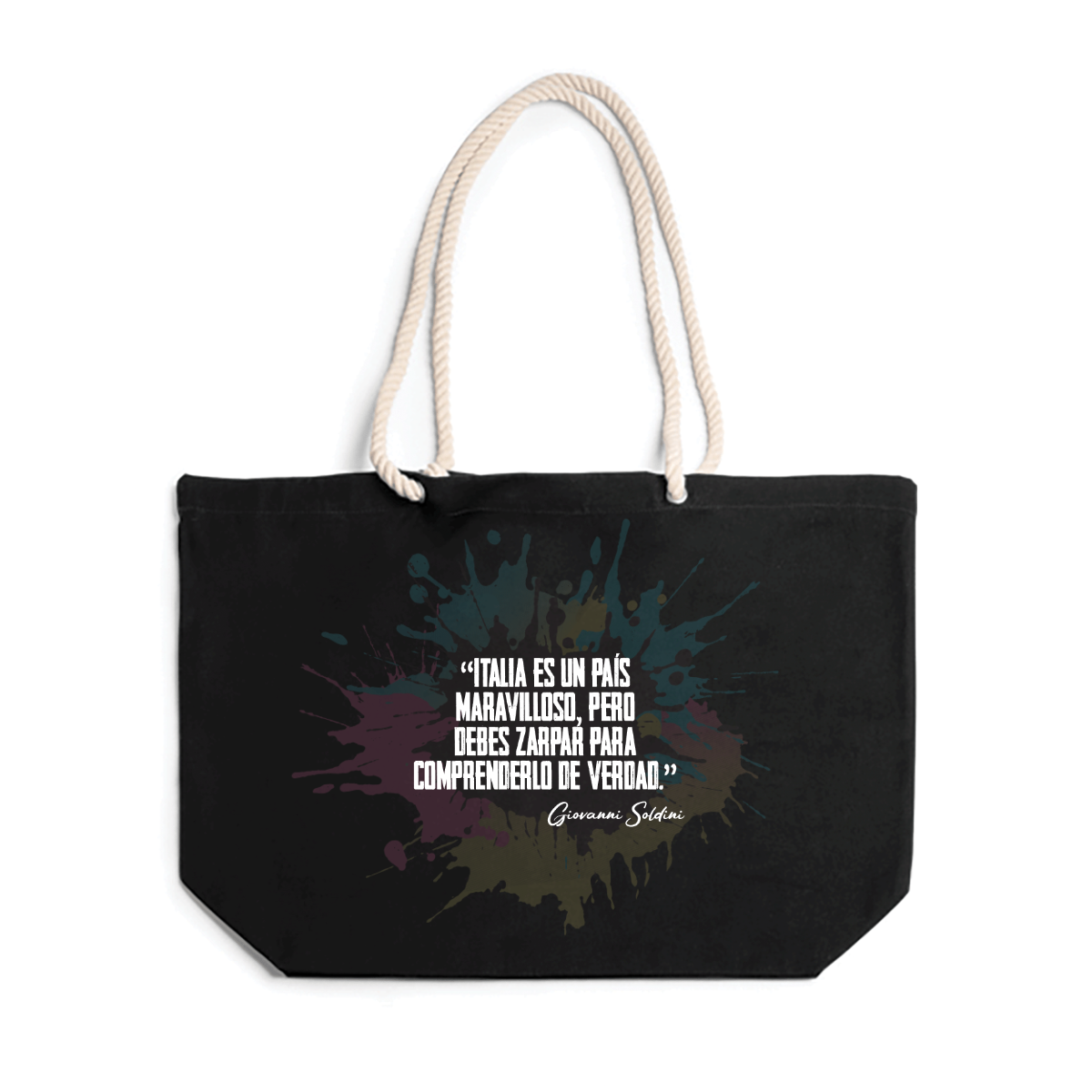 Borsa realizzata in cotone 100%,  260g/m². Robusta, con tracolla in stile nautico realizzata in cotone da 90 cm. Tessuto di Algodón 100%. Misure 55 cm - 39cm - 15cm
