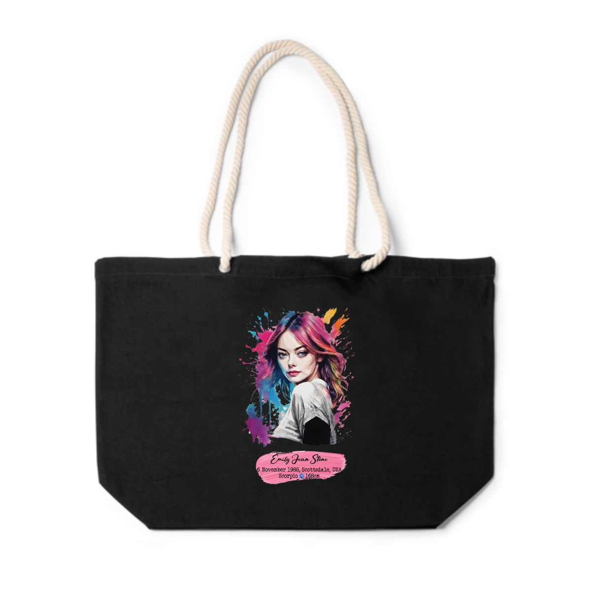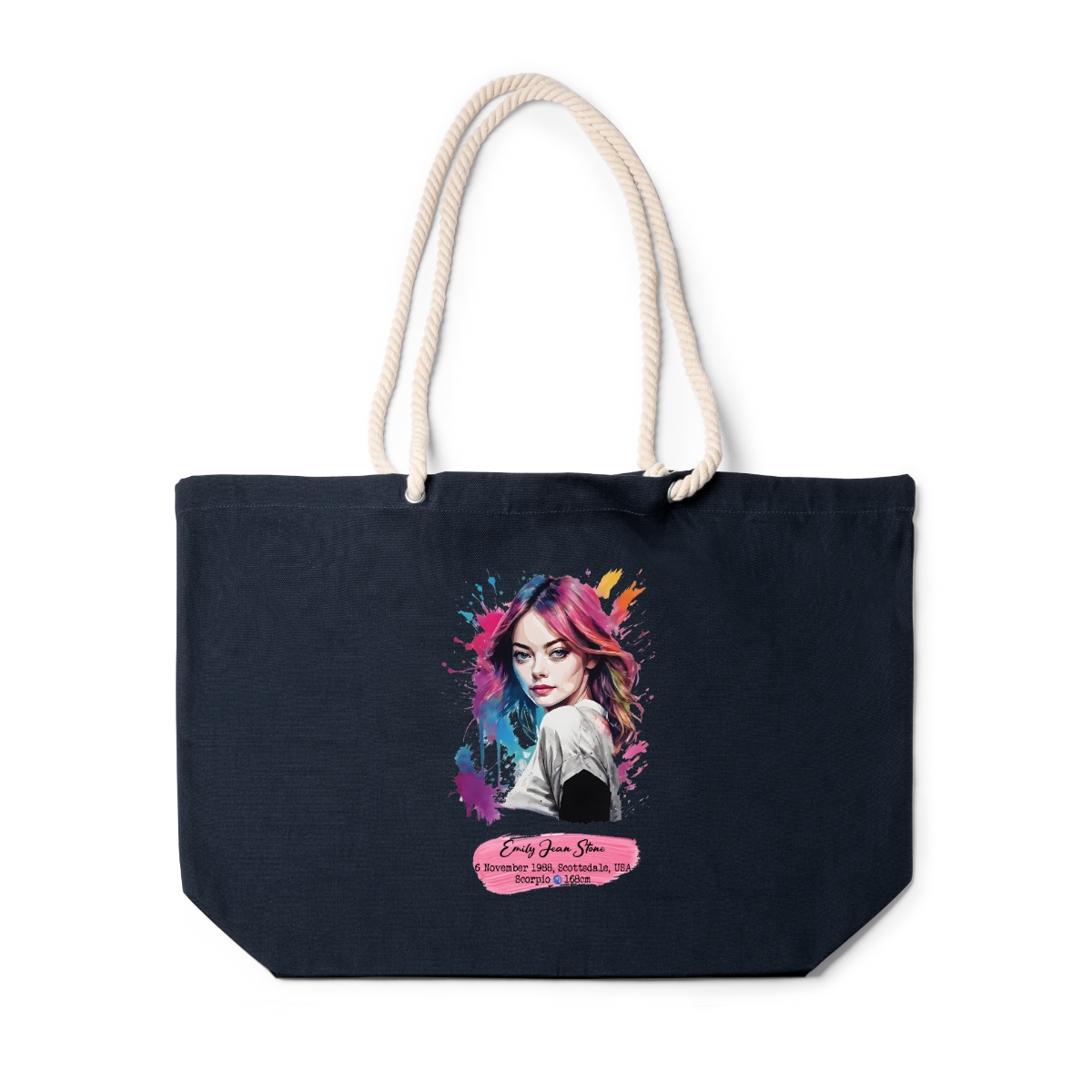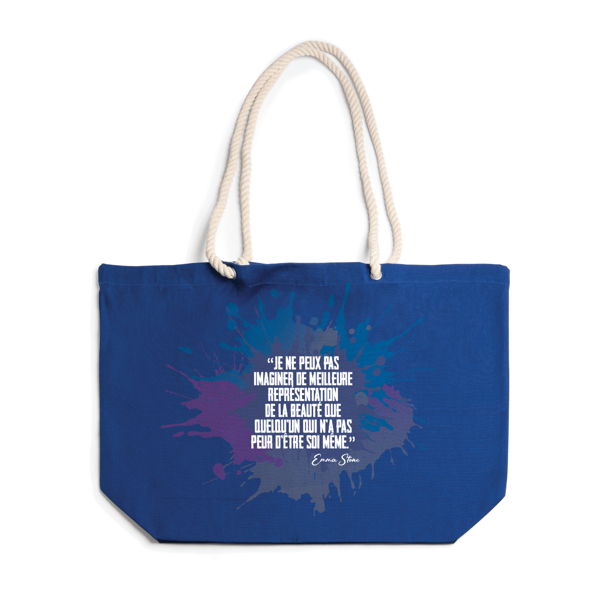 Sac de plage 100 % coton, 260 g/m². Bandoulière robuste en coton de style nautique. Bandoulière de 90 cm. Tissu 100 % coton. Dimensions : 55 cm - 39 cm - 15 cm.