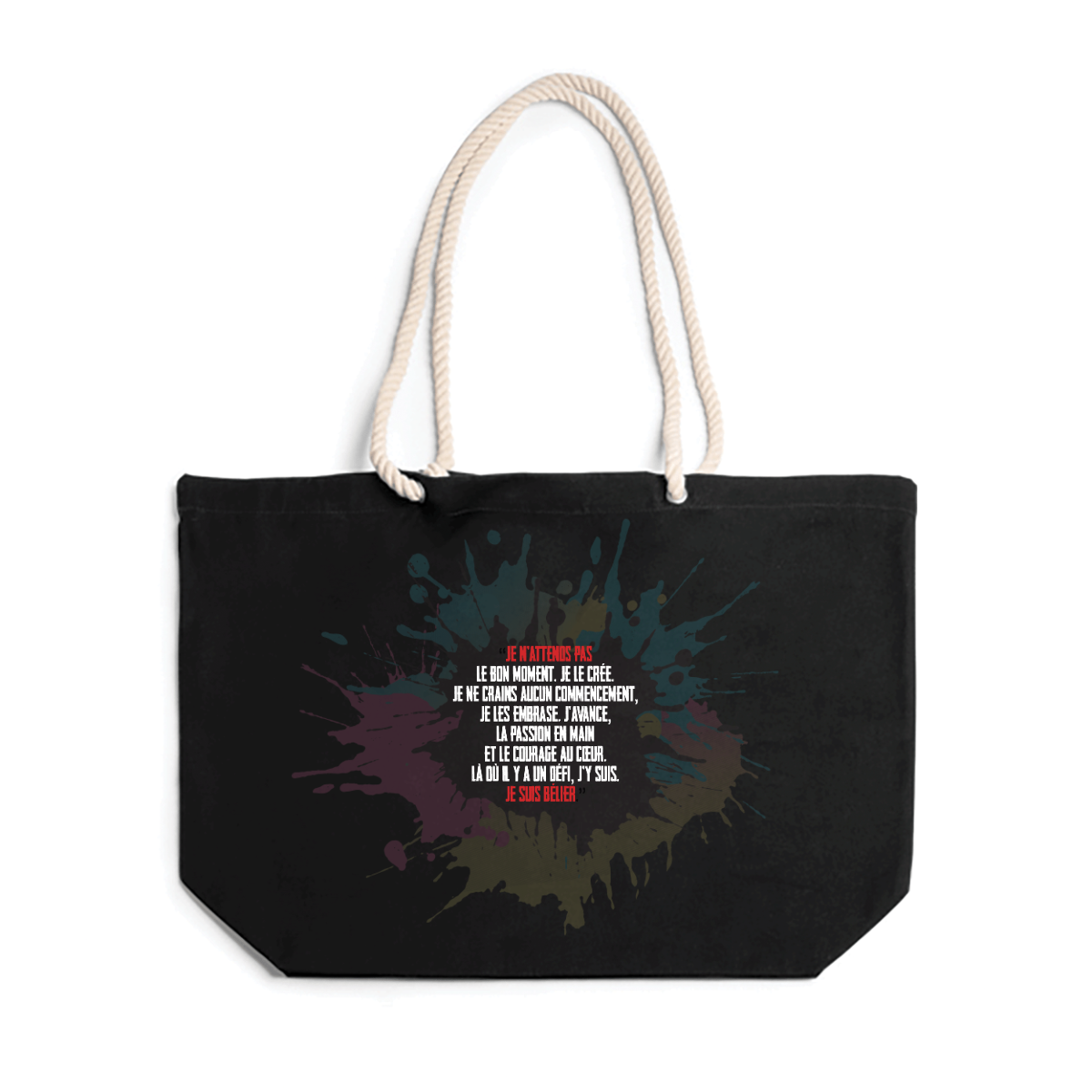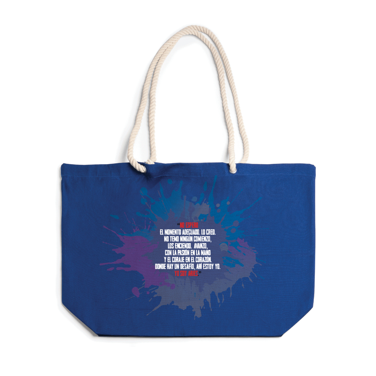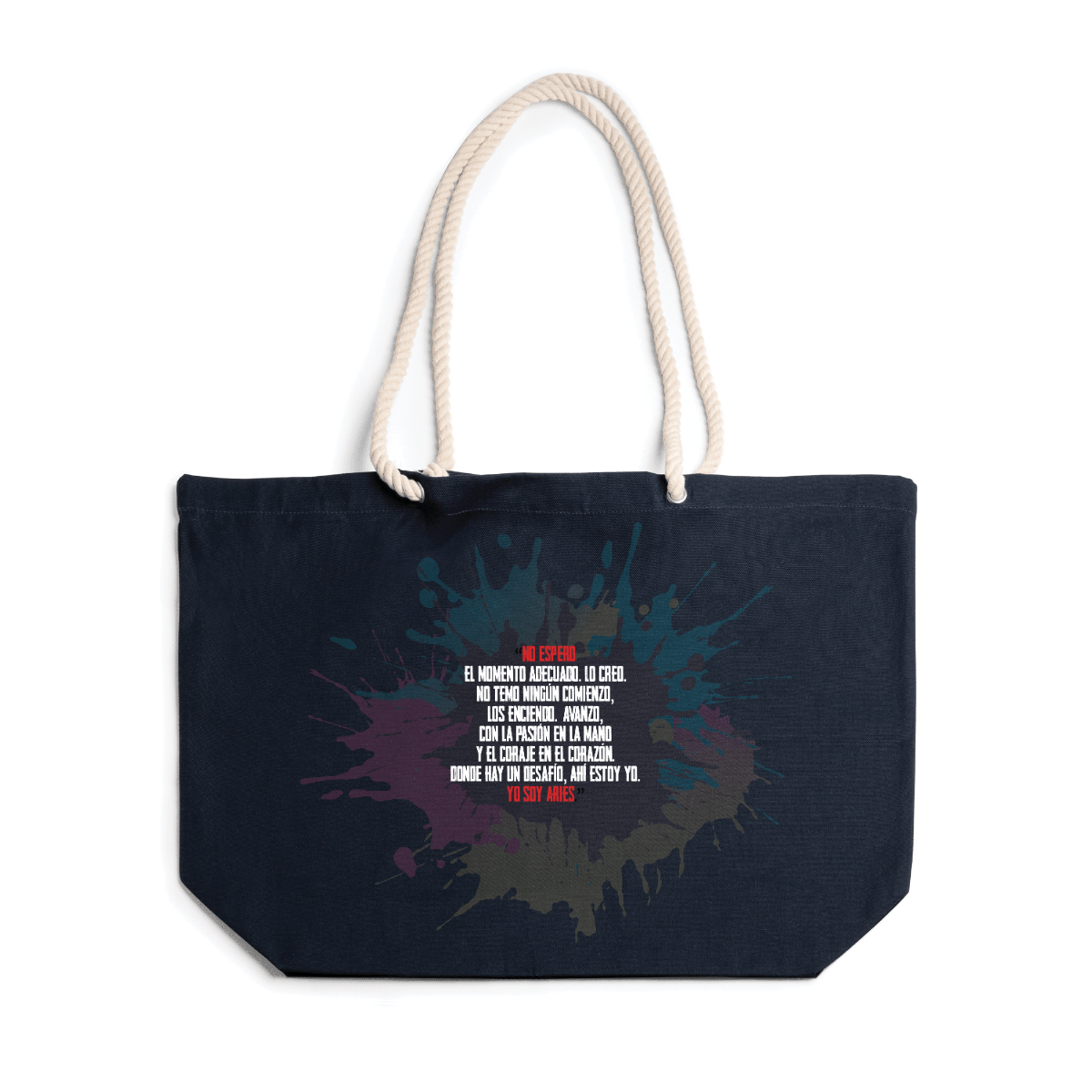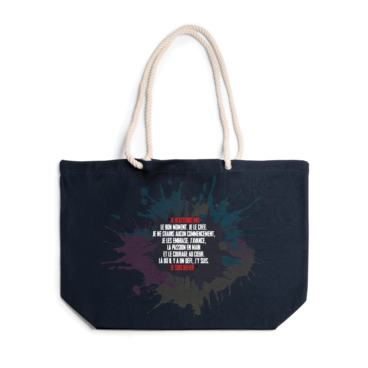 Sac de plage 100 % coton, 260 g/m². Bandoulière robuste en coton de style nautique. Bandoulière de 90 cm. Tissu 100 % coton. Dimensions : 55 cm - 39 cm - 15 cm.