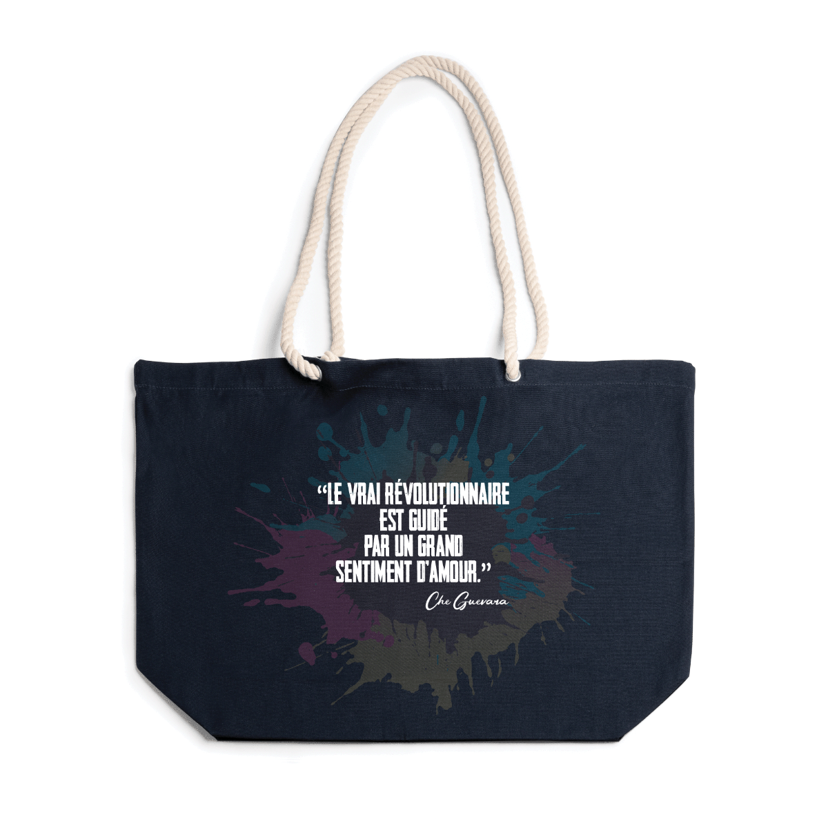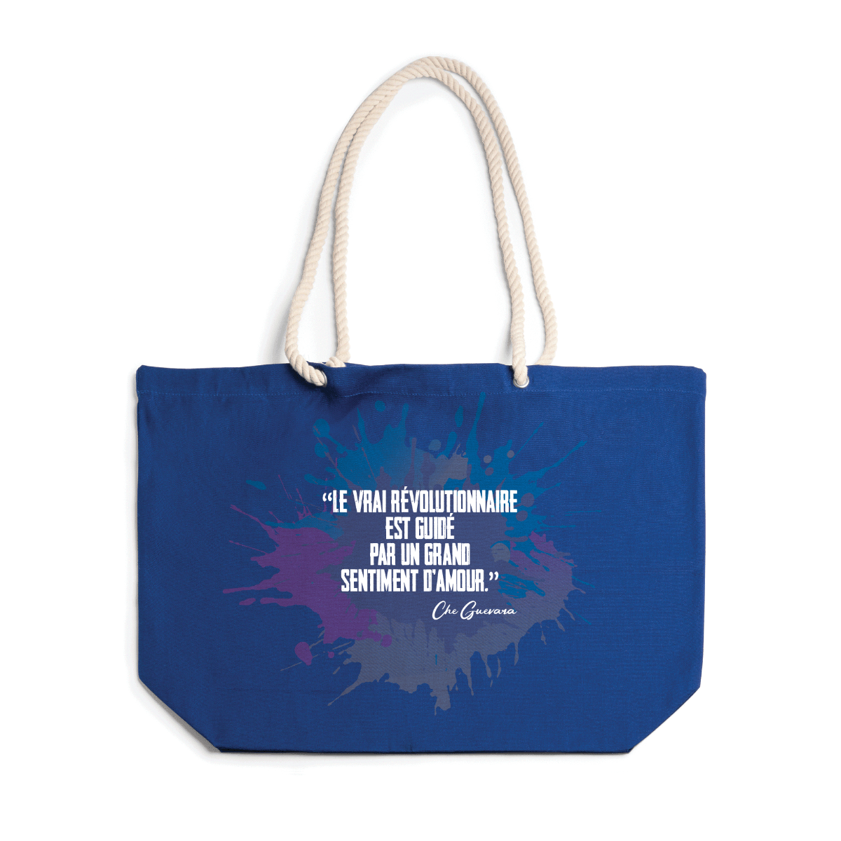Sac de plage 100 % coton, 260 g/m². Bandoulière robuste en coton de style nautique. Bandoulière de 90 cm. Tissu 100 % coton. Dimensions : 55 cm - 39 cm - 15 cm.