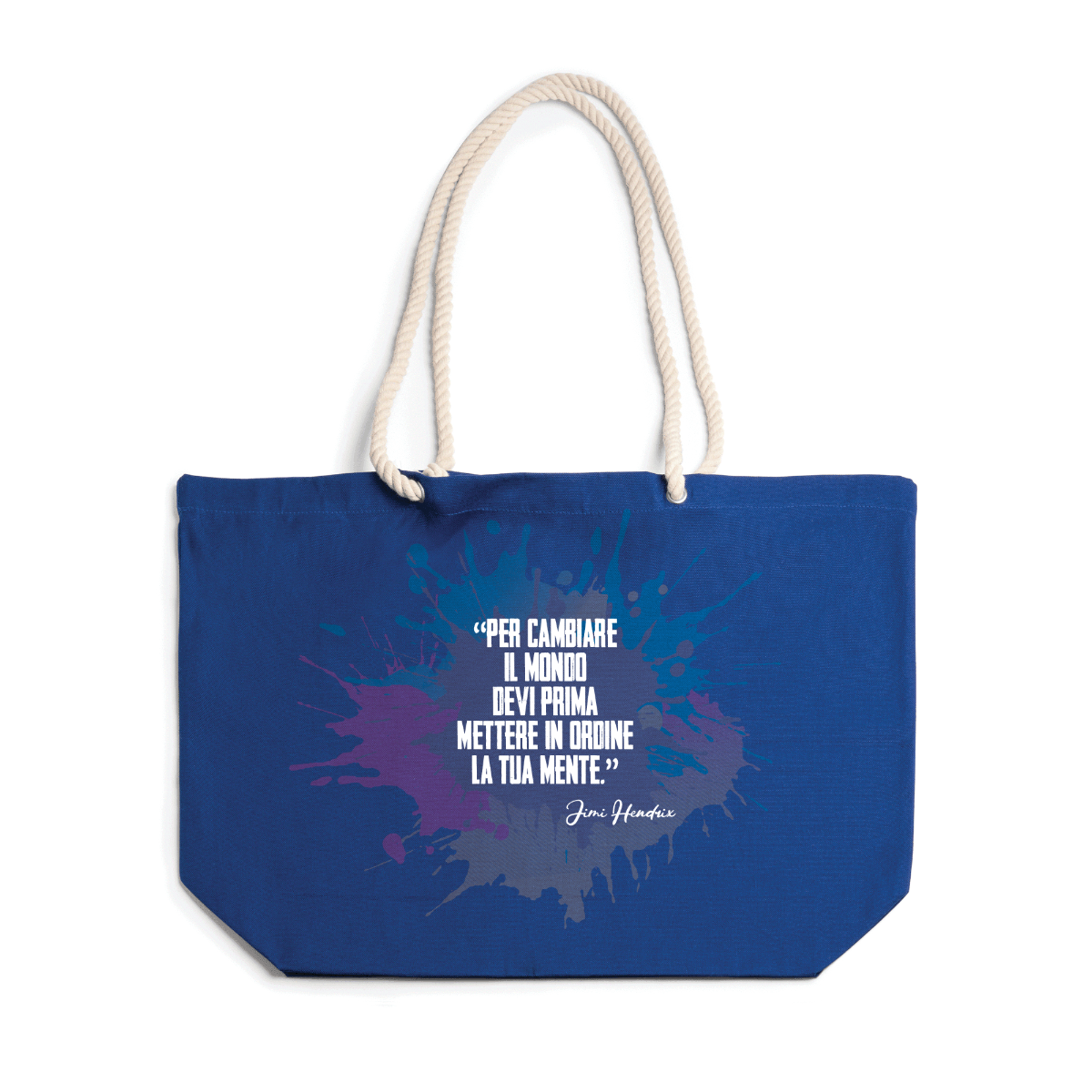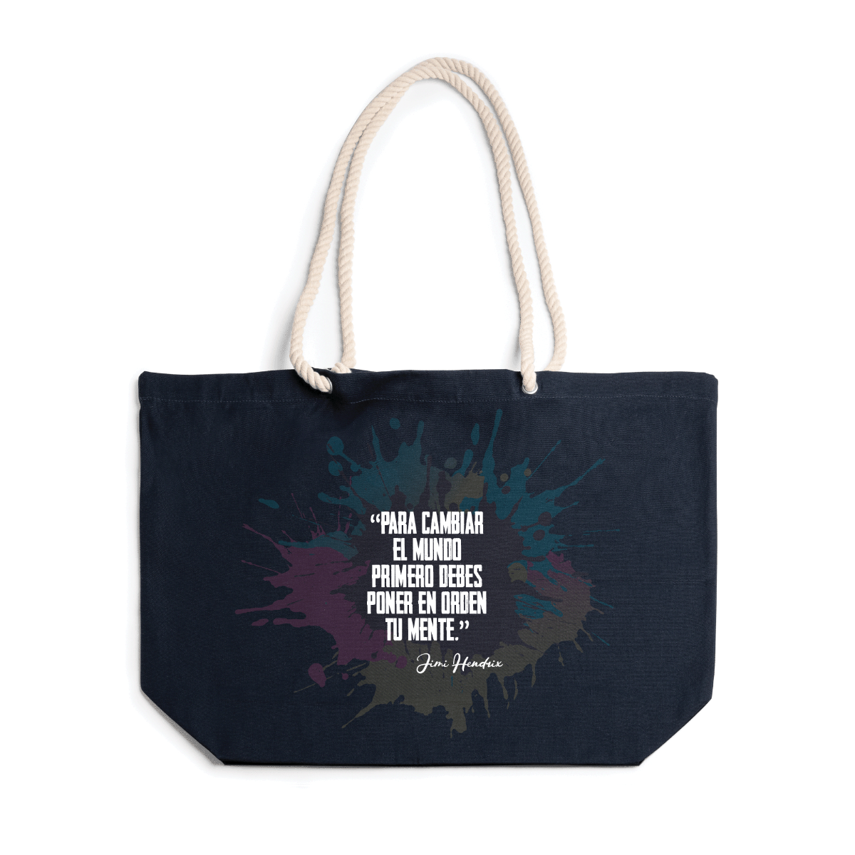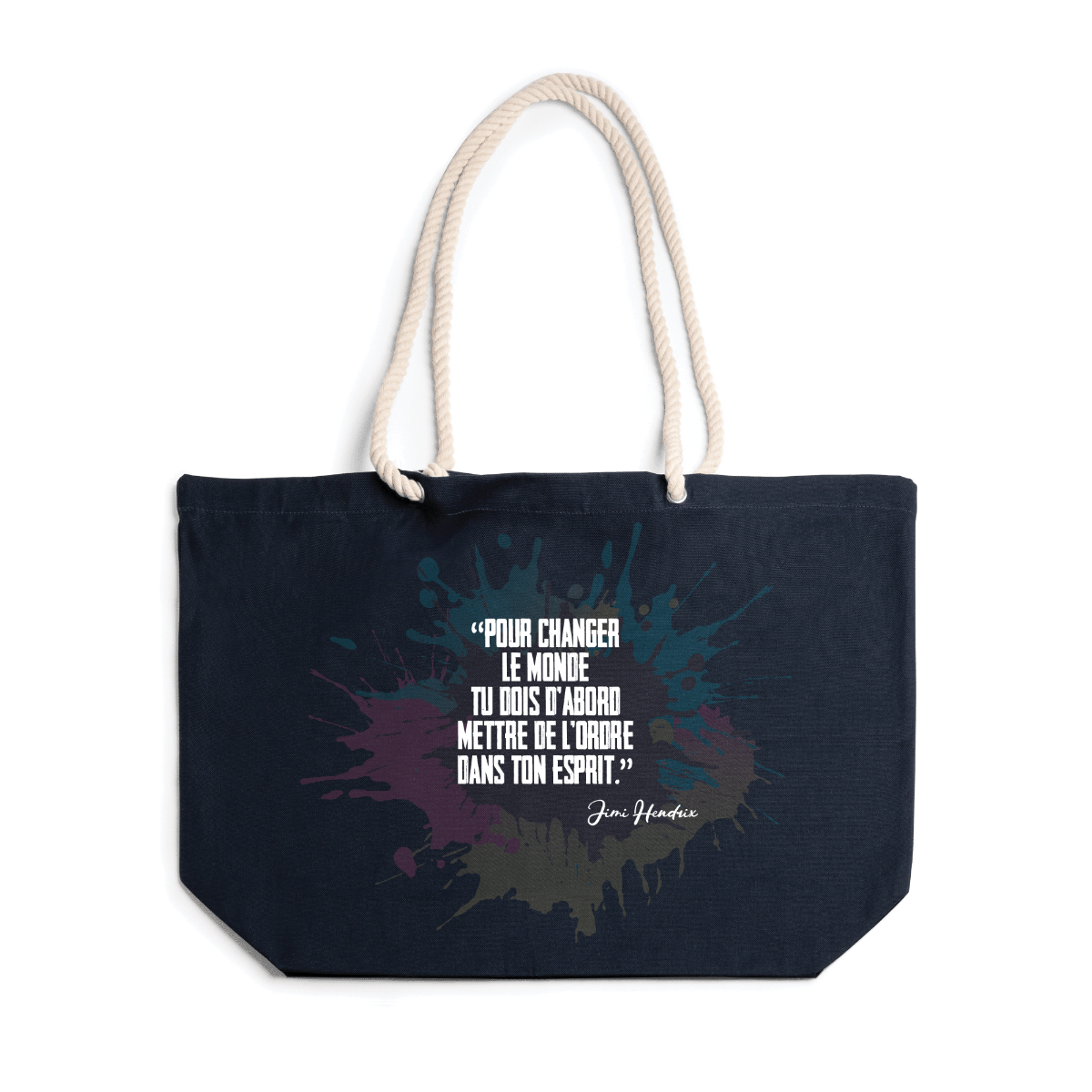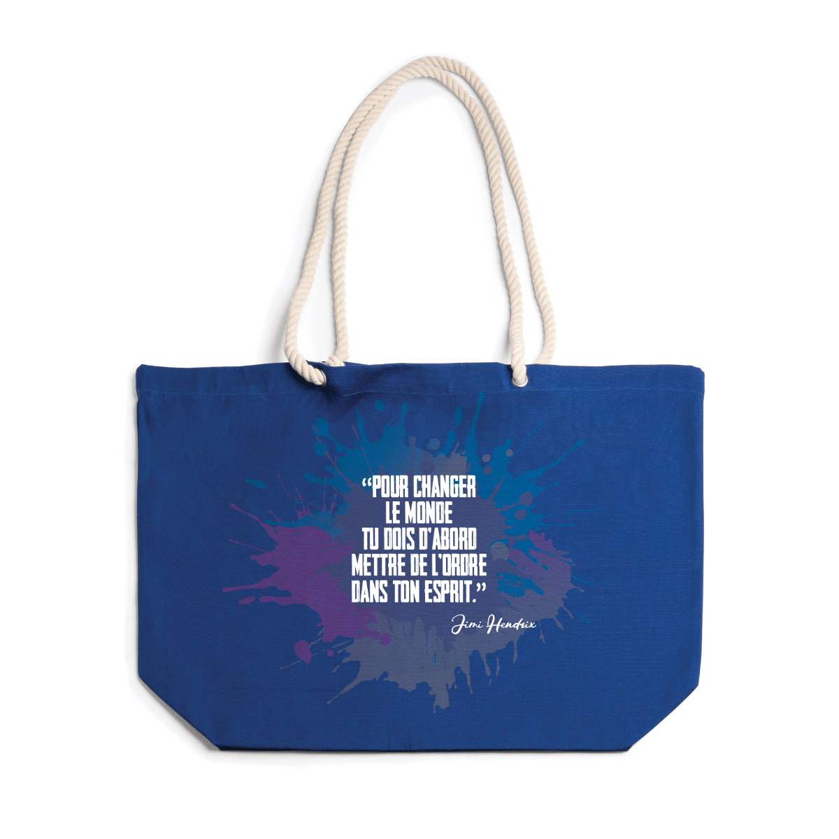 Sac de plage 100 % coton, 260 g/m². Bandoulière robuste en coton de style nautique. Bandoulière de 90 cm. Tissu 100 % coton. Dimensions : 55 cm - 39 cm - 15 cm.