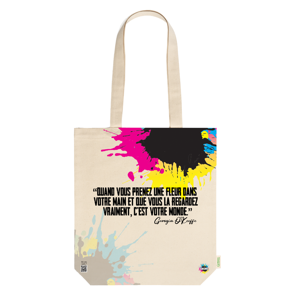 Borsa 100% cotone biologico 280 g/m² con soffietto e pratici manici lunghi 70 cm.  38cm/42cm/9cm