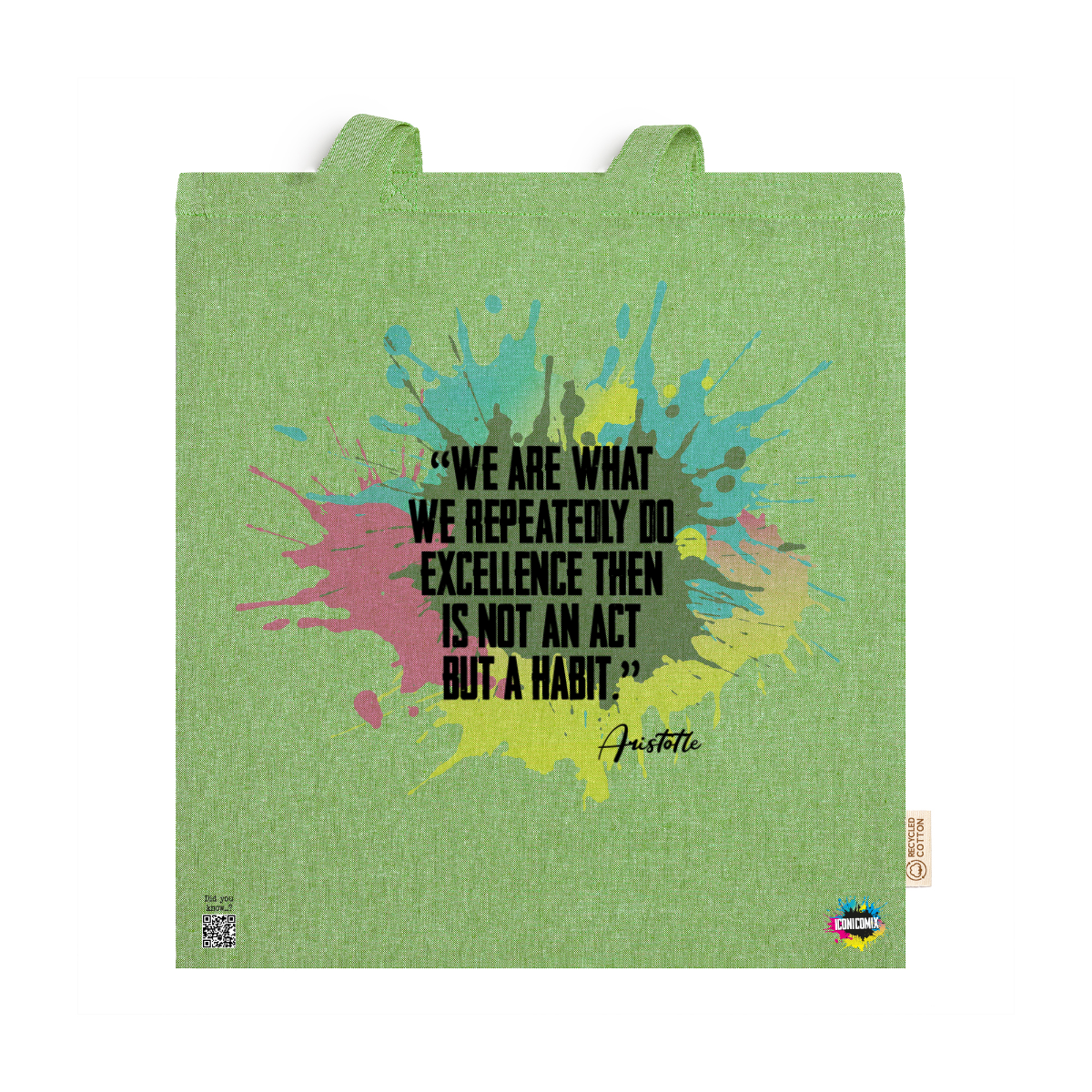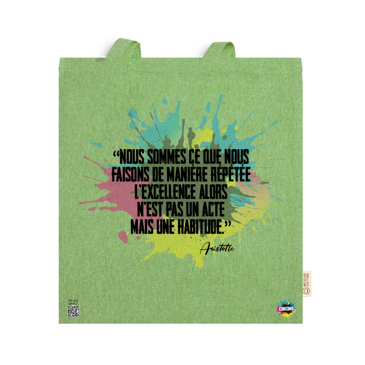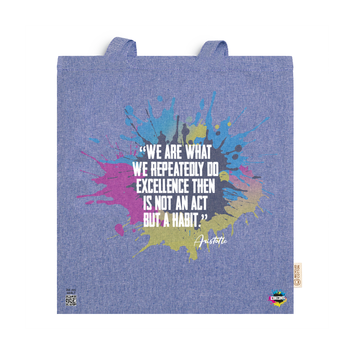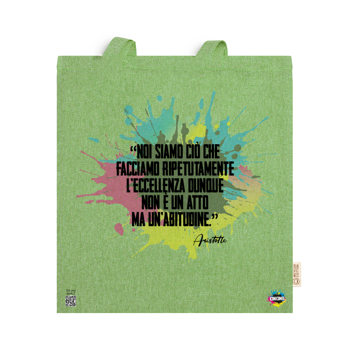 In ogni nostra grafica è presente anche un QR code che reindirizza al sito iconicomix.com, alla pagina ufficiale dell’icona che hai scelto. Una porta digitale che racconta la sua storia, le sue frasi e il suo mondo.