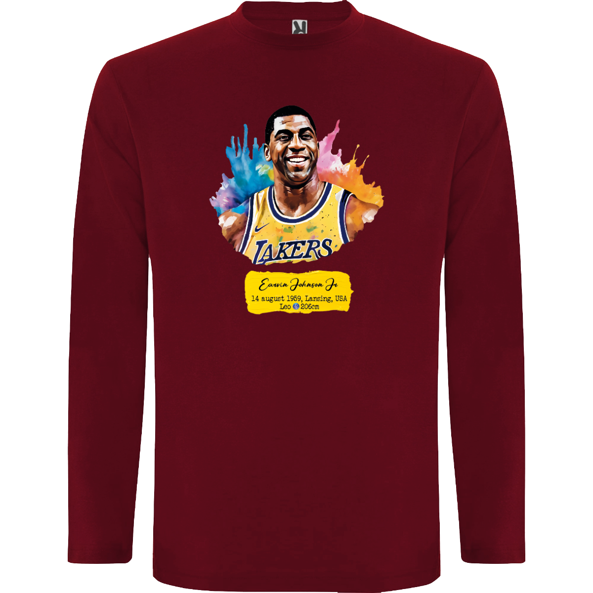 Arriva ai Los Angeles Lakers nel 1979 e cambia per sempre il modo di interpretare la posizione di playmaker. A 2,06 metri, Johnson guida la squadra come un direttore d’orchestra: passaggi dietro la schiena, alley-oop impossibili, sorrisi che spaccano il ghiaccio. Nasce lo “Showtime”: un basket fatto di velocità, creatività e gioia.
