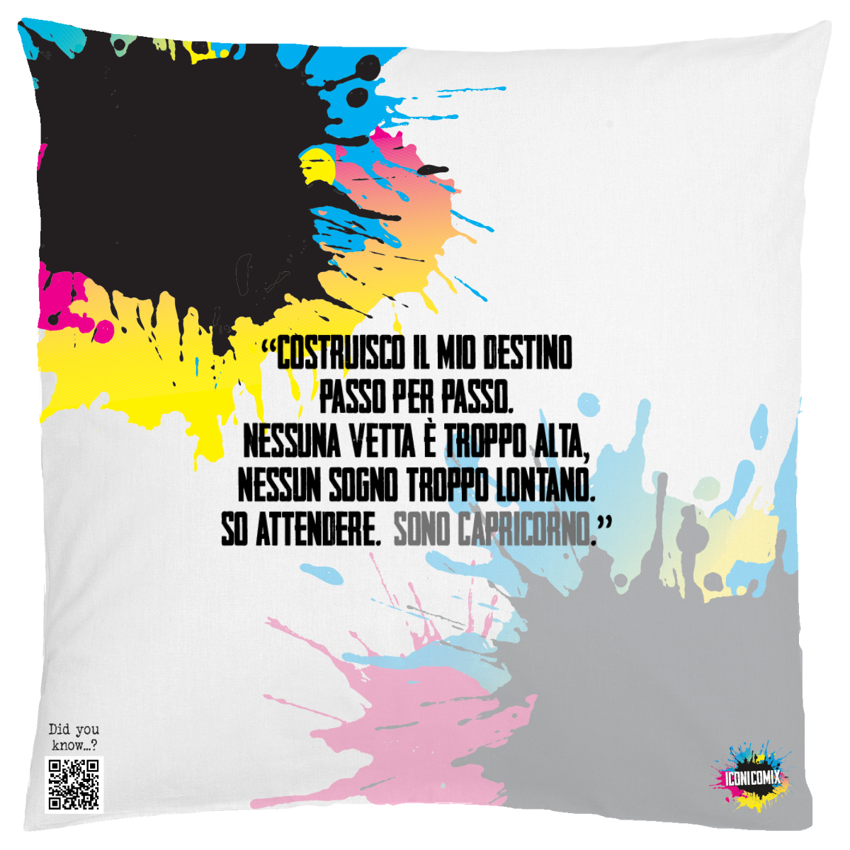 In ogni nostra grafica è presente anche un QR code che reindirizza al sito iconicomix.com, alla pagina ufficiale dell’icona che hai scelto. Una porta digitale che racconta la sua storia, le sue frasi e il suo mondo.