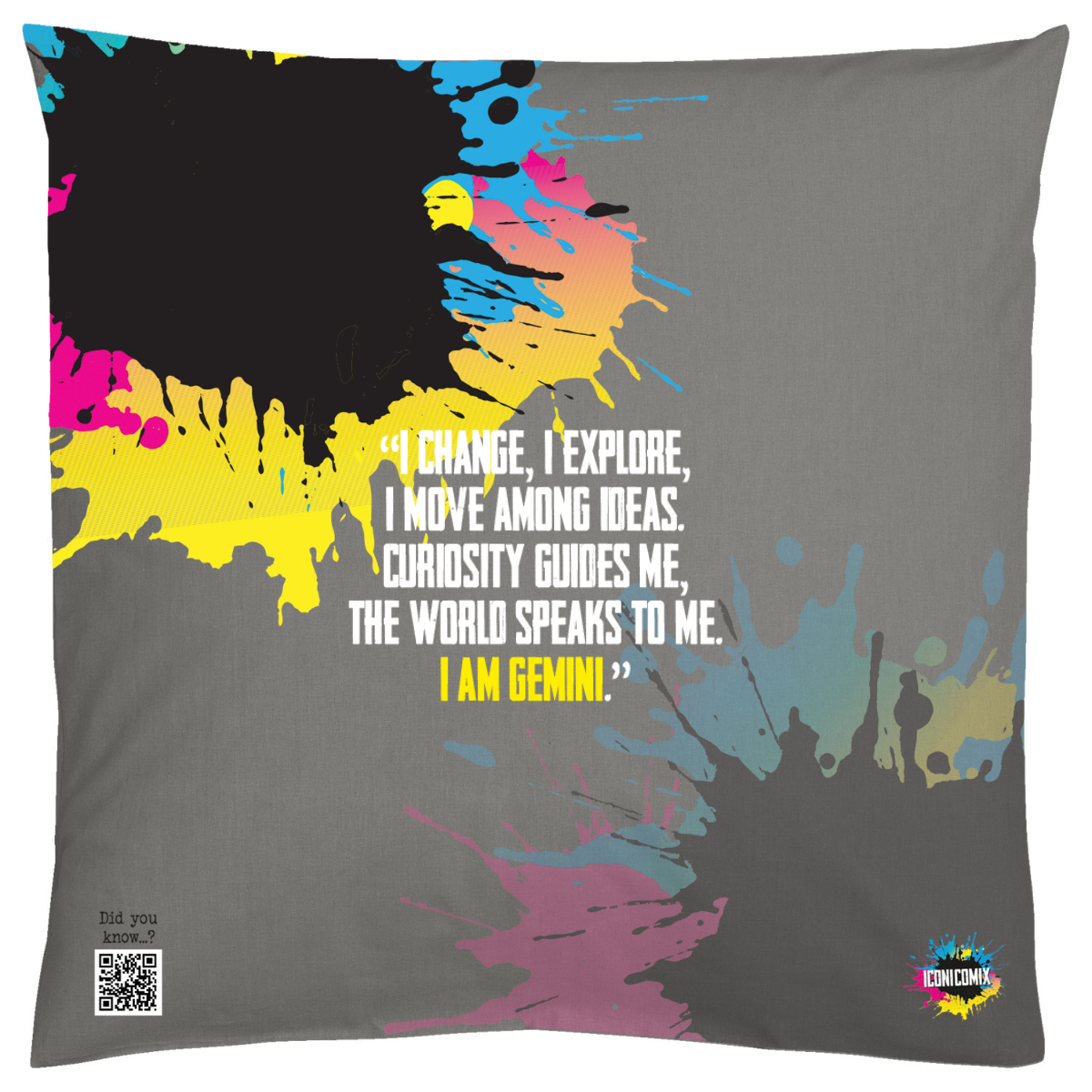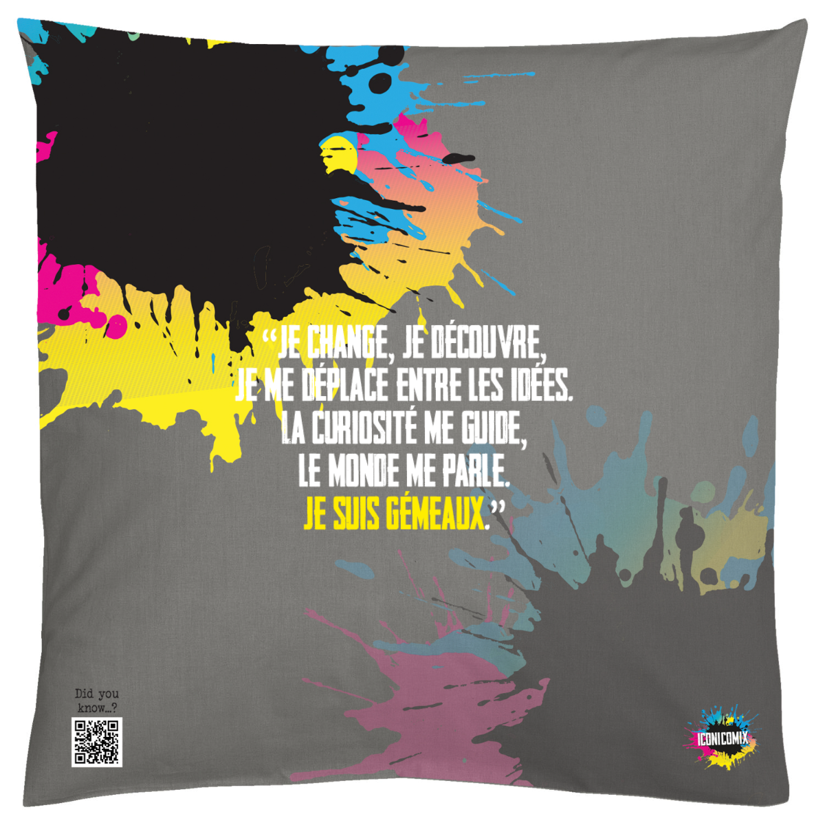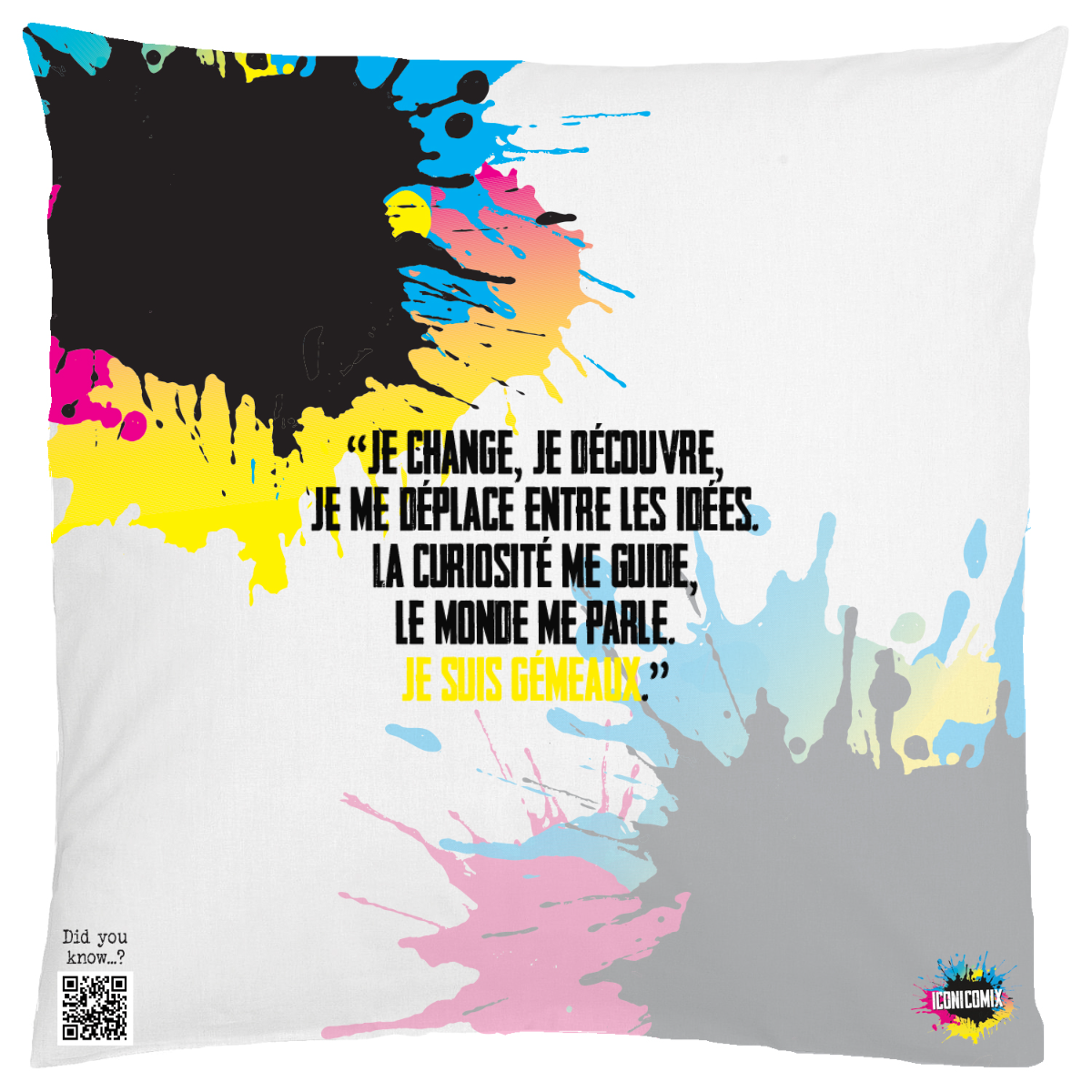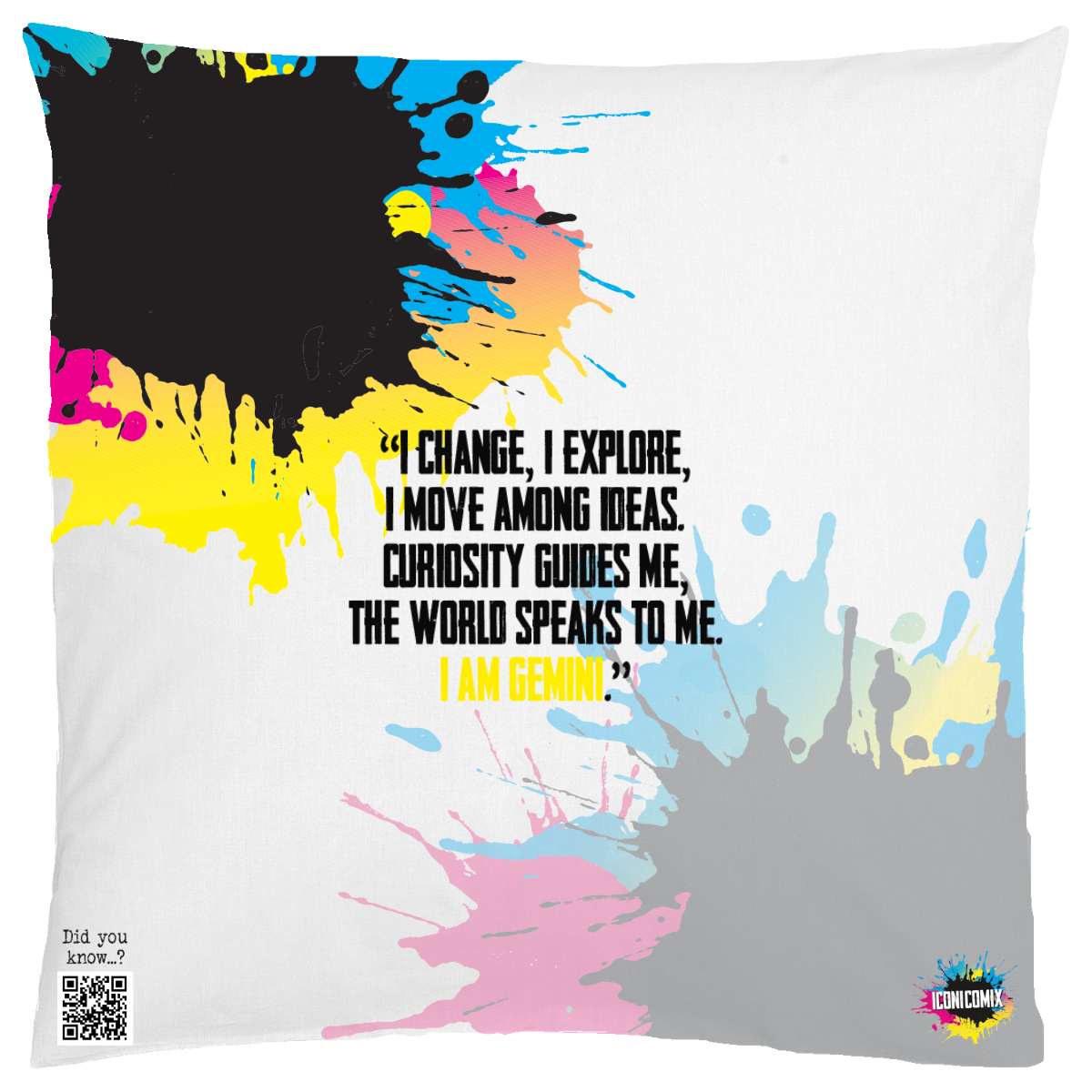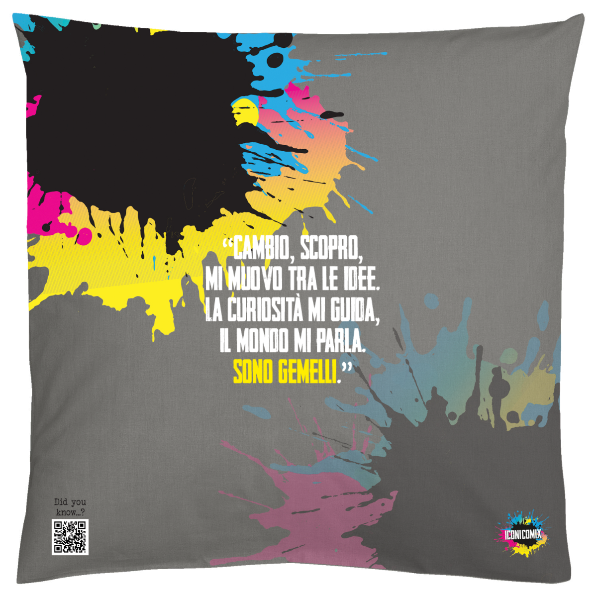 In ogni nostra grafica è presente anche un QR code che reindirizza al sito iconicomix.com, alla pagina ufficiale dell’icona che hai scelto. Una porta digitale che racconta la sua storia, le sue frasi e il suo mondo.