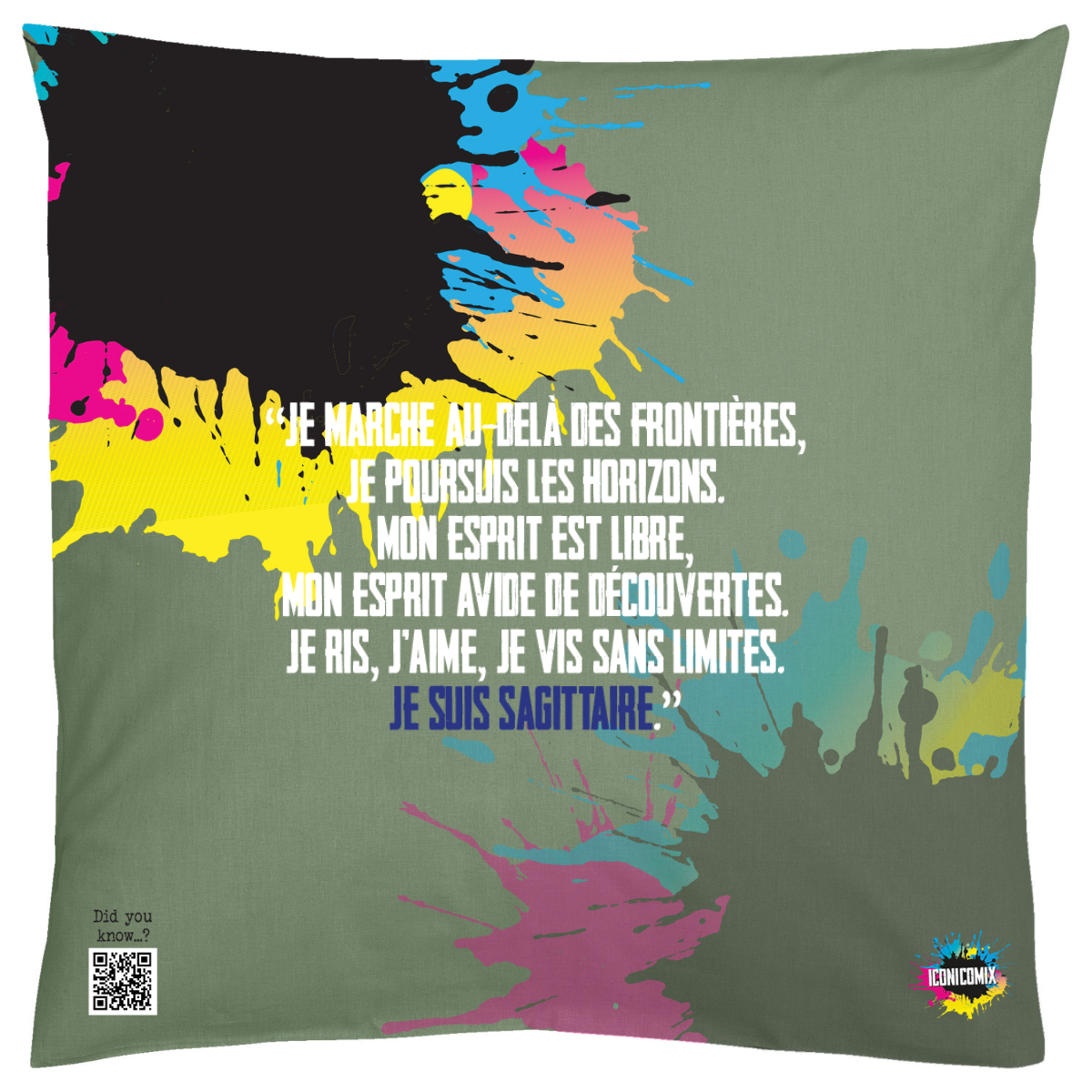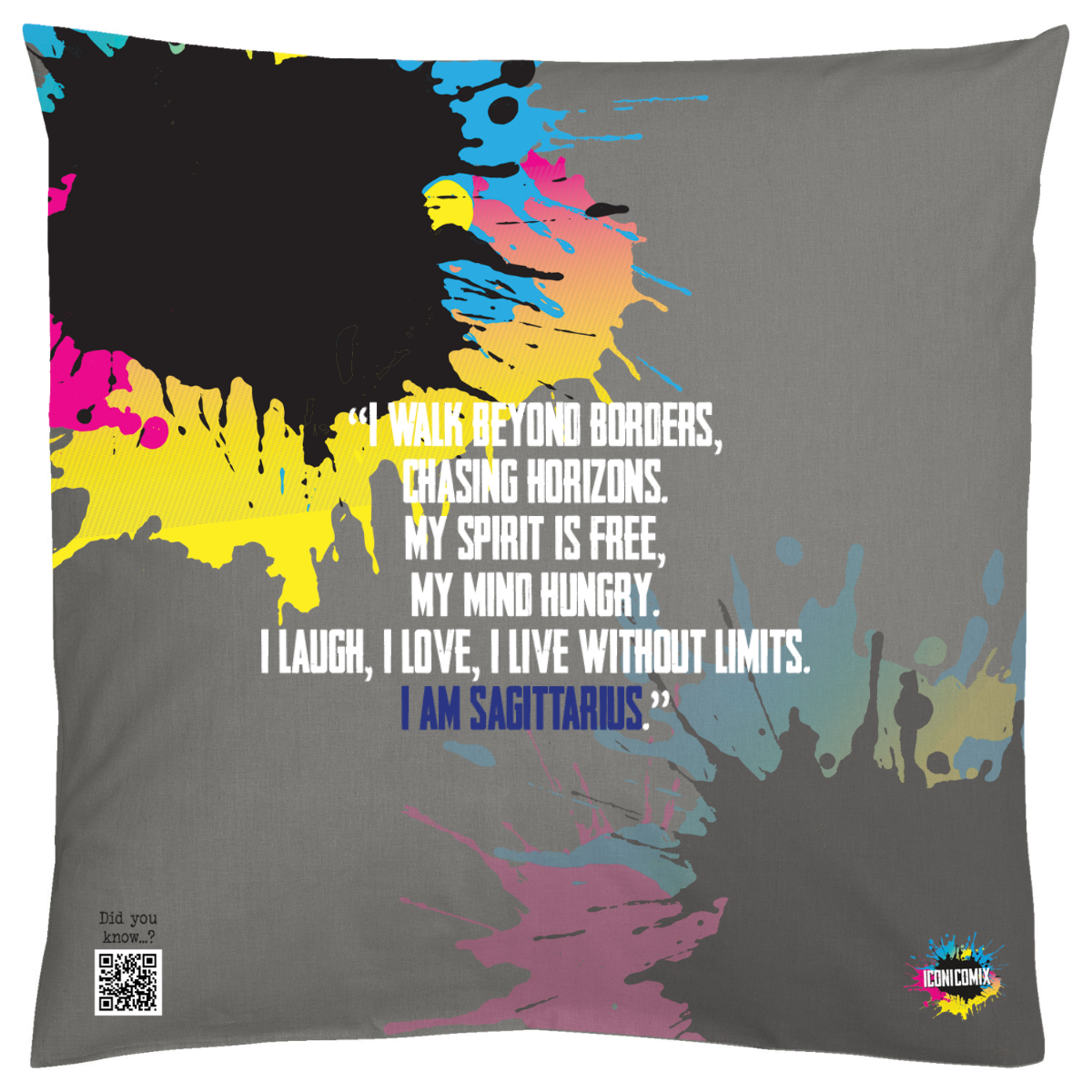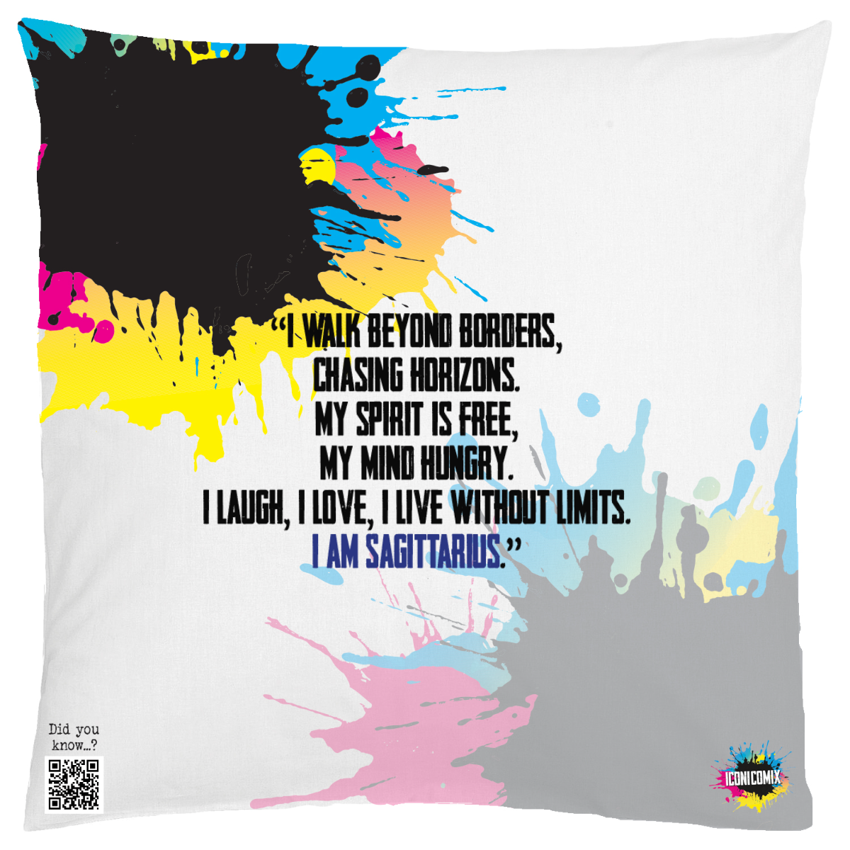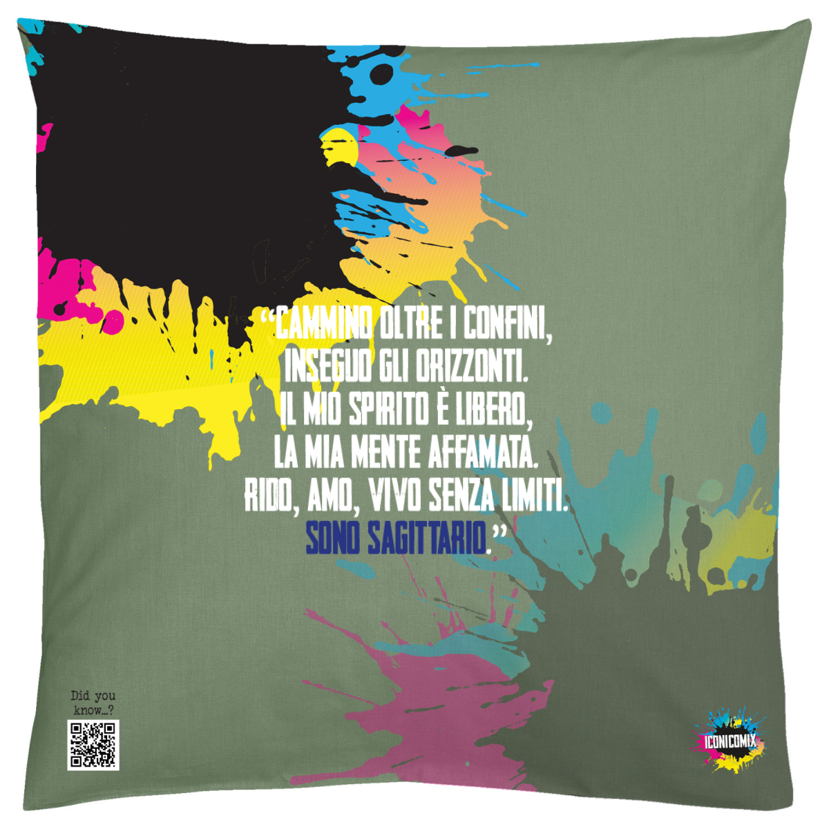 Each of our graphics also features a QR code that redirects you to the iconicomix.com website, the official page of the icon you've chosen. A digital gateway that tells its story, its phrases, and its world.