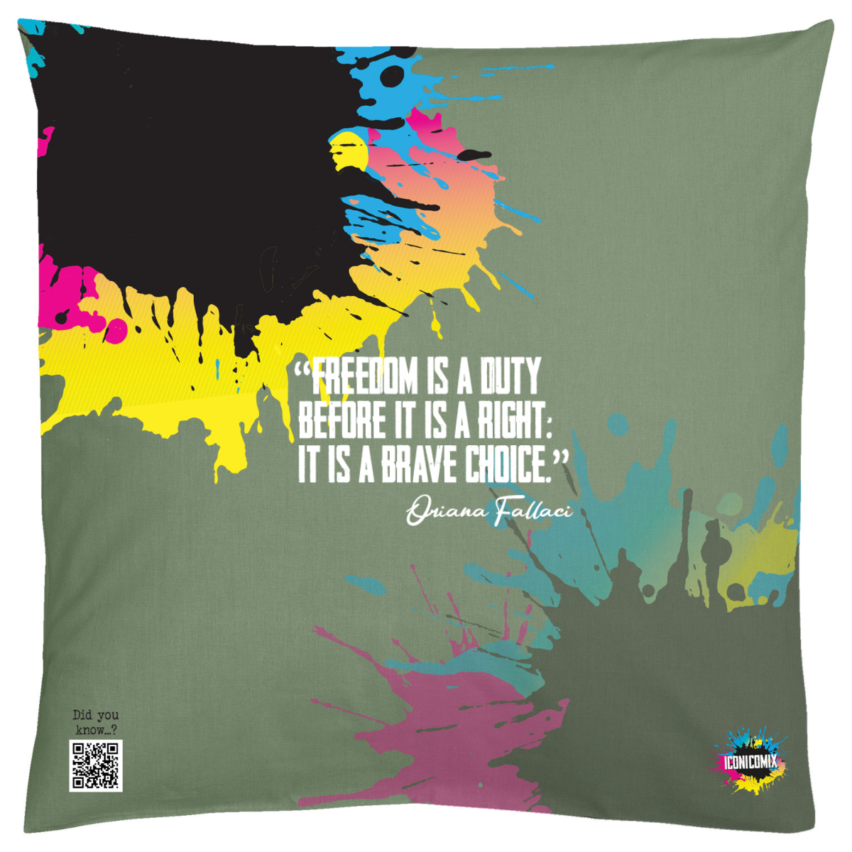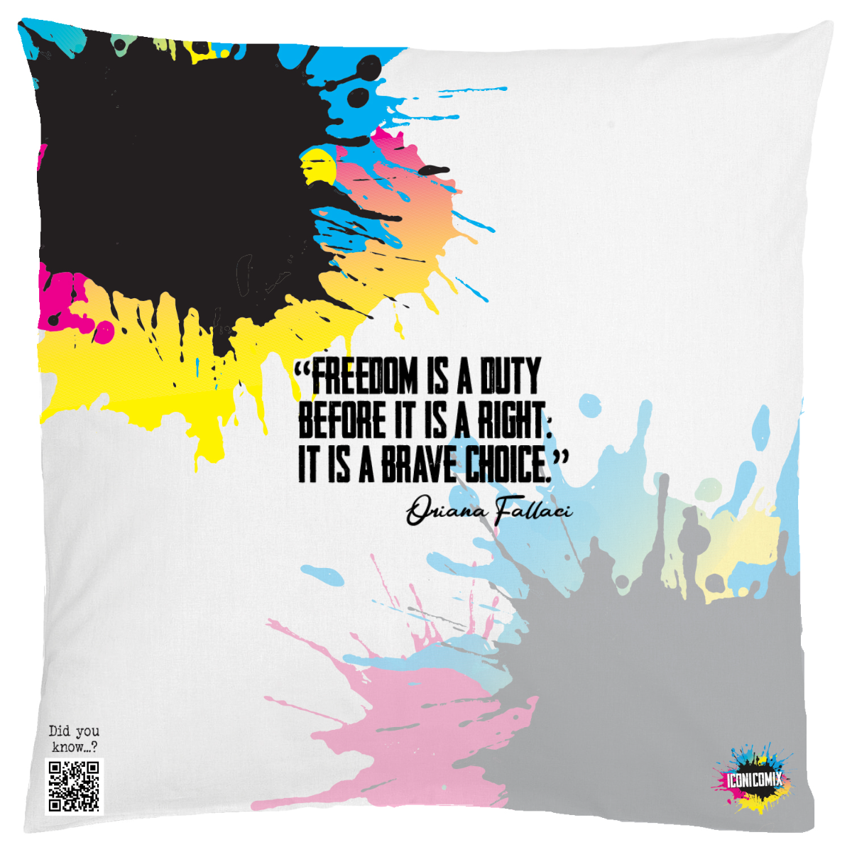 Each of our graphics also features a QR code that redirects you to the iconicomix.com website, the official page of the icon you've chosen. A digital gateway that tells its story, its phrases, and its world.