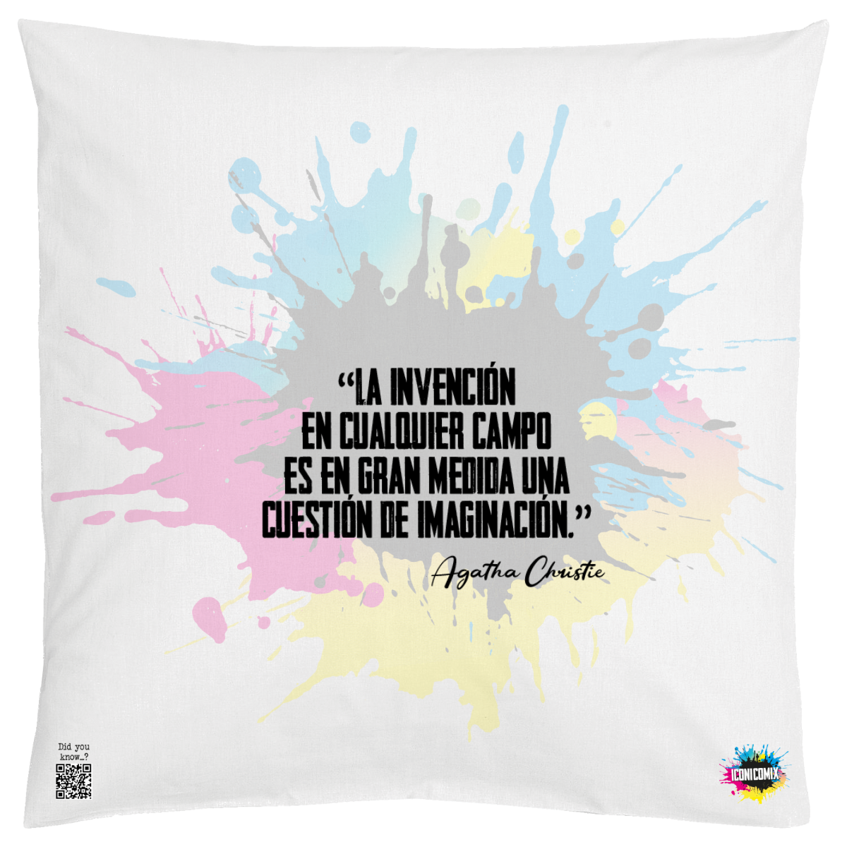 In ogni nostra grafica è presente anche un QR code che reindirizza al sito iconicomix.com, alla pagina ufficiale dell’icona che hai scelto. Una porta digitale che racconta la sua storia, le sue frasi e il suo mondo.