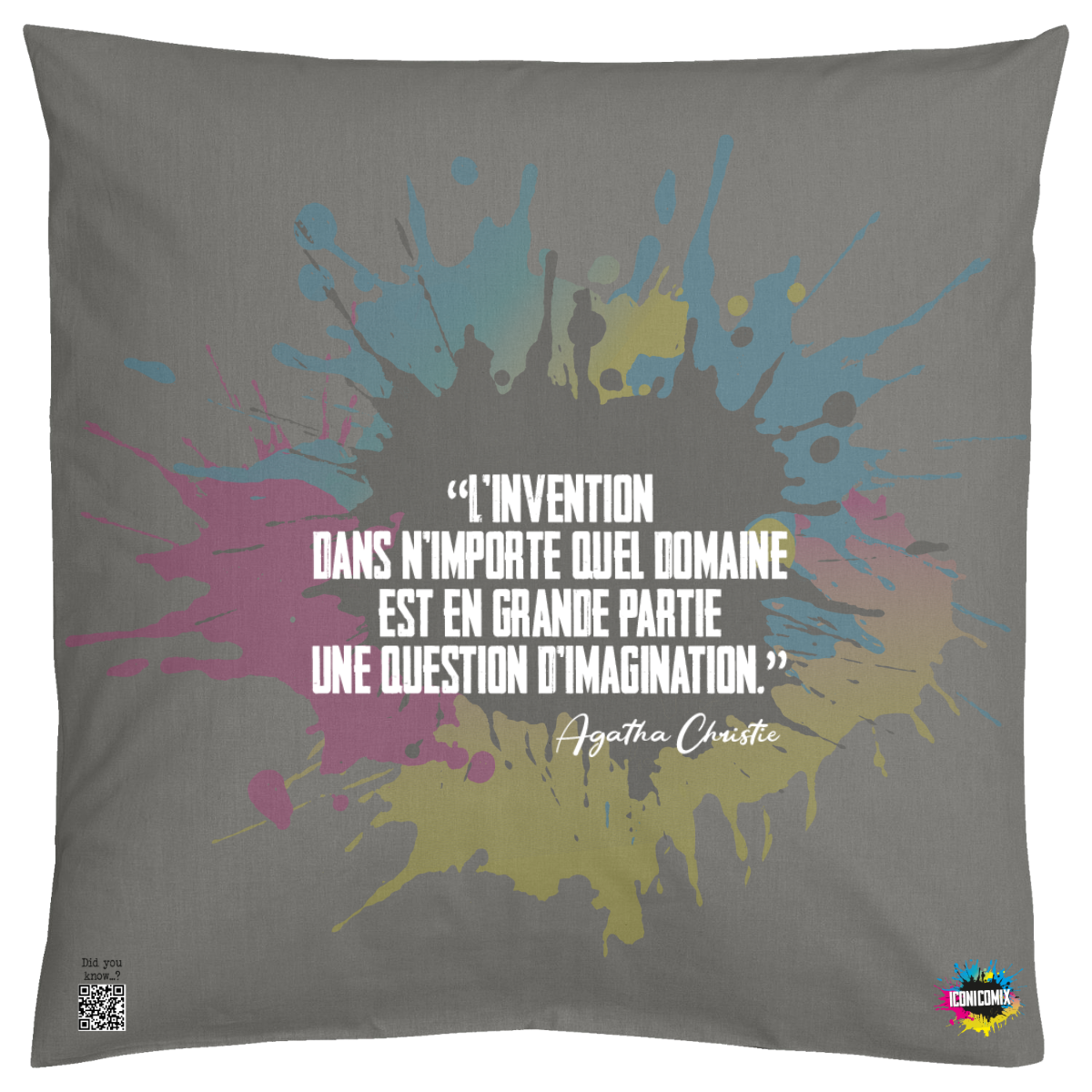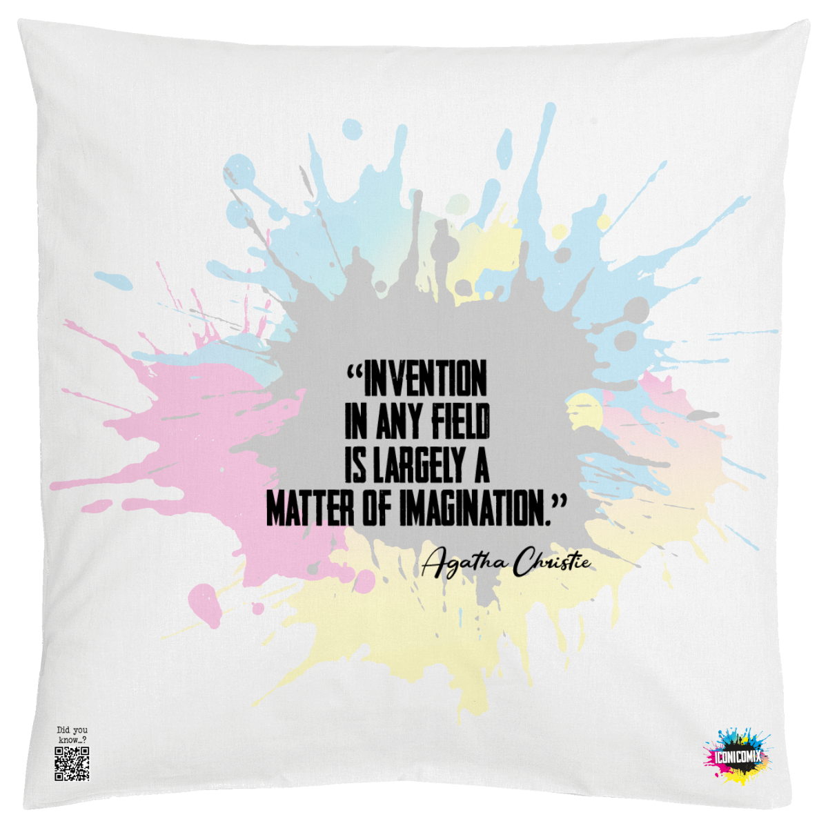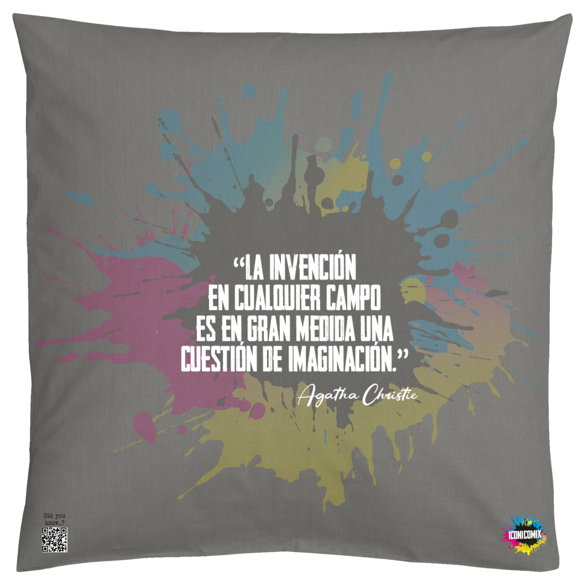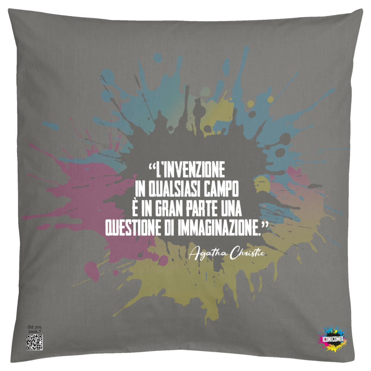 In ogni nostra grafica è presente anche un QR code che reindirizza al sito iconicomix.com, alla pagina ufficiale dell’icona che hai scelto. Una porta digitale che racconta la sua storia, le sue frasi e il suo mondo.