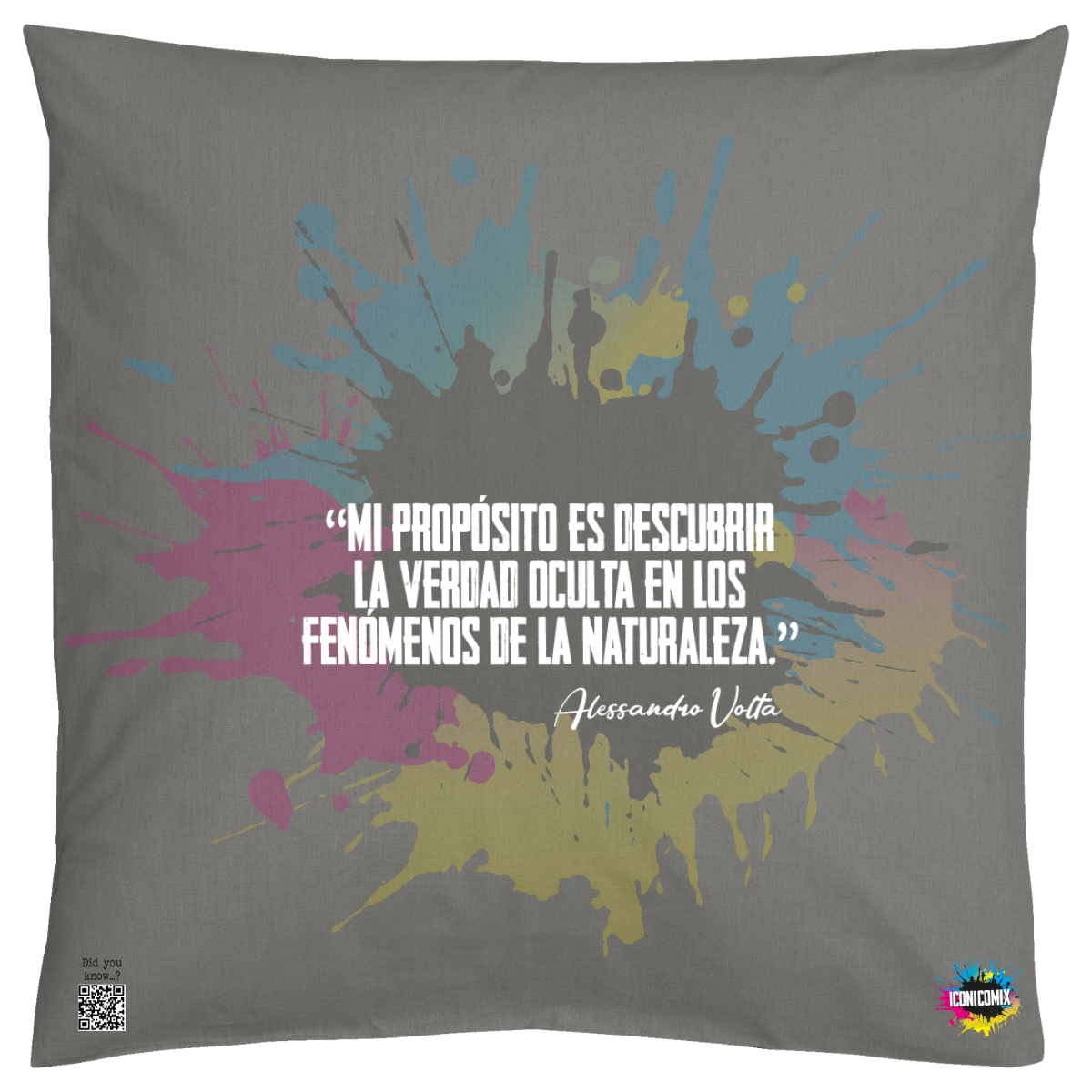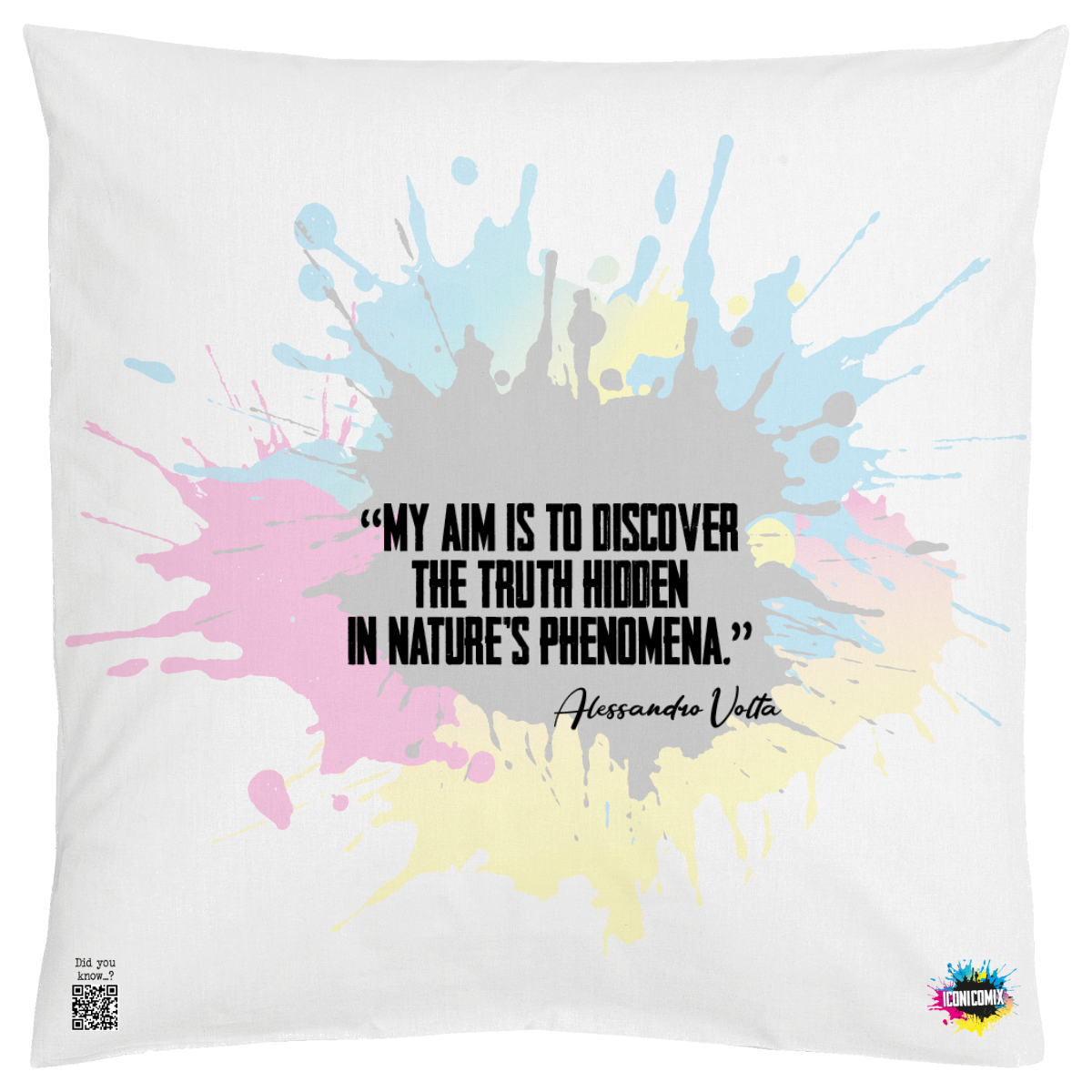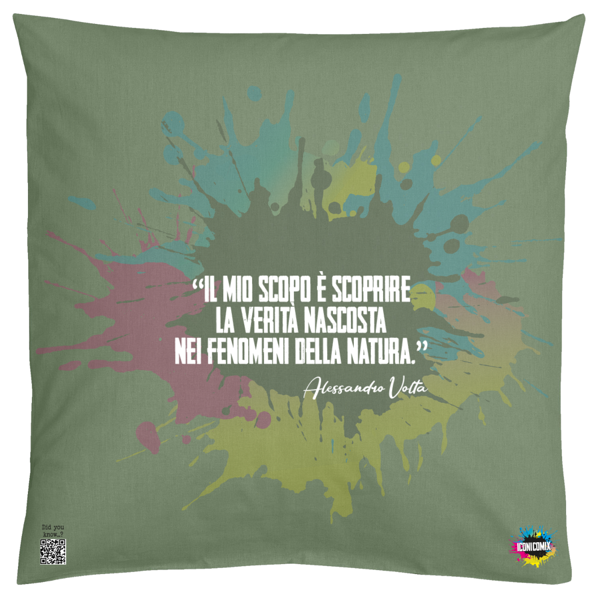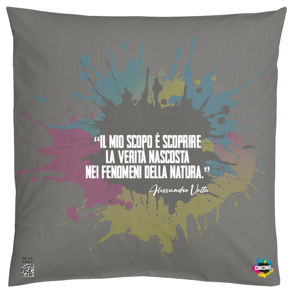 In ogni nostra grafica è presente anche un QR code che reindirizza al sito iconicomix.com, alla pagina ufficiale dell’icona che hai scelto. Una porta digitale che racconta la sua storia, le sue frasi e il suo mondo.
