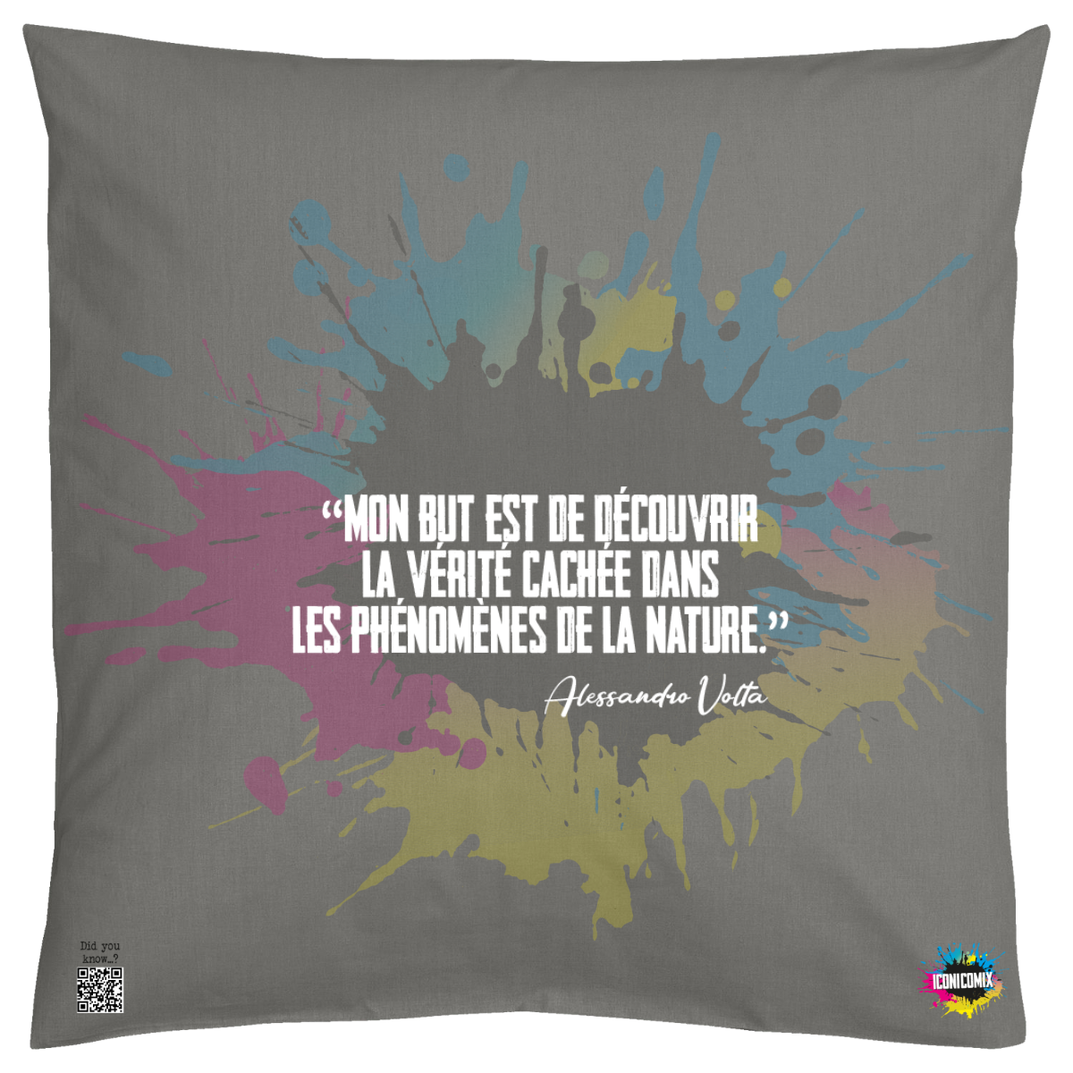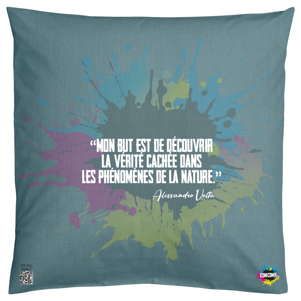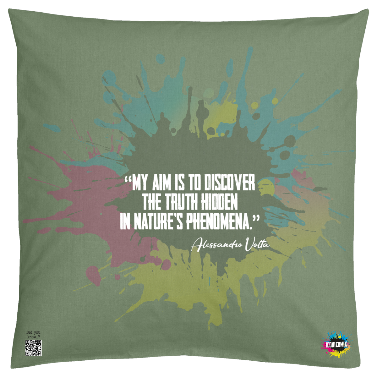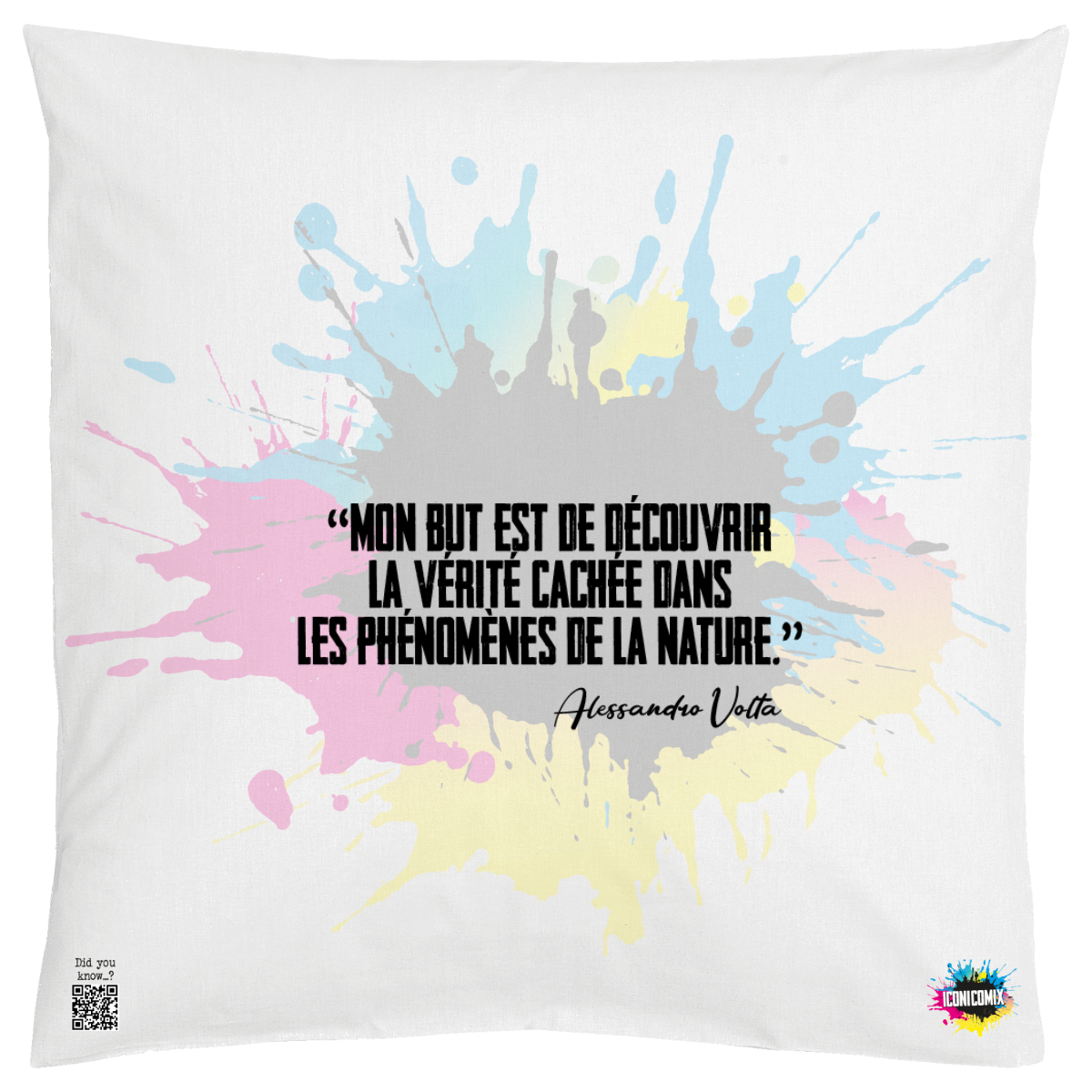 In ogni nostra grafica è presente anche un QR code che reindirizza al sito iconicomix.com, alla pagina ufficiale dell’icona che hai scelto. Una porta digitale che racconta la sua storia, le sue frasi e il suo mondo.