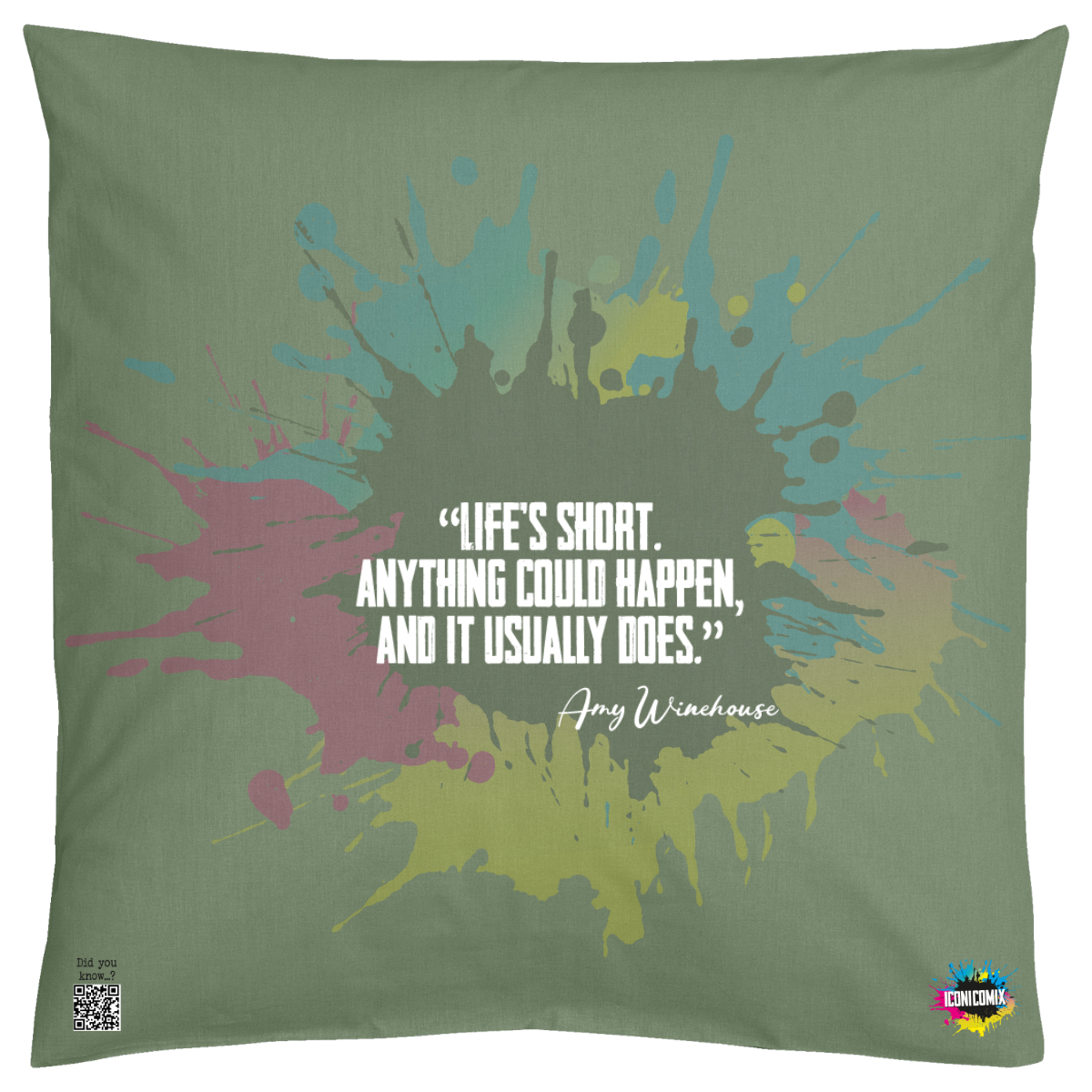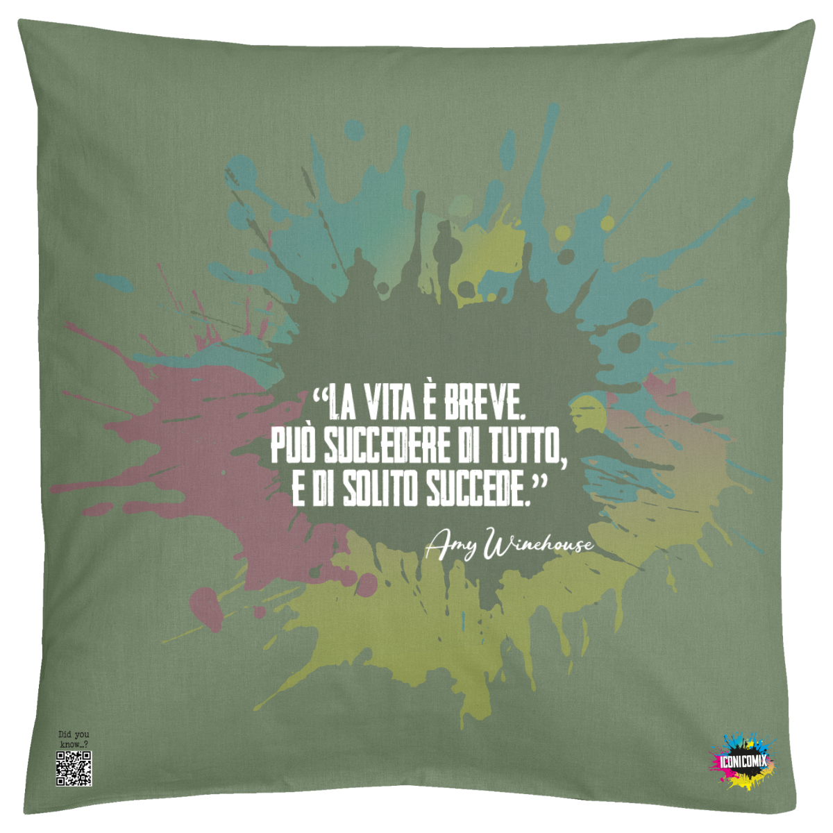 In ogni nostra grafica è presente anche un QR code che reindirizza al sito iconicomix.com, alla pagina ufficiale dell’icona che hai scelto. Una porta digitale che racconta la sua storia, le sue frasi e il suo mondo.