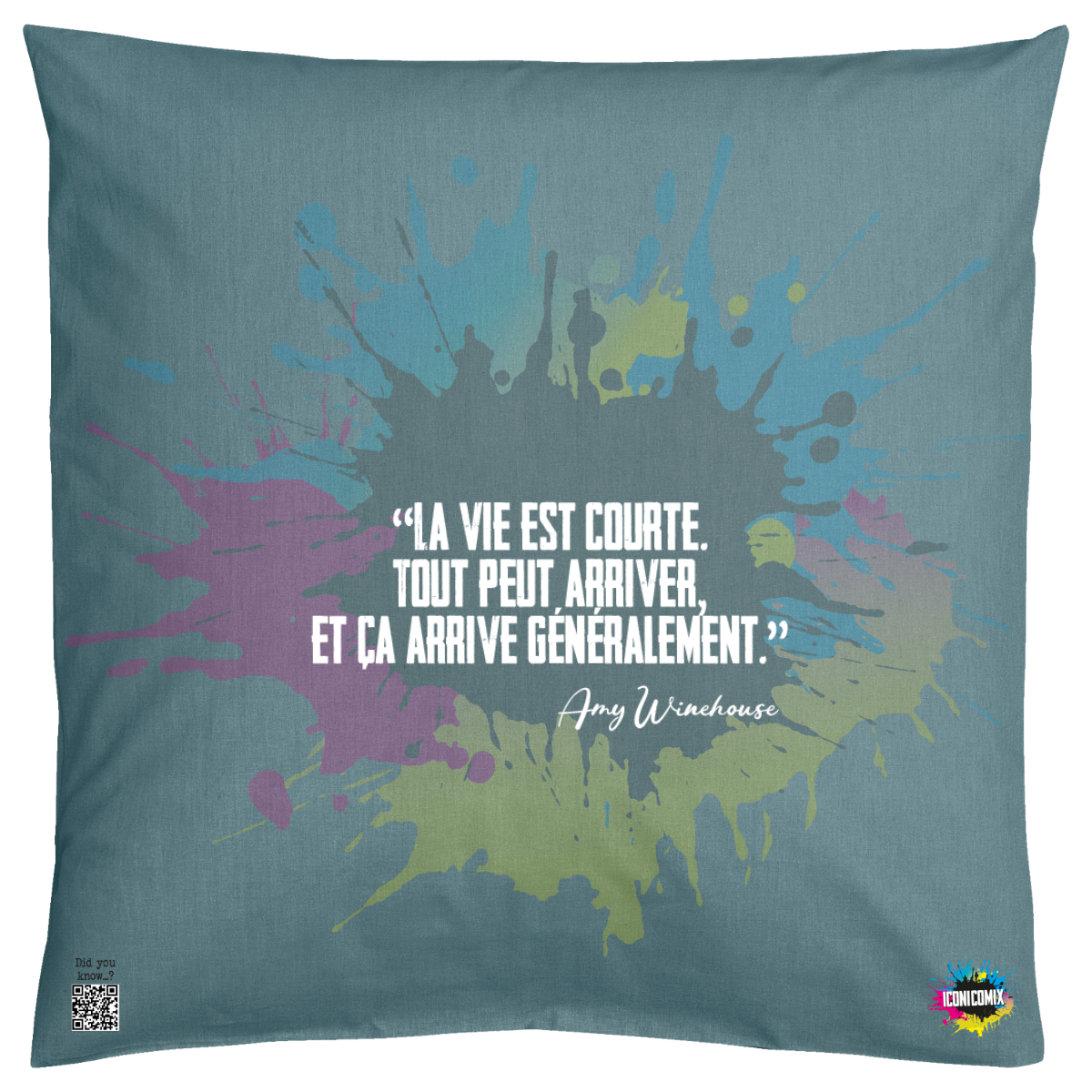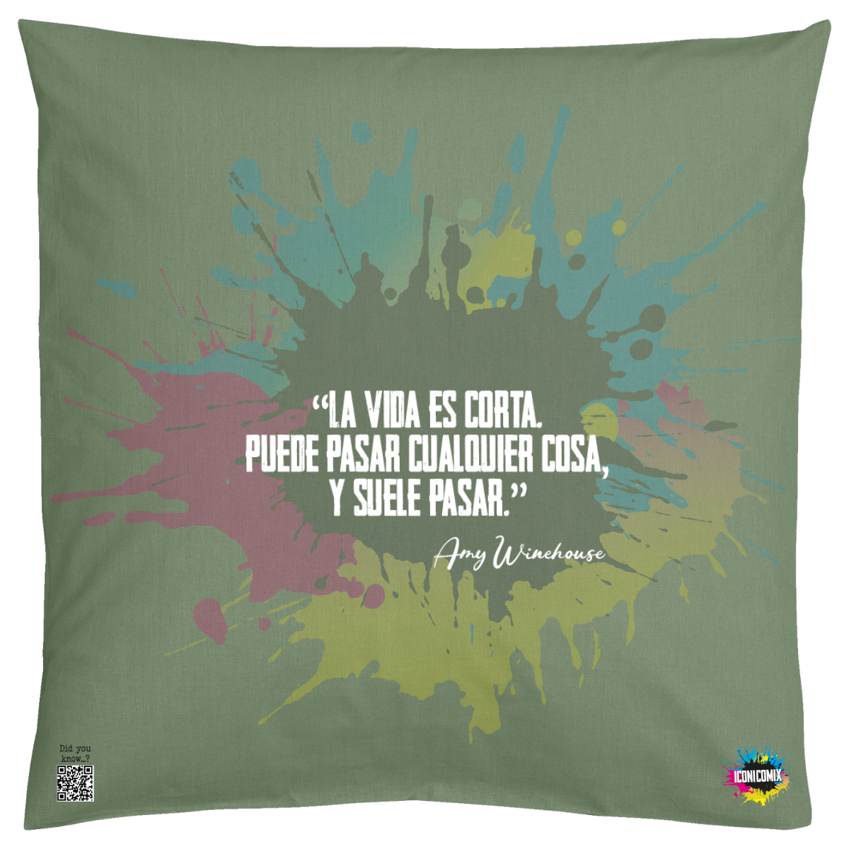 In ogni nostra grafica è presente anche un QR code che reindirizza al sito iconicomix.com, alla pagina ufficiale dell’icona che hai scelto. Una porta digitale che racconta la sua storia, le sue frasi e il suo mondo.
