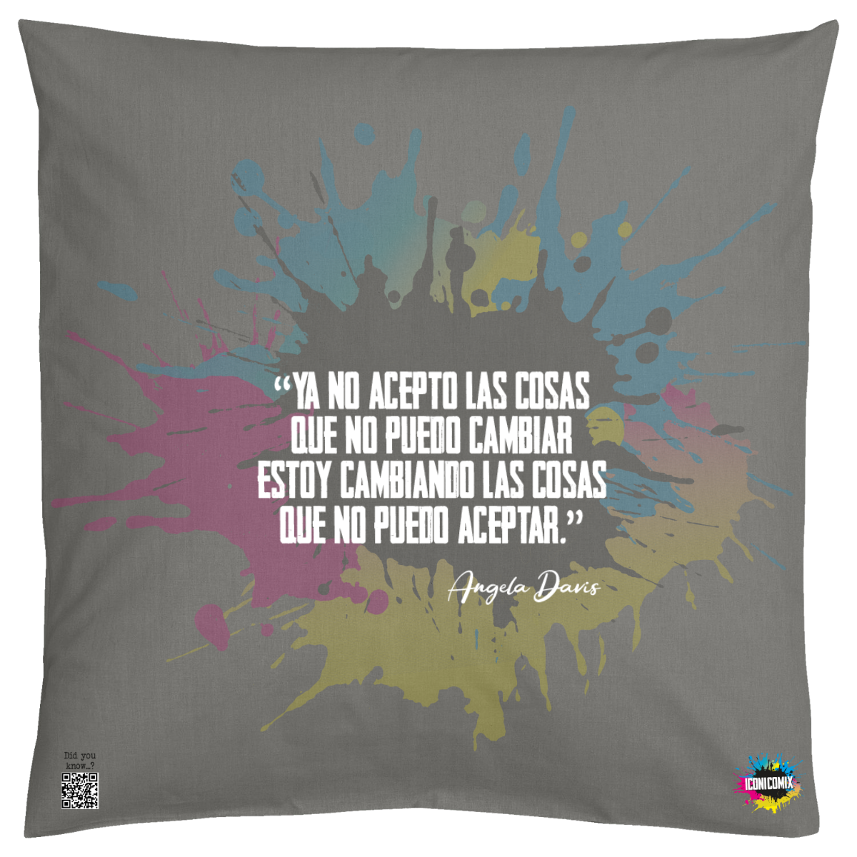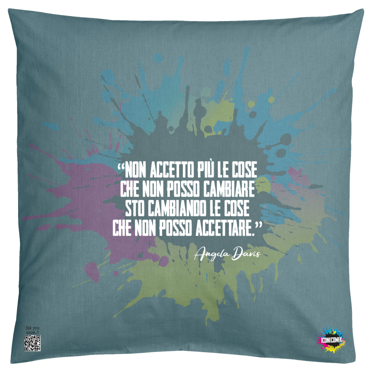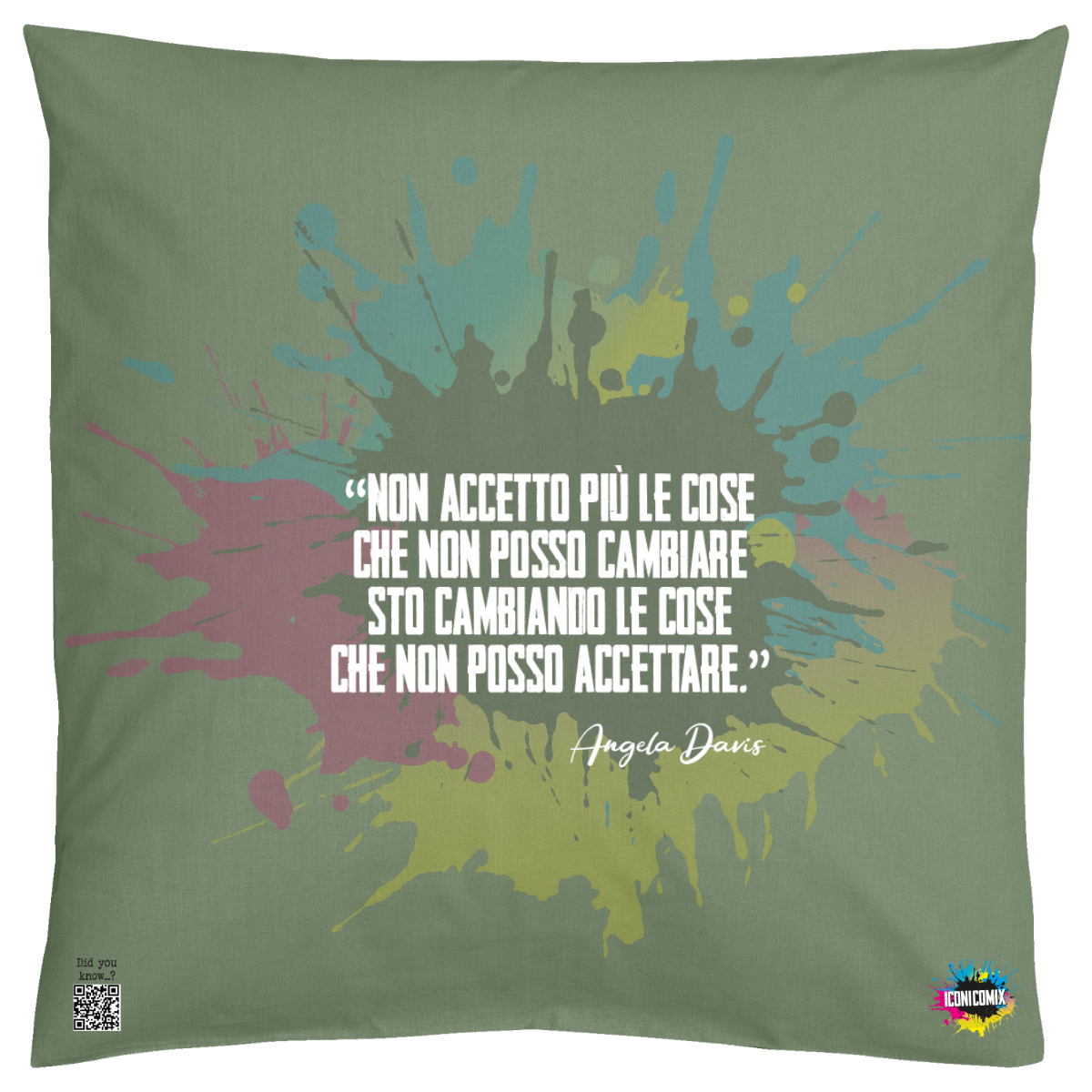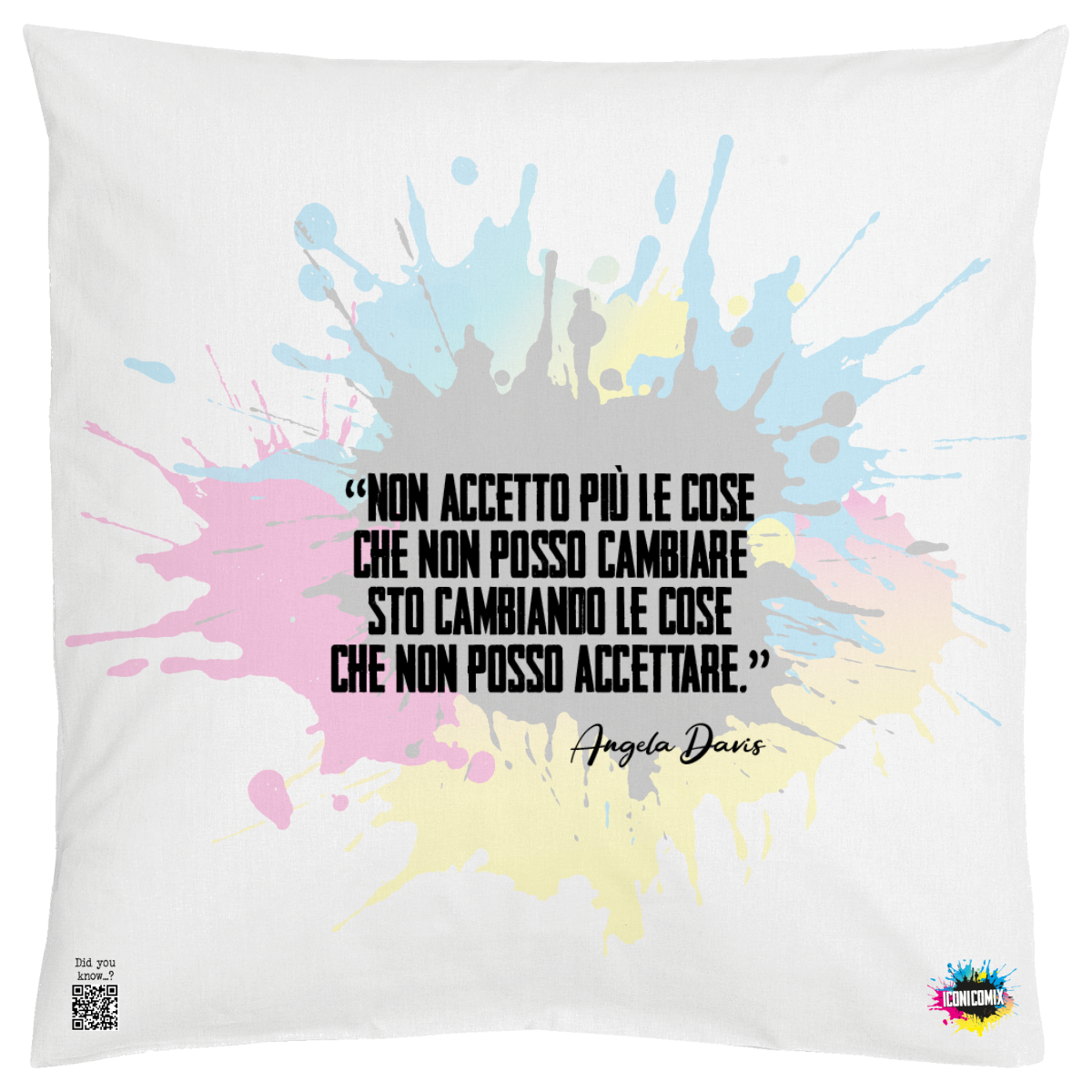 In ogni nostra grafica è presente anche un QR code che reindirizza al sito iconicomix.com, alla pagina ufficiale dell’icona che hai scelto. Una porta digitale che racconta la sua storia, le sue frasi e il suo mondo.