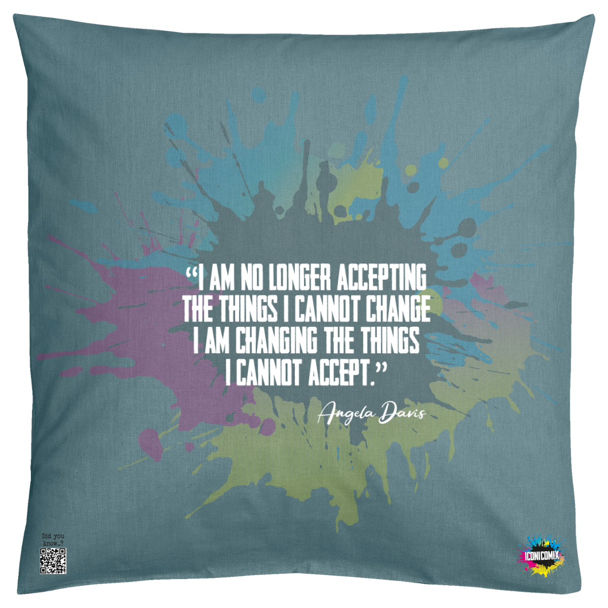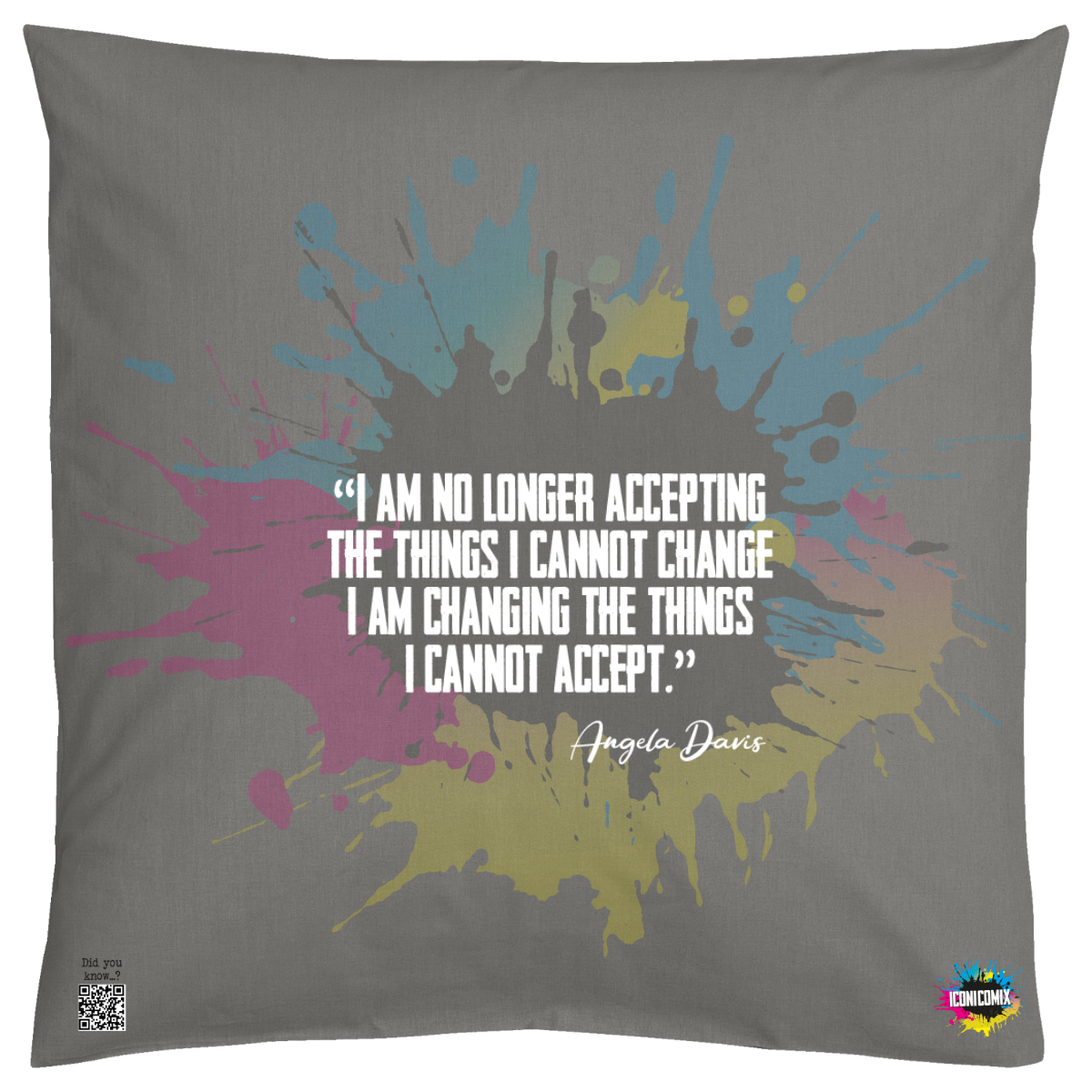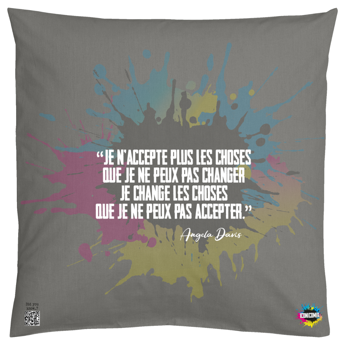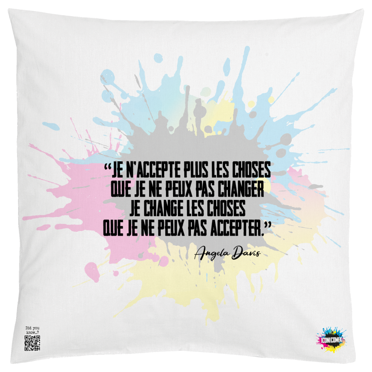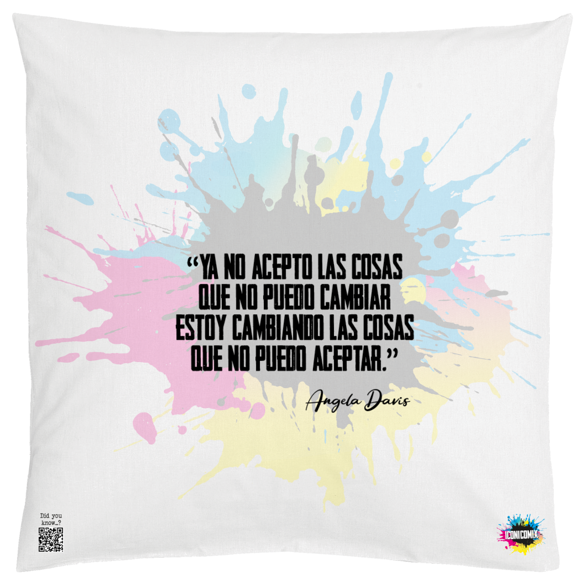In ogni nostra grafica è presente anche un QR code che reindirizza al sito iconicomix.com, alla pagina ufficiale dell’icona che hai scelto. Una porta digitale che racconta la sua storia, le sue frasi e il suo mondo.