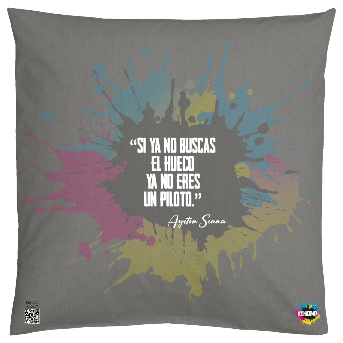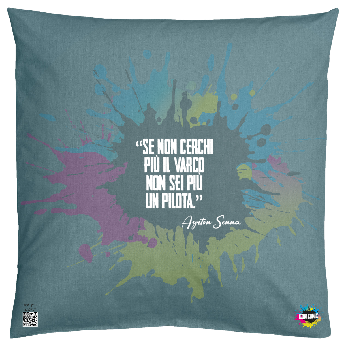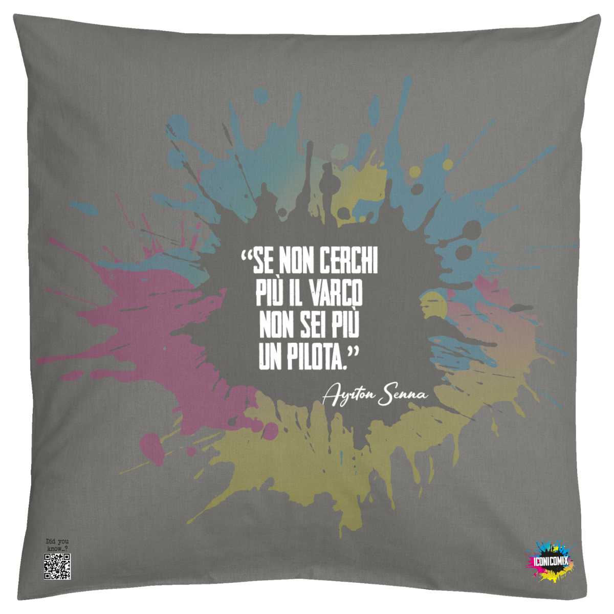 In ogni nostra grafica è presente anche un QR code che reindirizza al sito iconicomix.com, alla pagina ufficiale dell’icona che hai scelto. Una porta digitale che racconta la sua storia, le sue frasi e il suo mondo.