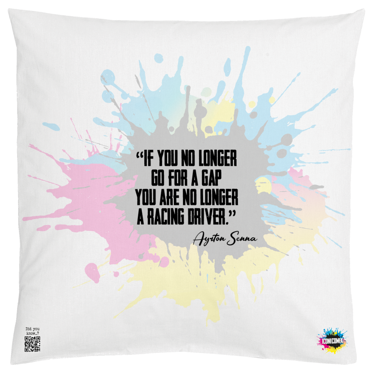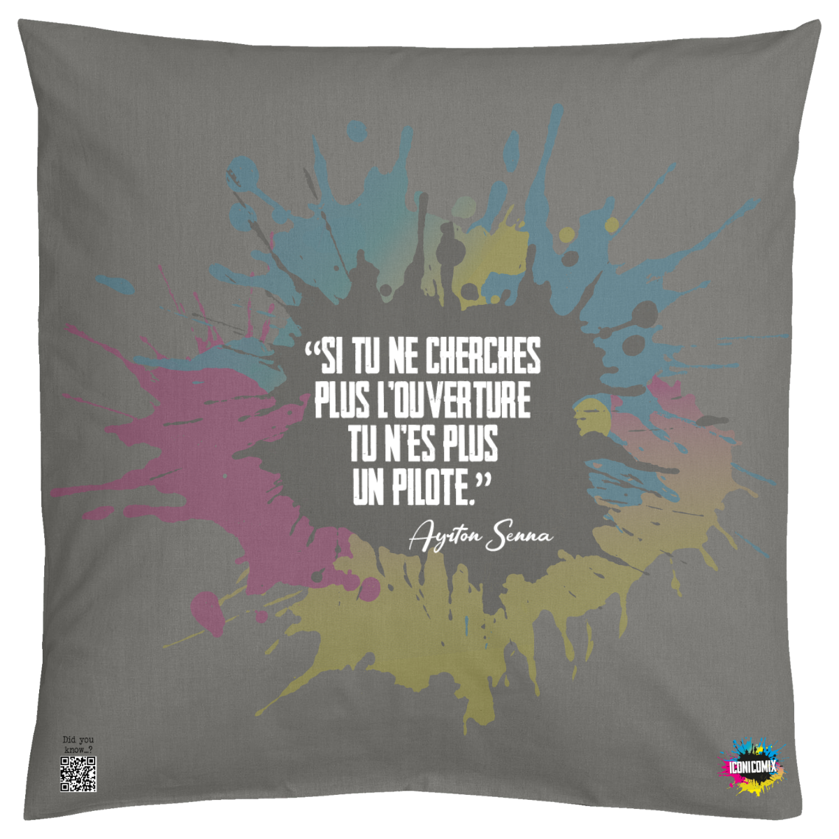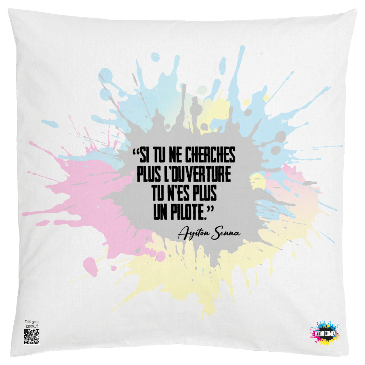 In ogni nostra grafica è presente anche un QR code che reindirizza al sito iconicomix.com, alla pagina ufficiale dell’icona che hai scelto. Una porta digitale che racconta la sua storia, le sue frasi e il suo mondo.
