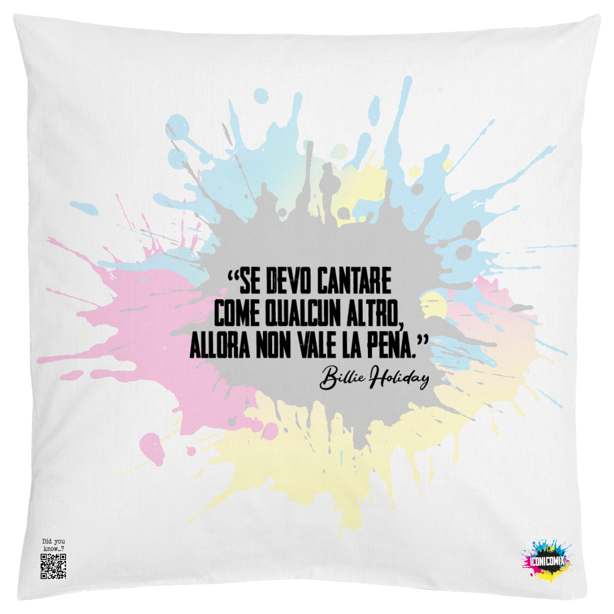 In ogni nostra grafica è presente anche un QR code che reindirizza al sito iconicomix.com, alla pagina ufficiale dell’icona che hai scelto. Una porta digitale che racconta la sua storia, le sue frasi e il suo mondo.