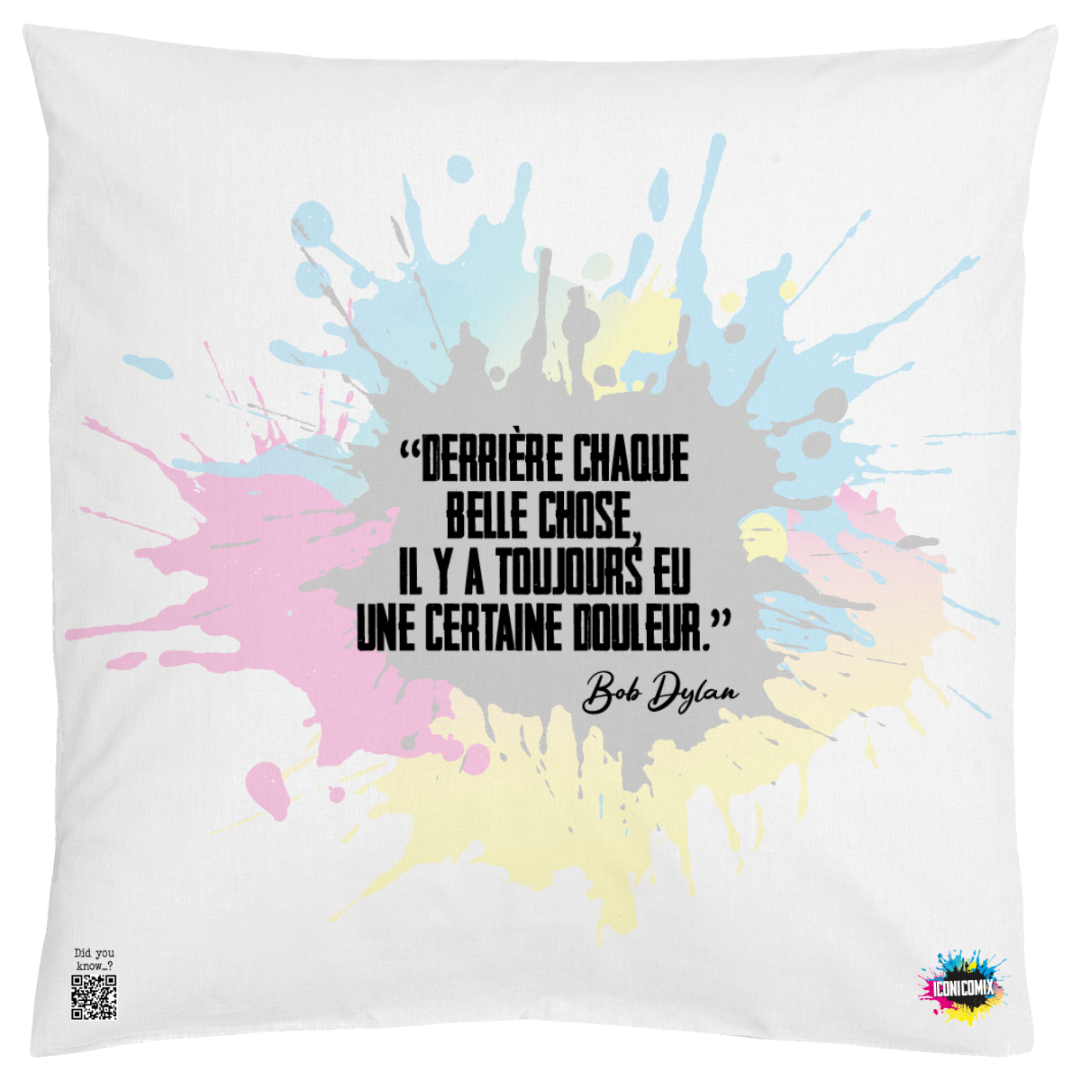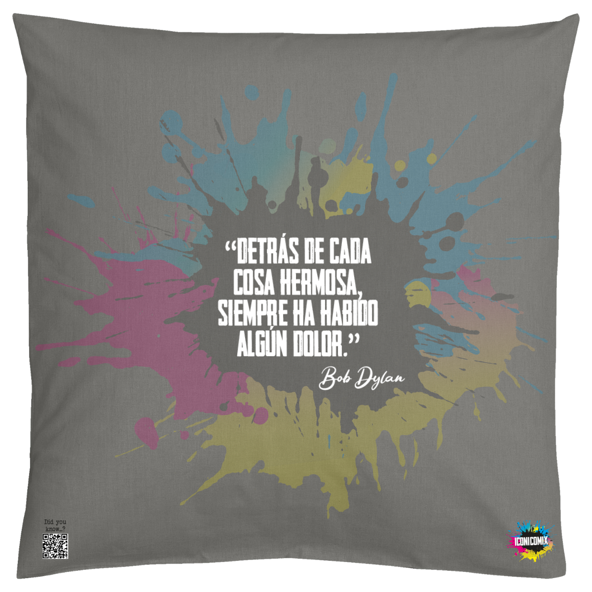 In ogni nostra grafica è presente anche un QR code che reindirizza al sito iconicomix.com, alla pagina ufficiale dell’icona che hai scelto. Una porta digitale che racconta la sua storia, le sue frasi e il suo mondo.