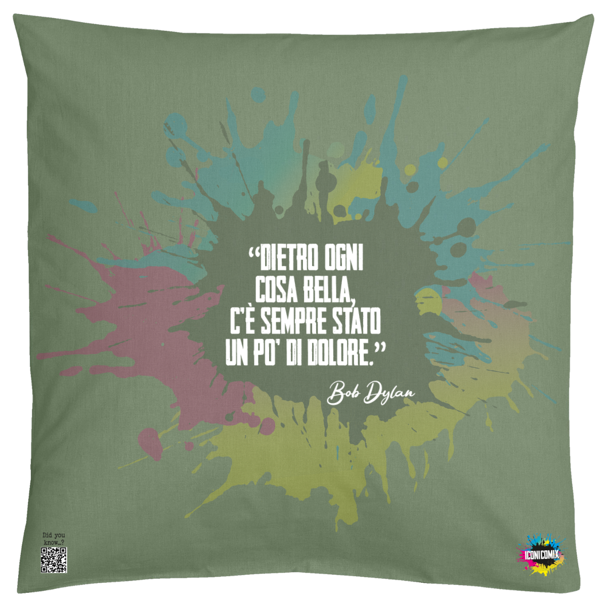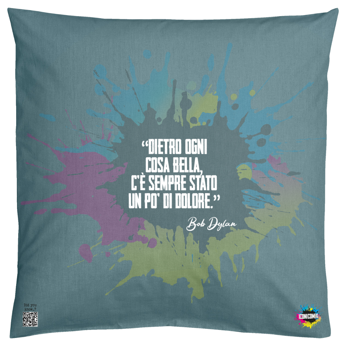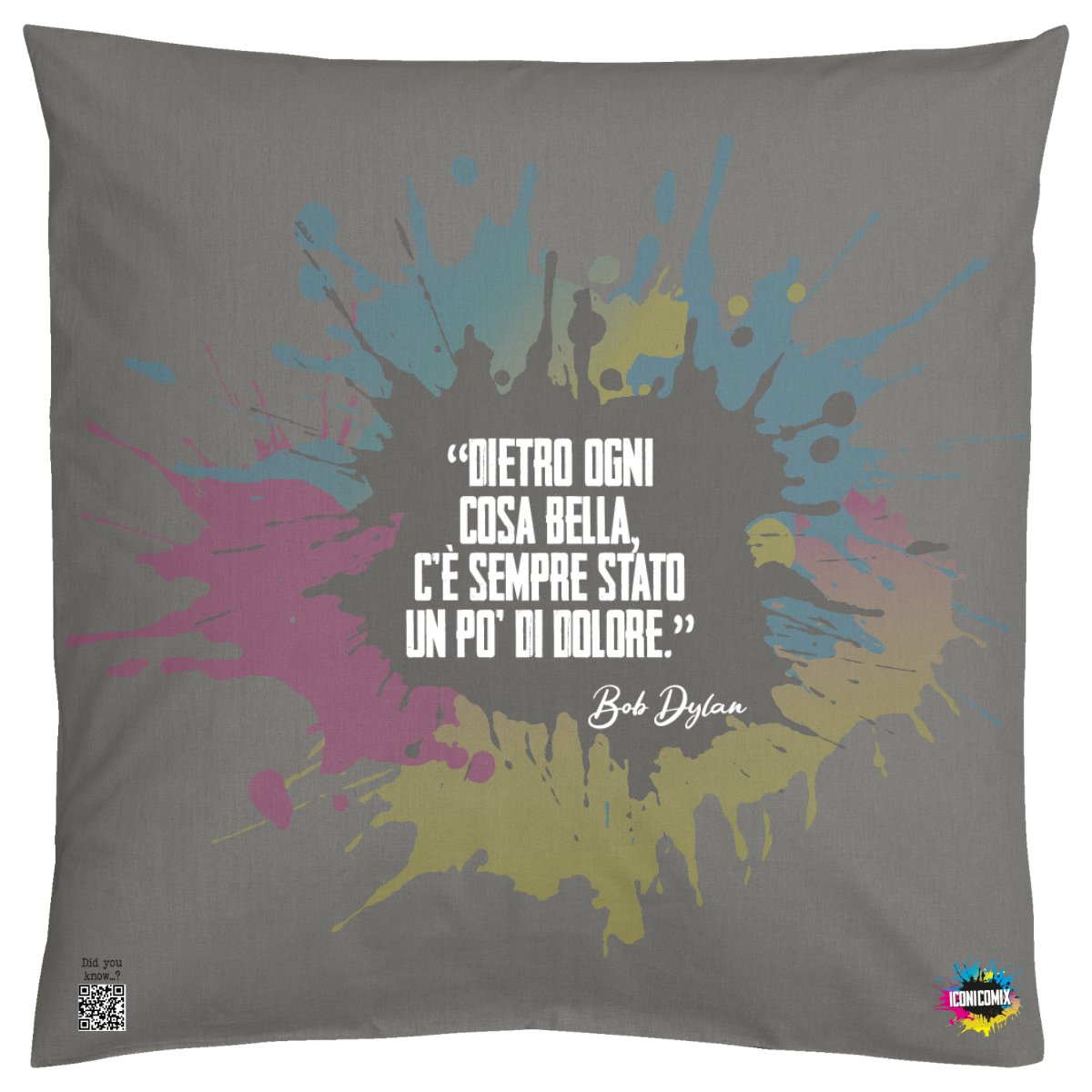 In ogni nostra grafica è presente anche un QR code che reindirizza al sito iconicomix.com, alla pagina ufficiale dell’icona che hai scelto. Una porta digitale che racconta la sua storia, le sue frasi e il suo mondo.