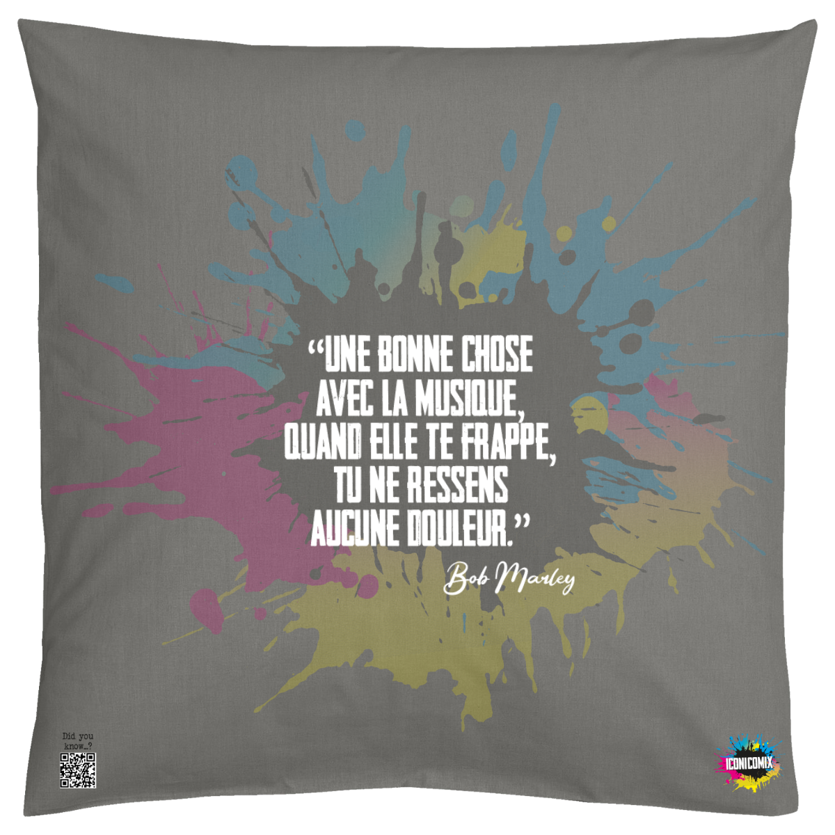 In ogni nostra grafica è presente anche un QR code che reindirizza al sito iconicomix.com, alla pagina ufficiale dell’icona che hai scelto. Una porta digitale che racconta la sua storia, le sue frasi e il suo mondo.