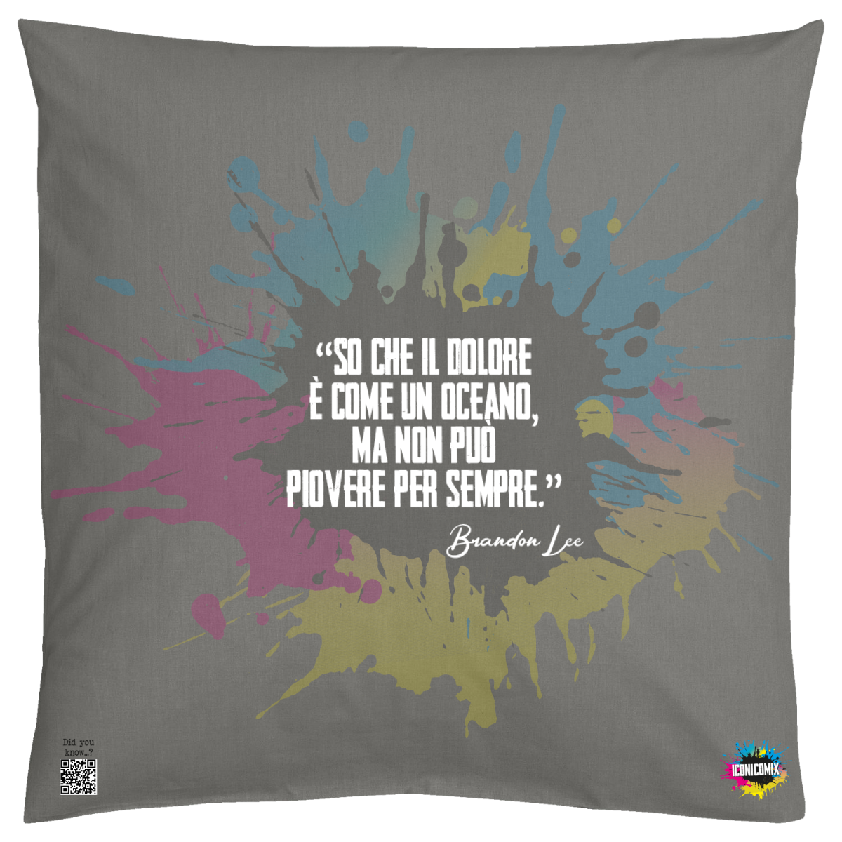 In ogni nostra grafica è presente anche un QR code che reindirizza al sito iconicomix.com, alla pagina ufficiale dell’icona che hai scelto. Una porta digitale che racconta la sua storia, le sue frasi e il suo mondo.