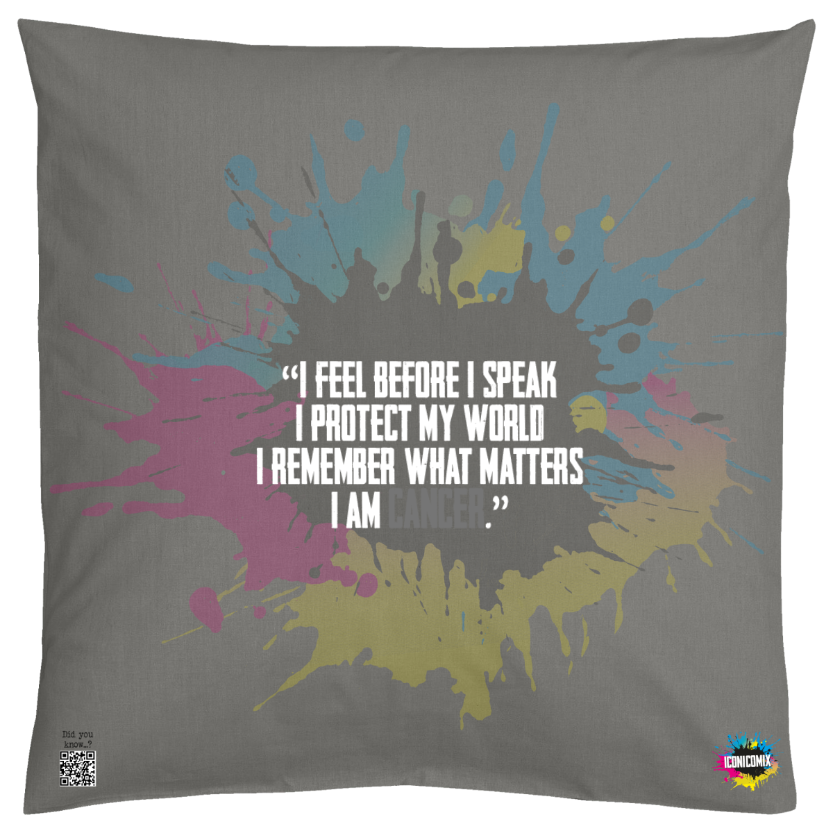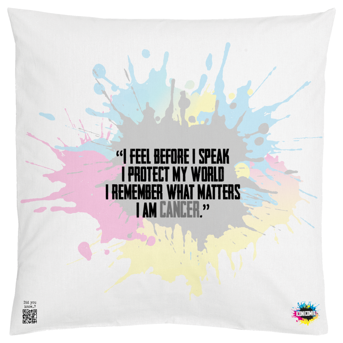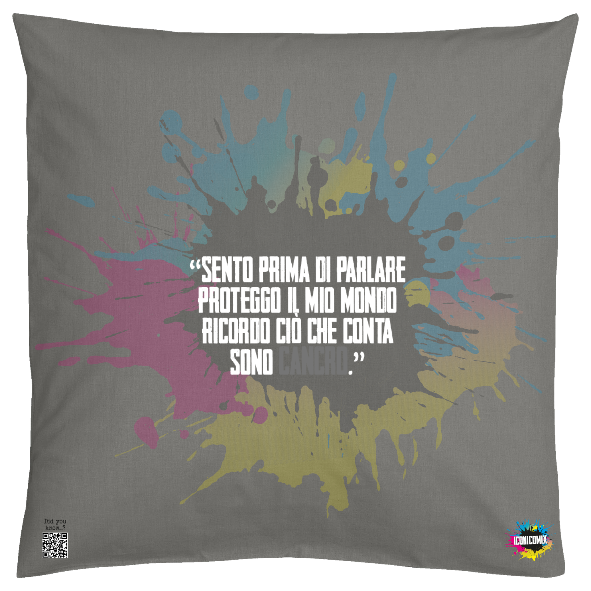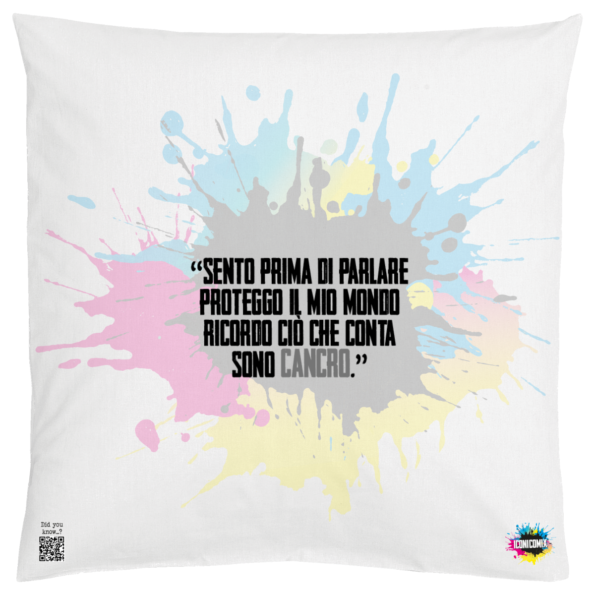 In ogni nostra grafica è presente anche un QR code che reindirizza al sito iconicomix.com, alla pagina ufficiale dell’icona che hai scelto. Una porta digitale che racconta la sua storia, le sue frasi e il suo mondo.