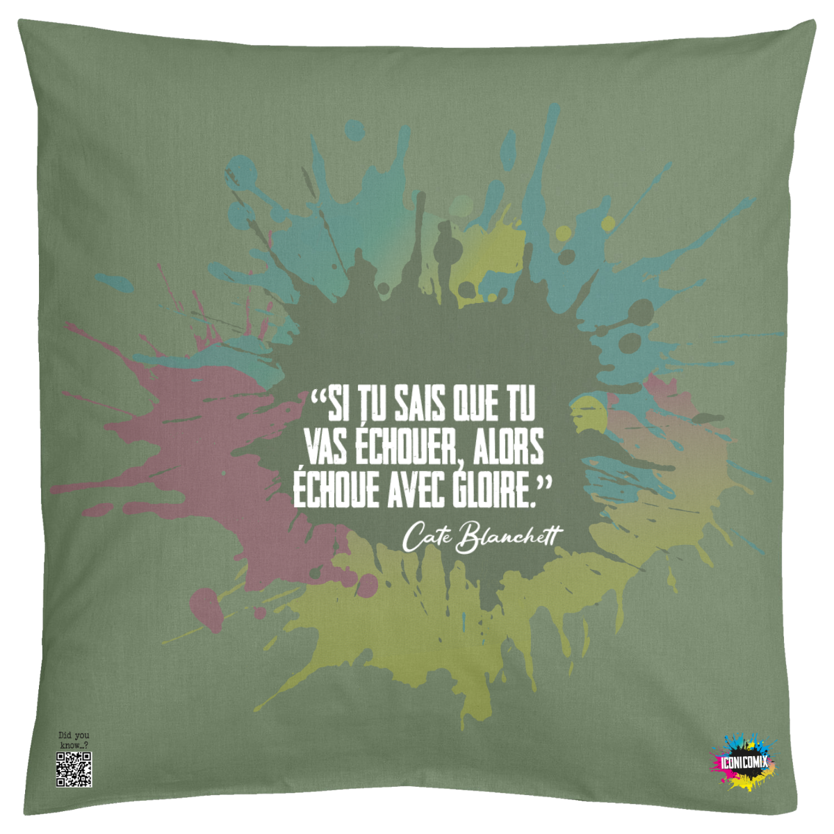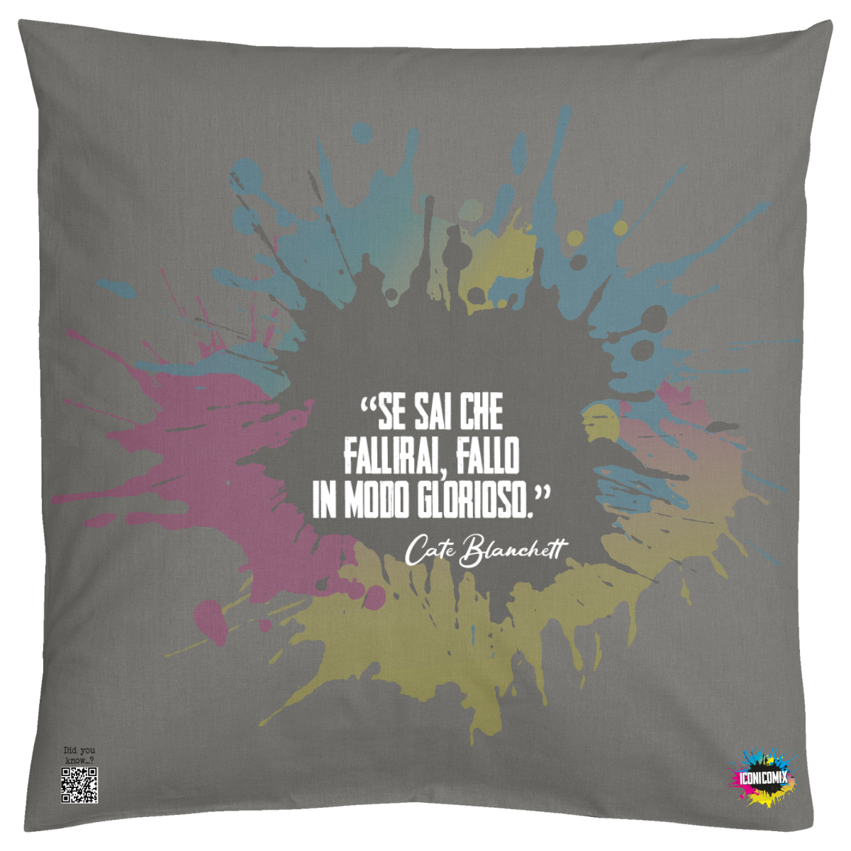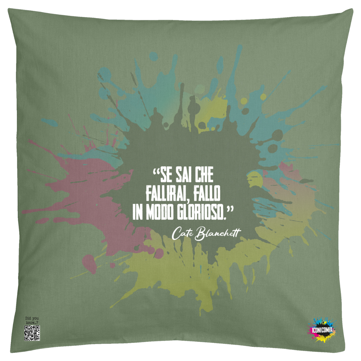 In ogni nostra grafica è presente anche un QR code che reindirizza al sito iconicomix.com, alla pagina ufficiale dell’icona che hai scelto. Una porta digitale che racconta la sua storia, le sue frasi e il suo mondo.