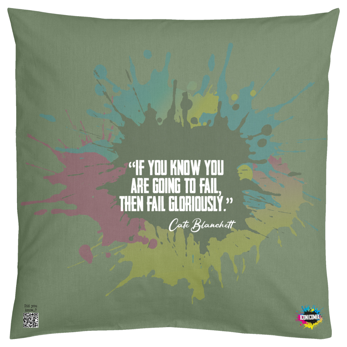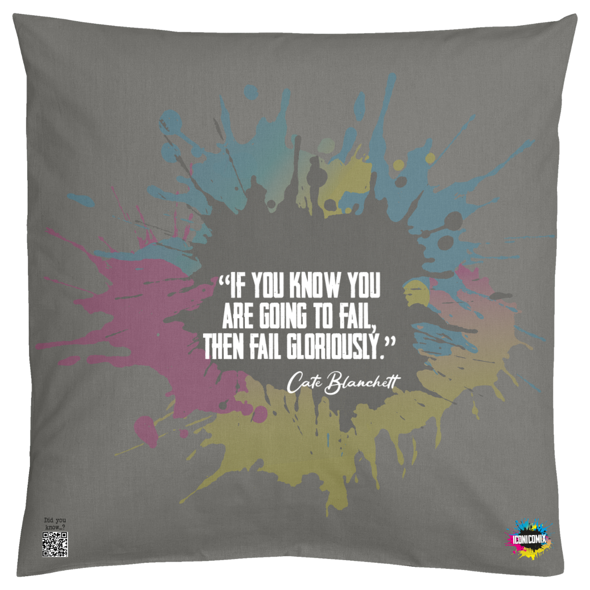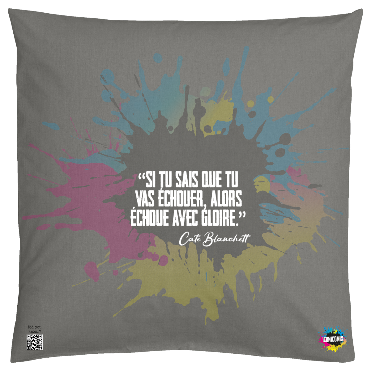 In ogni nostra grafica è presente anche un QR code che reindirizza al sito iconicomix.com, alla pagina ufficiale dell’icona che hai scelto. Una porta digitale che racconta la sua storia, le sue frasi e il suo mondo.