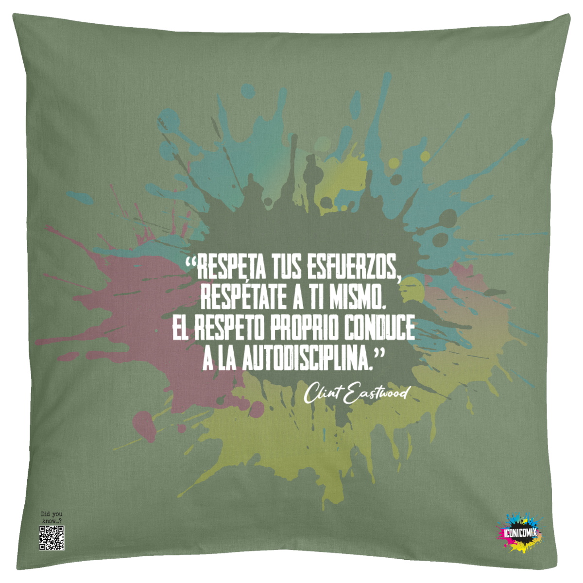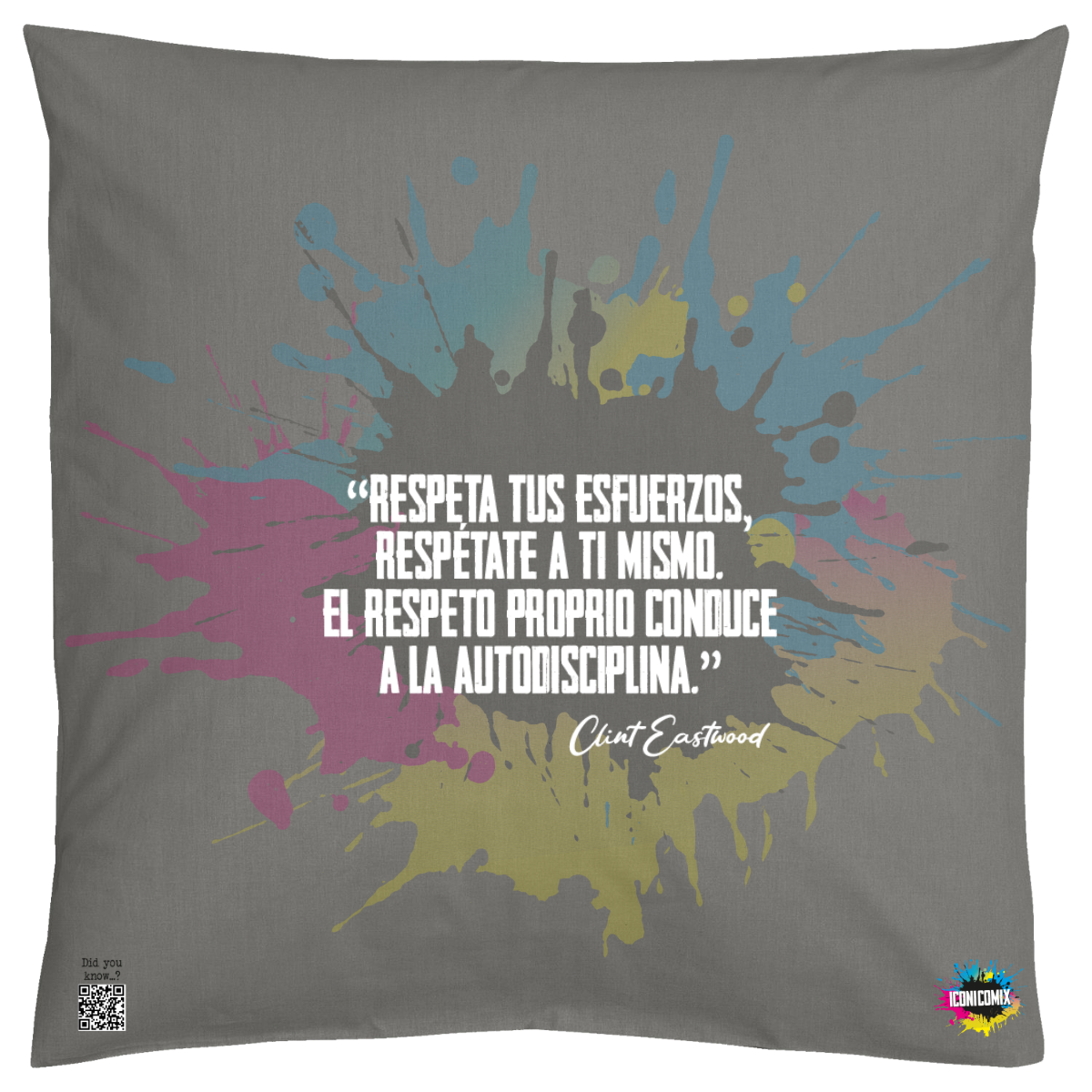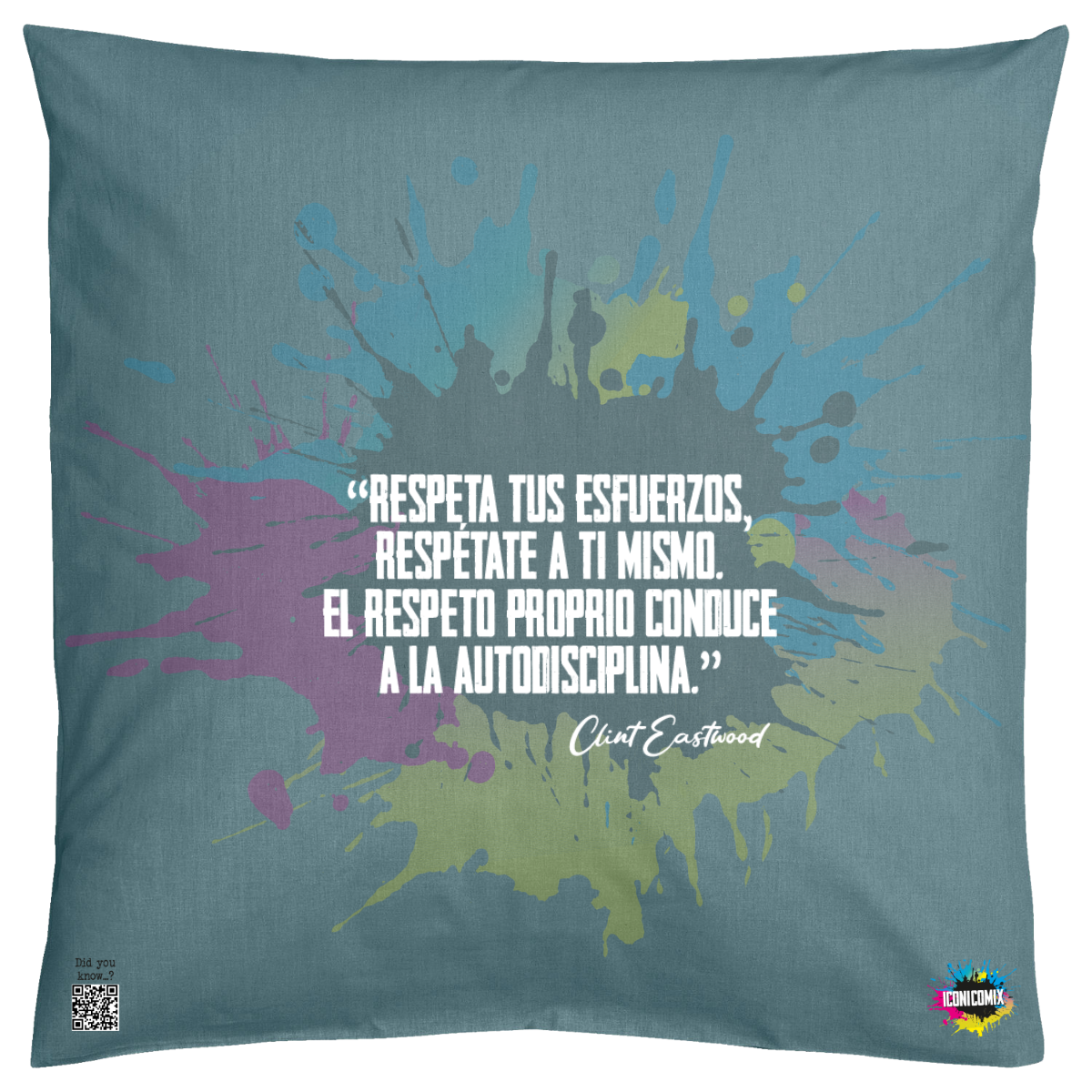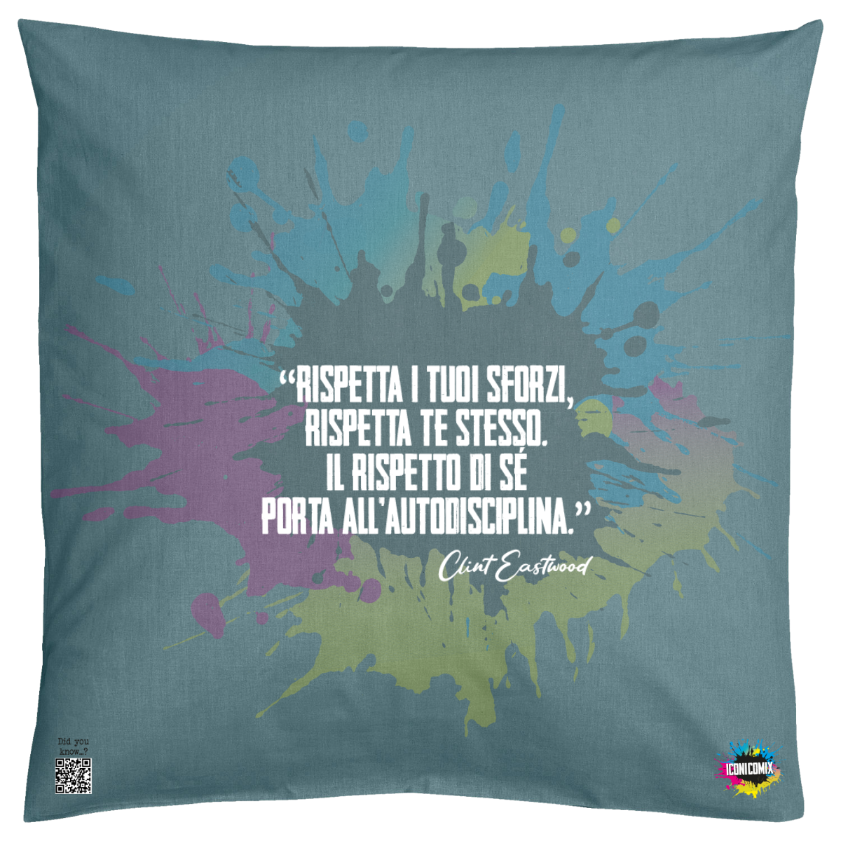 In ogni nostra grafica è presente anche un QR code che reindirizza al sito iconicomix.com, alla pagina ufficiale dell’icona che hai scelto. Una porta digitale che racconta la sua storia, le sue frasi e il suo mondo.