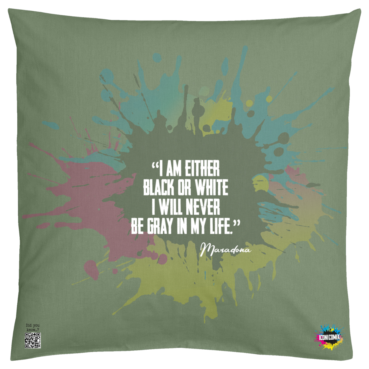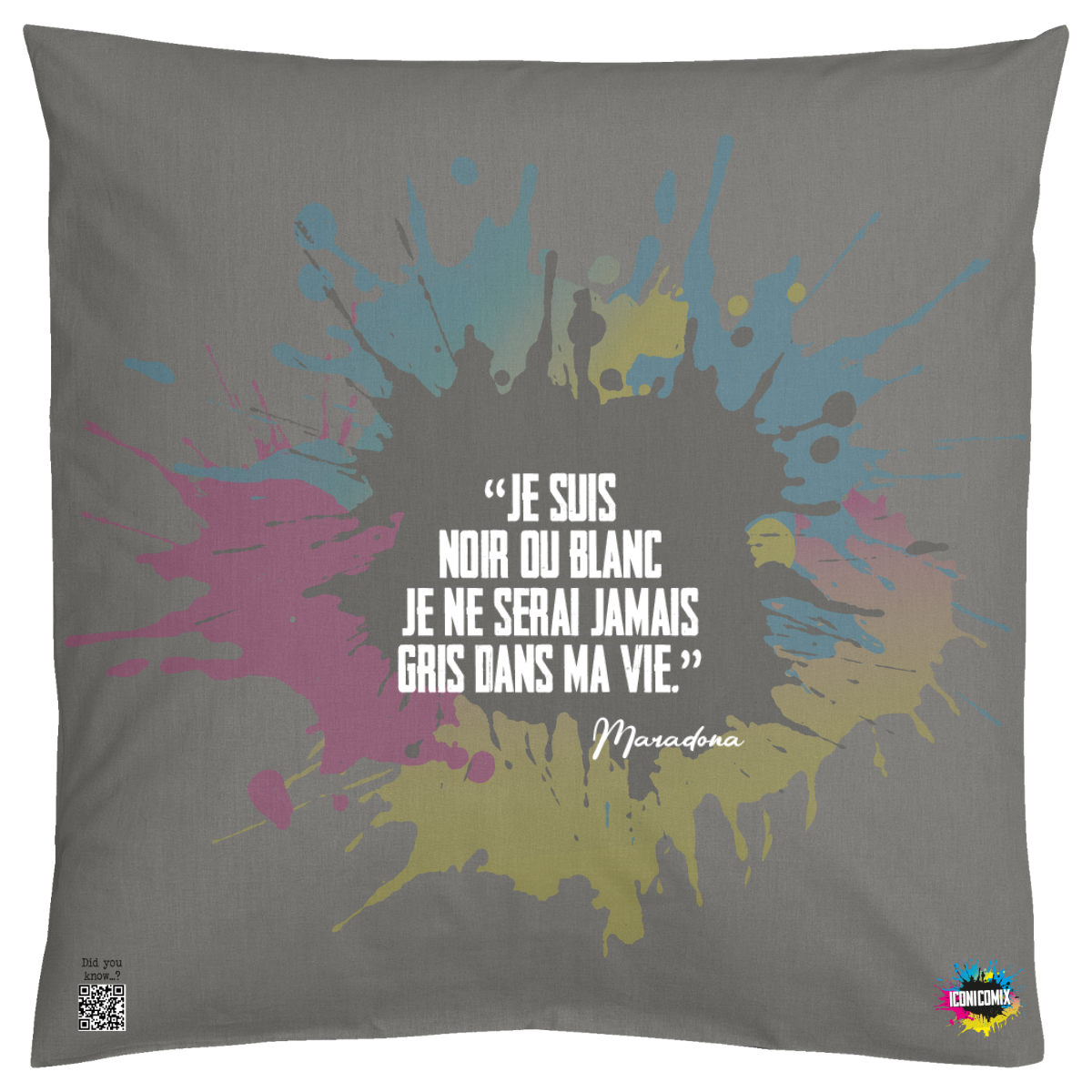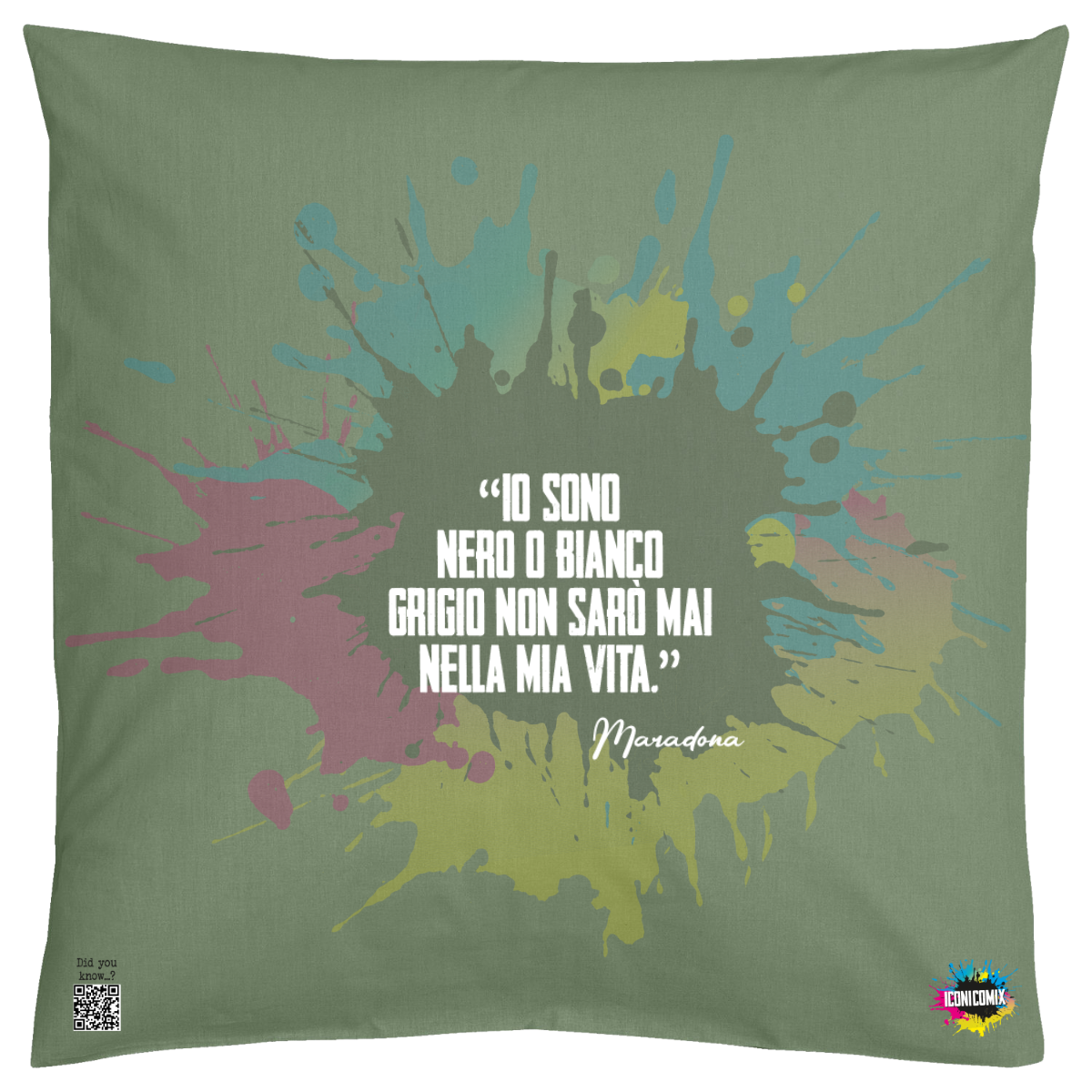 In ogni nostra grafica è presente anche un QR code che reindirizza al sito iconicomix.com, alla pagina ufficiale dell’icona che hai scelto. Una porta digitale che racconta la sua storia, le sue frasi e il suo mondo.
