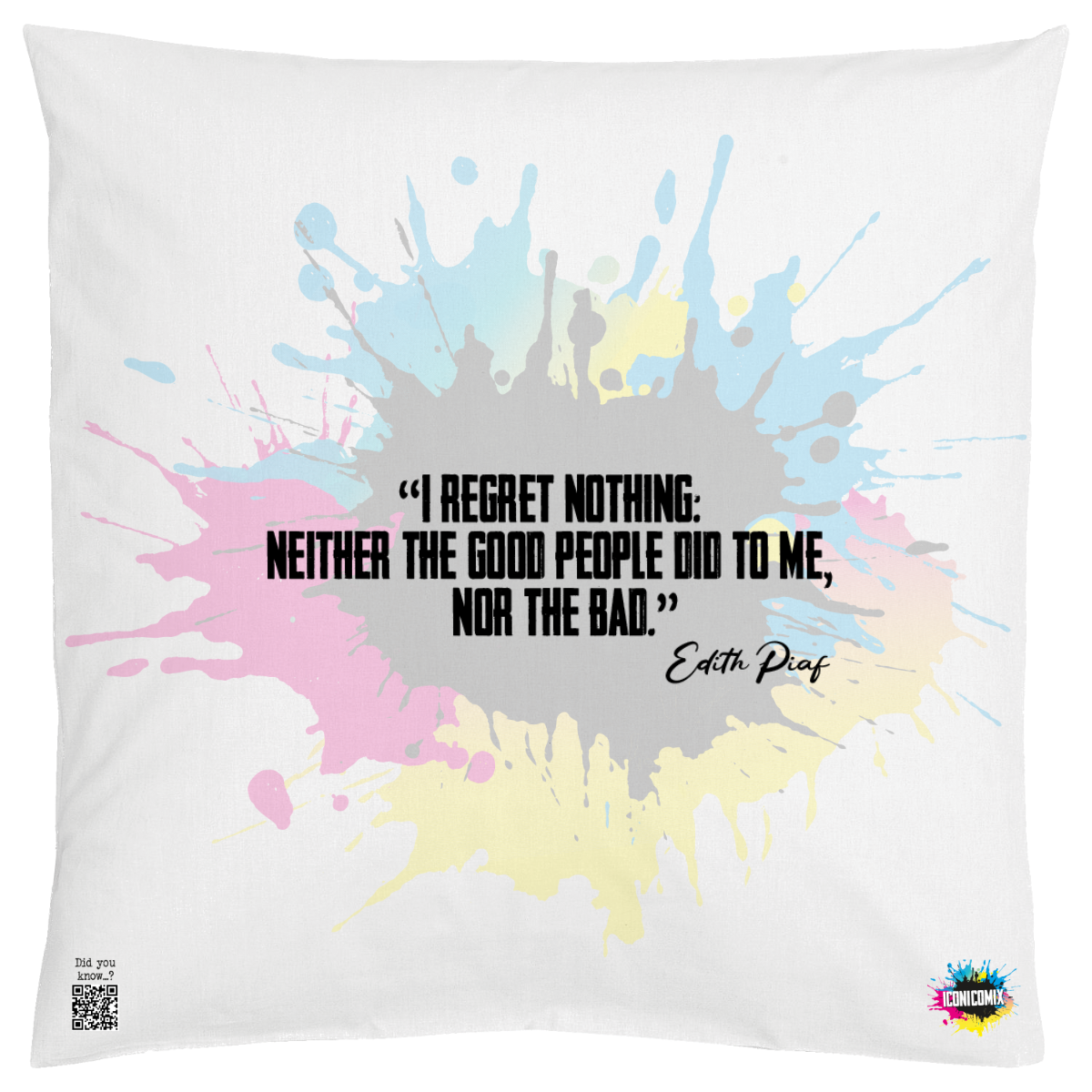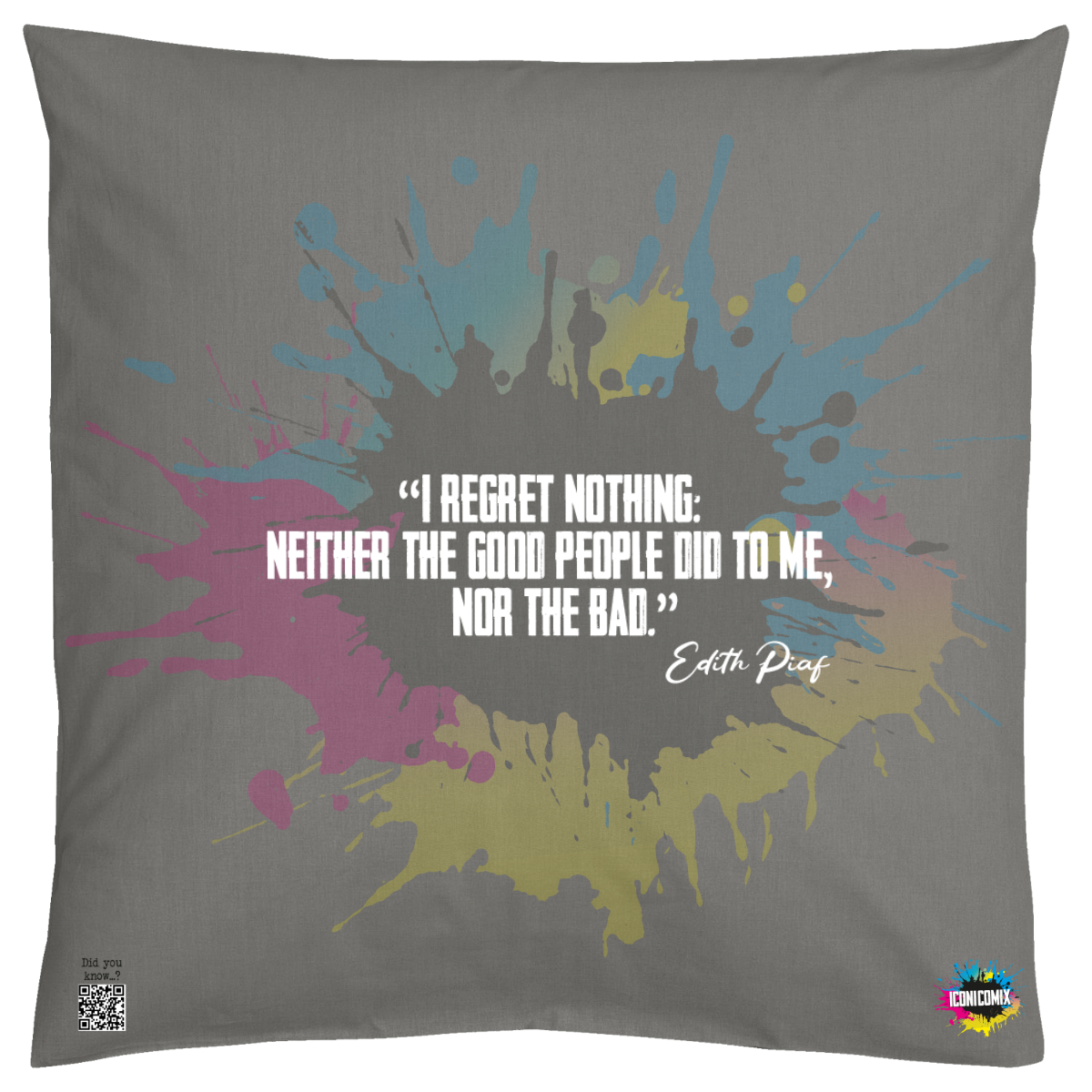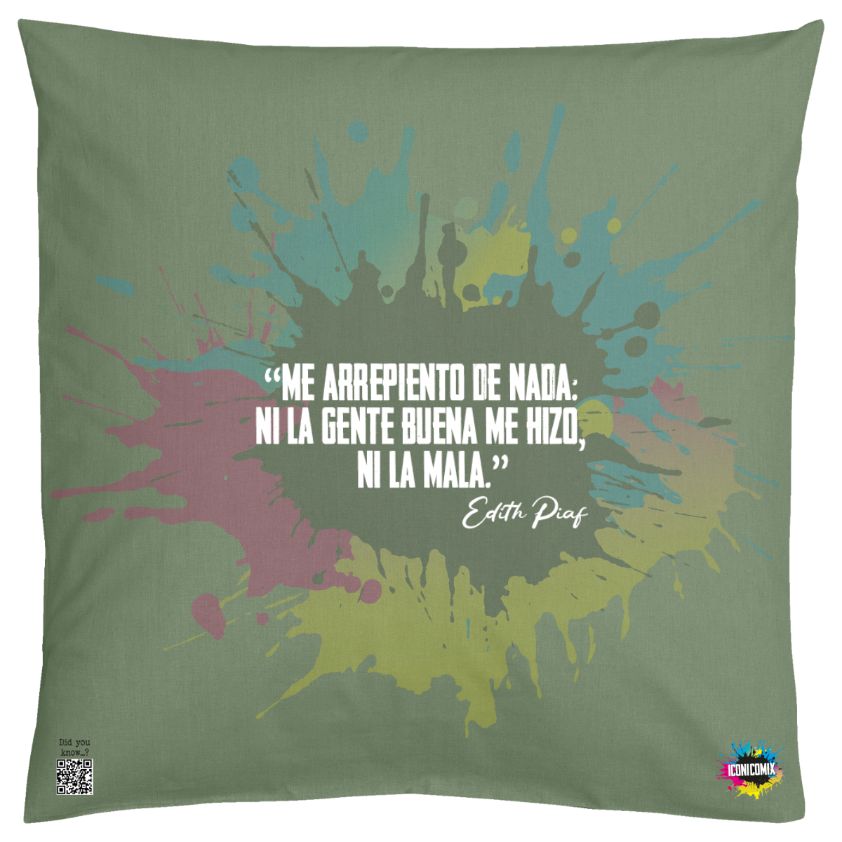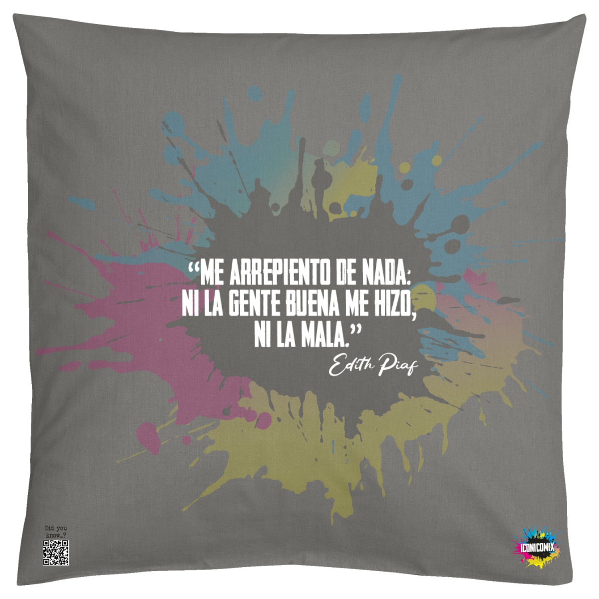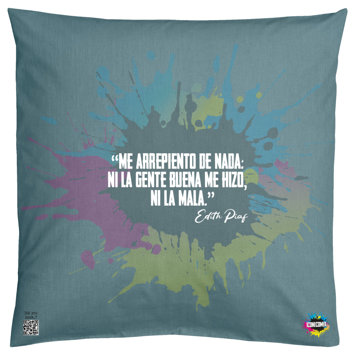 Cada uno de nuestros diseños incluye un código QR que te redirige a iconicomix.com, la página oficial del icono que has elegido. Un portal digital que narra su historia, sus frases y su universo.