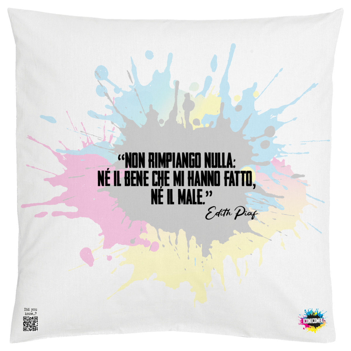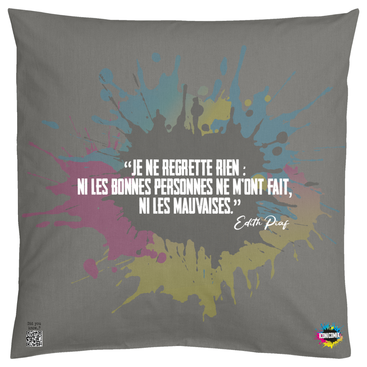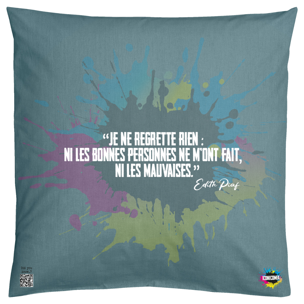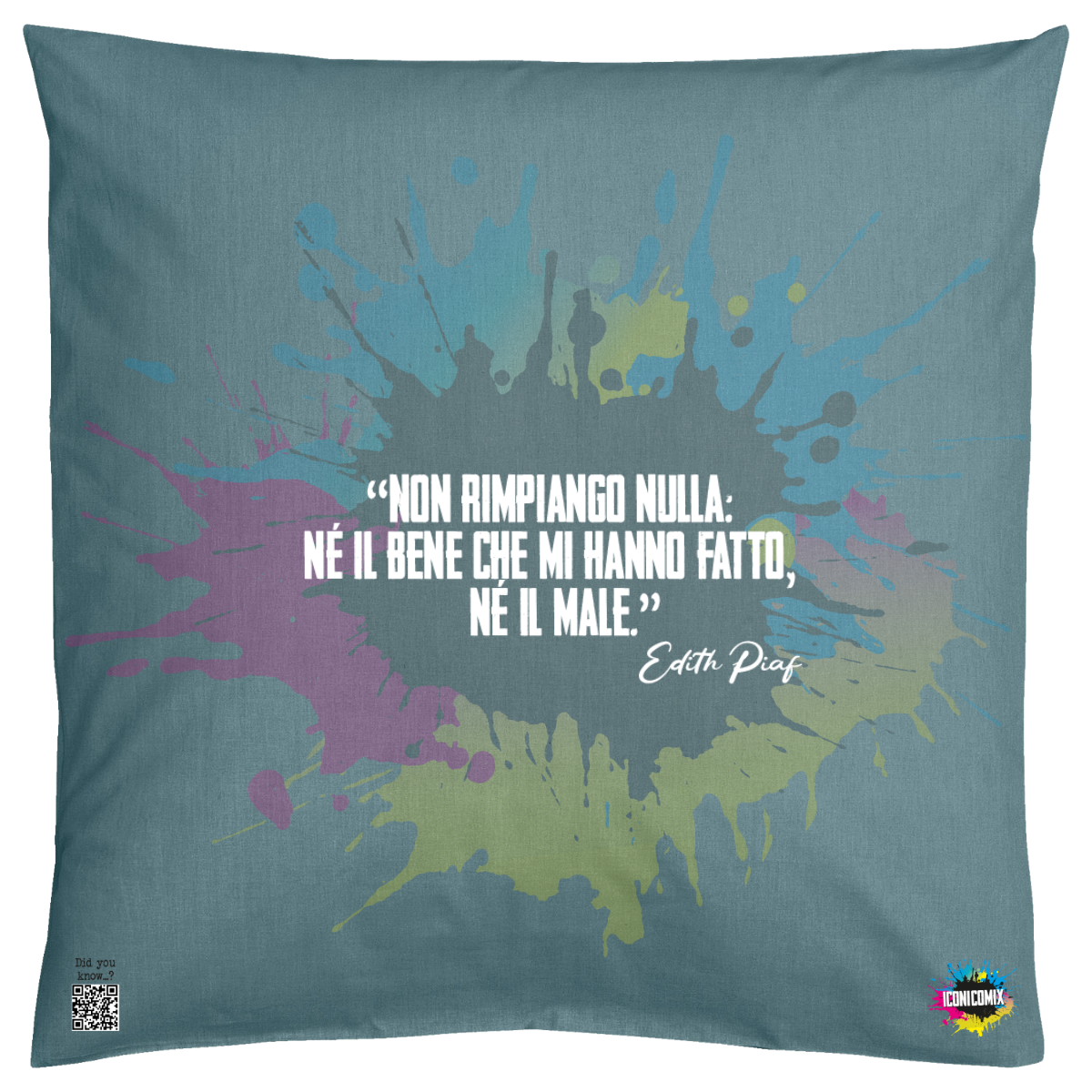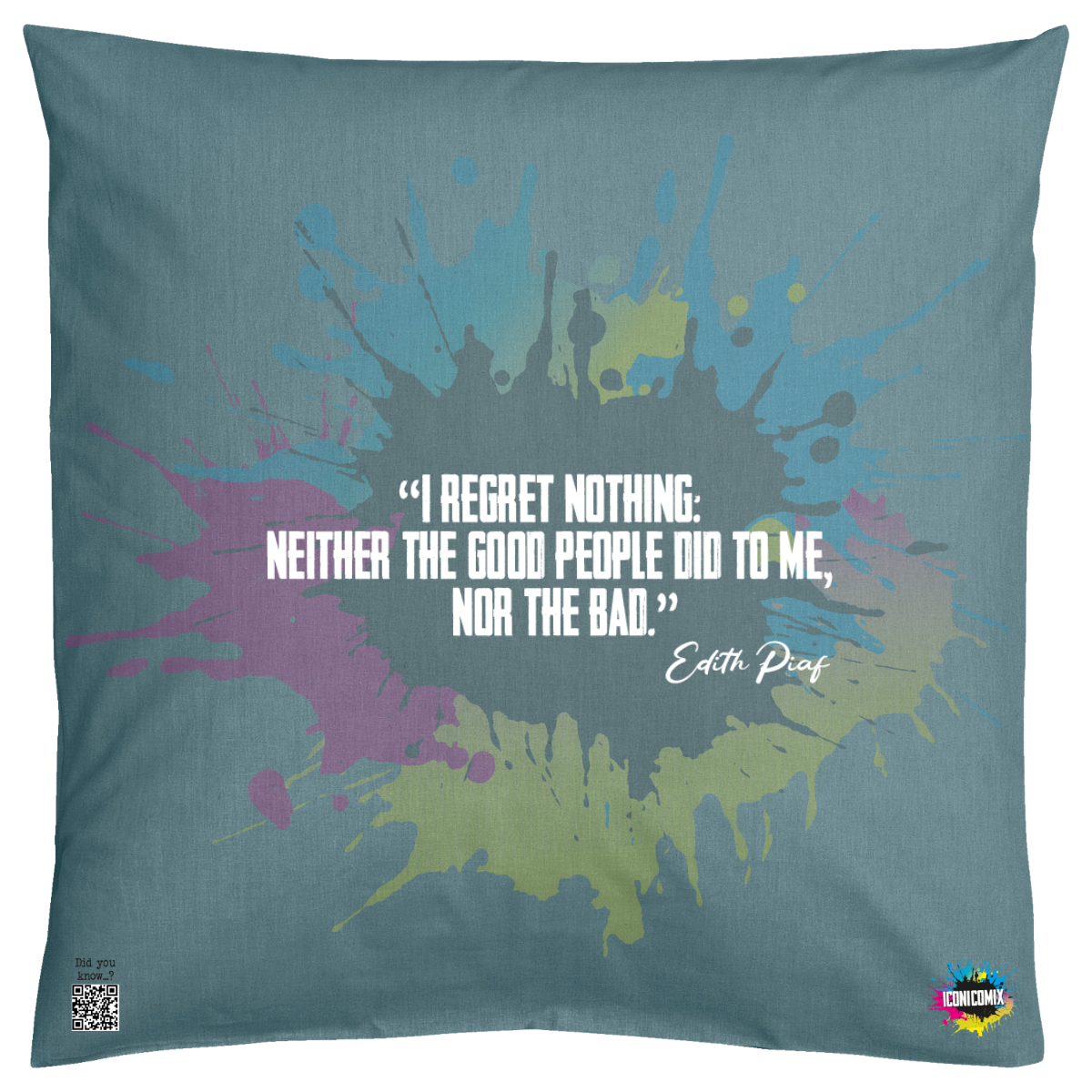 Cada uno de nuestros diseños incluye un código QR que te redirige a iconicomix.com, la página oficial del icono que has elegido. Un portal digital que narra su historia, sus frases y su universo.