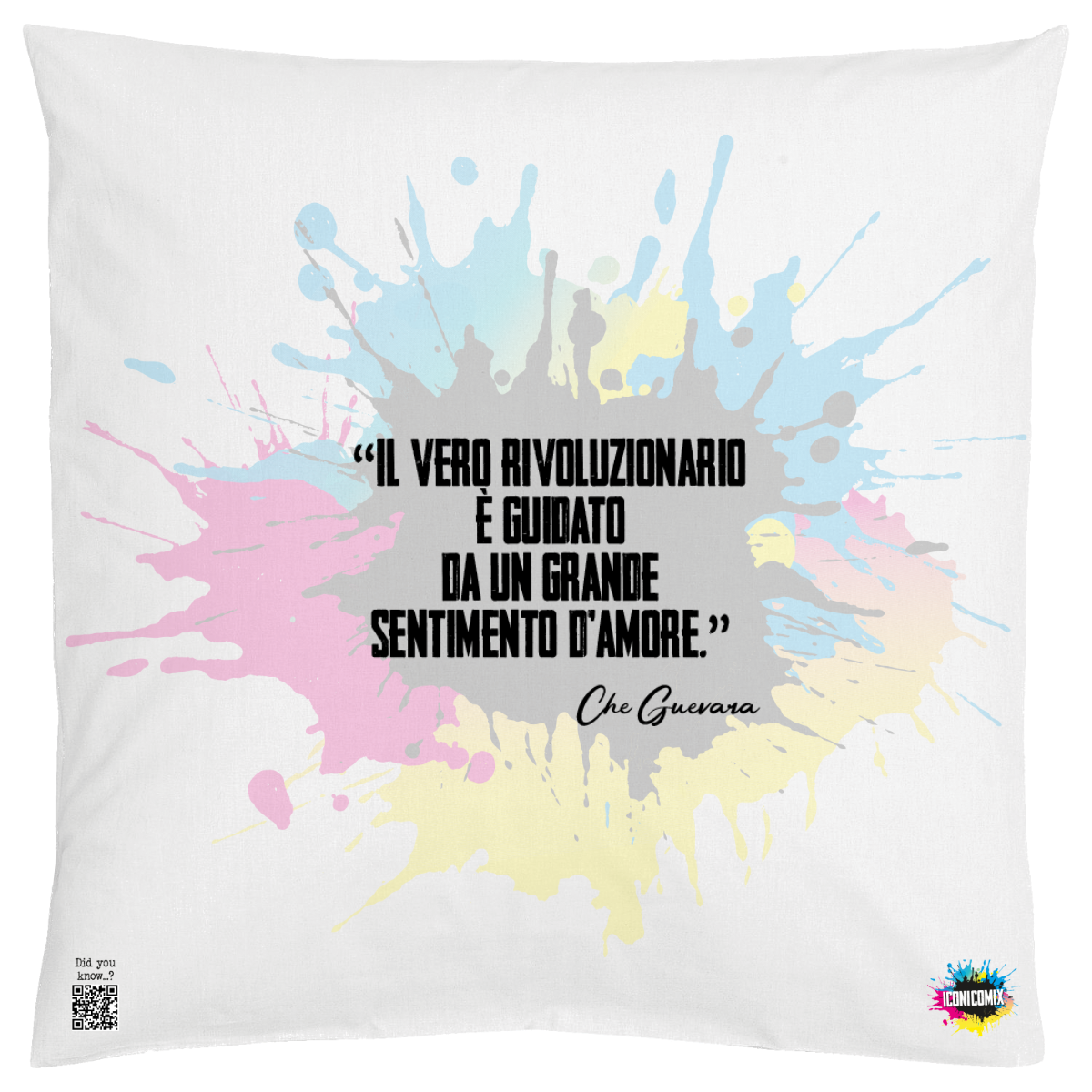 In ogni nostra grafica è presente anche un QR code che reindirizza al sito iconicomix.com, alla pagina ufficiale dell’icona che hai scelto. Una porta digitale che racconta la sua storia, le sue frasi e il suo mondo.