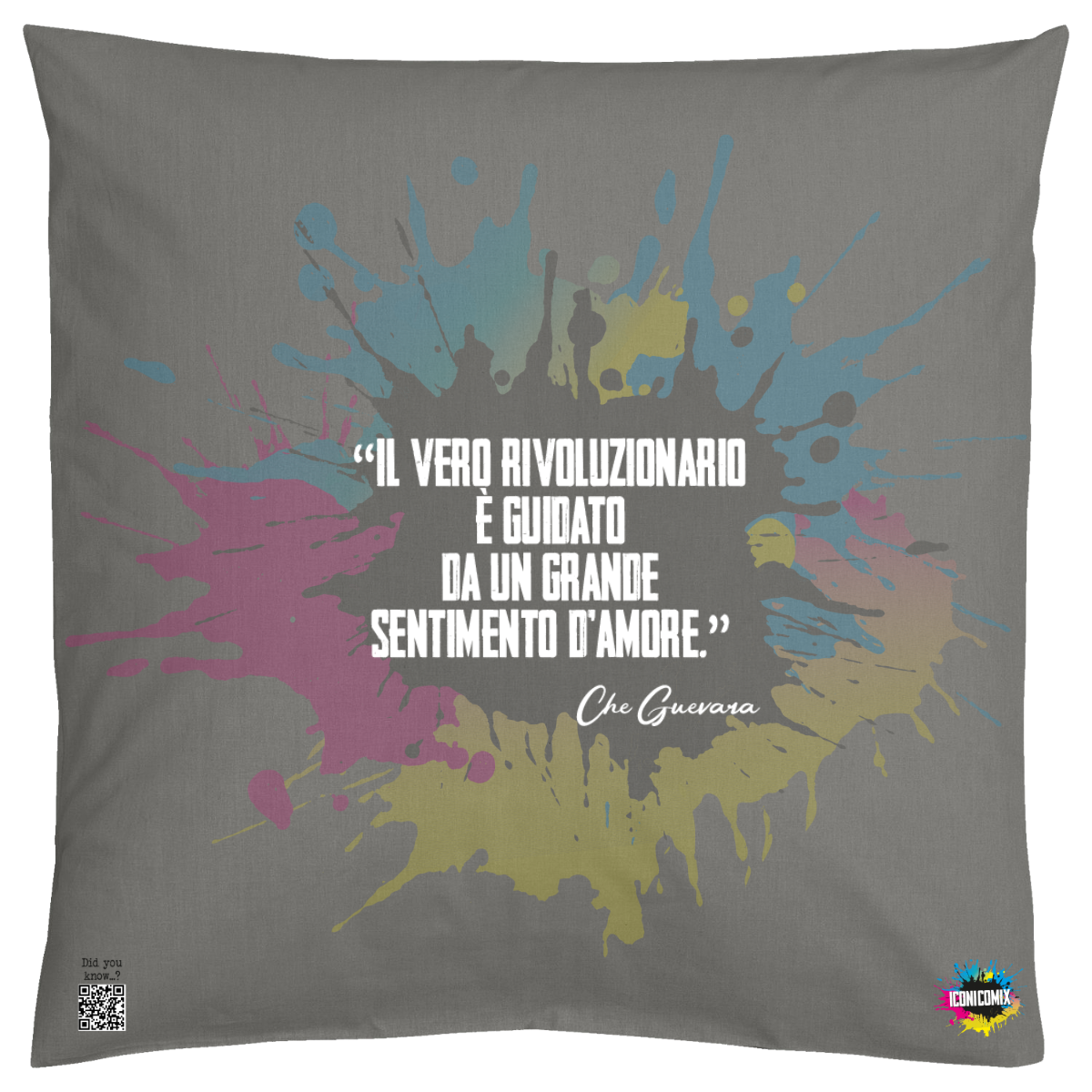 In ogni nostra grafica è presente anche un QR code che reindirizza al sito iconicomix.com, alla pagina ufficiale dell’icona che hai scelto. Una porta digitale che racconta la sua storia, le sue frasi e il suo mondo.