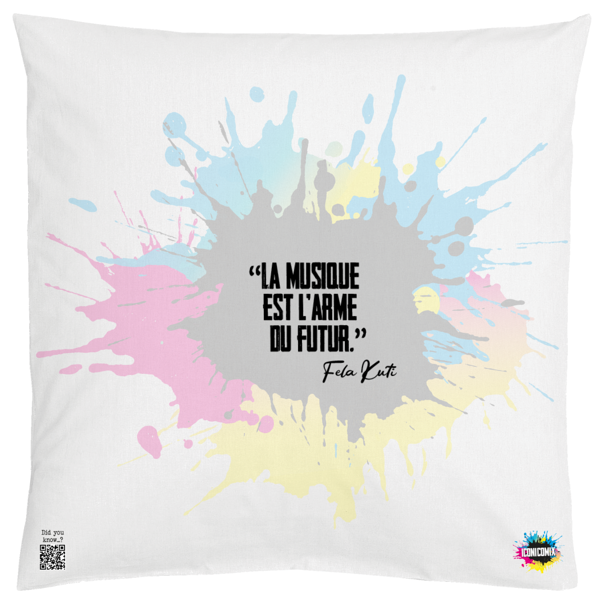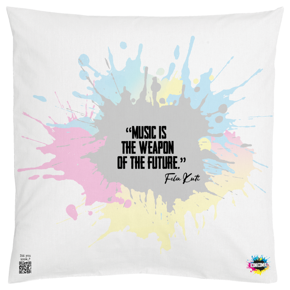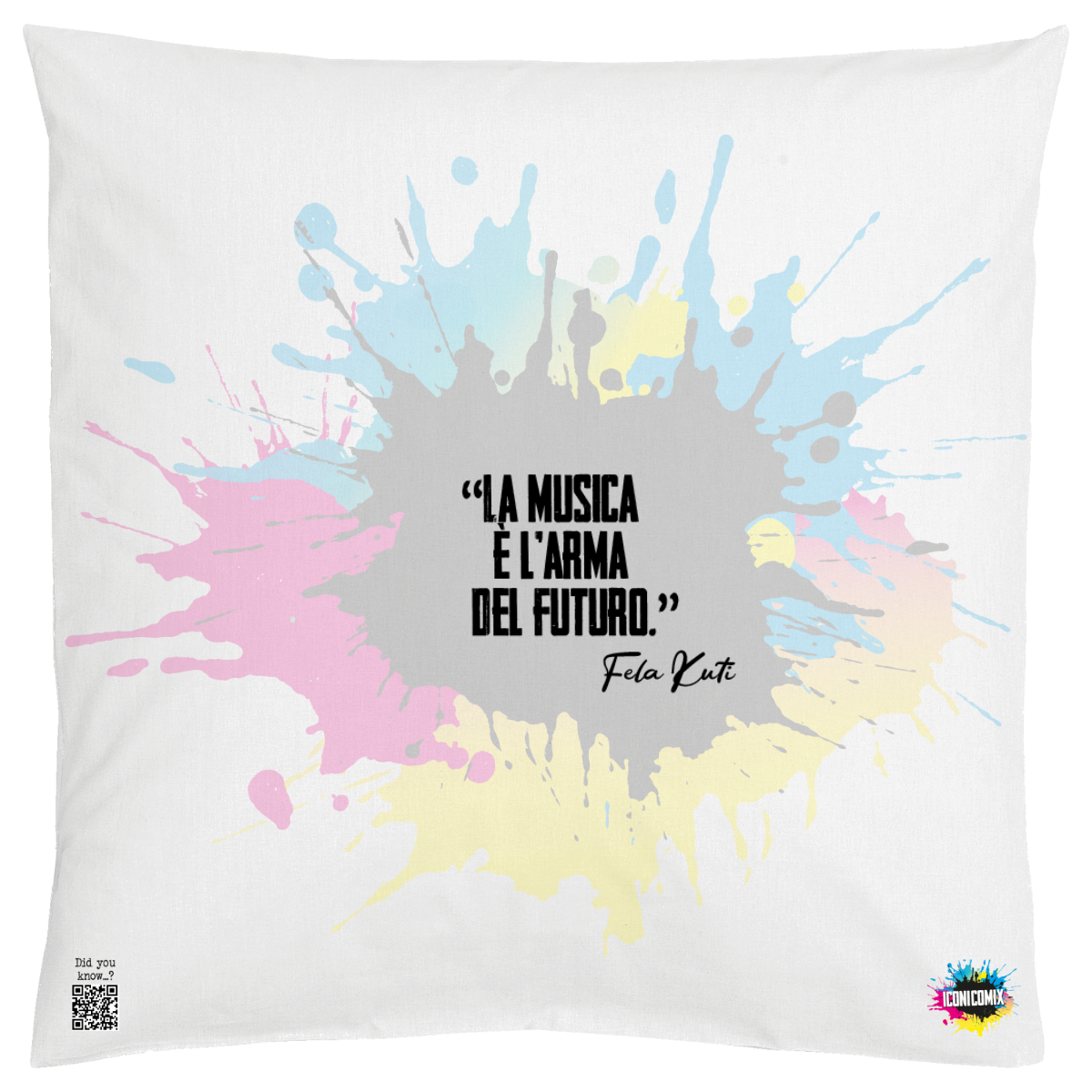 In ogni nostra grafica è presente anche un QR code che reindirizza al sito iconicomix.com, alla pagina ufficiale dell’icona che hai scelto. Una porta digitale che racconta la sua storia, le sue frasi e il suo mondo.