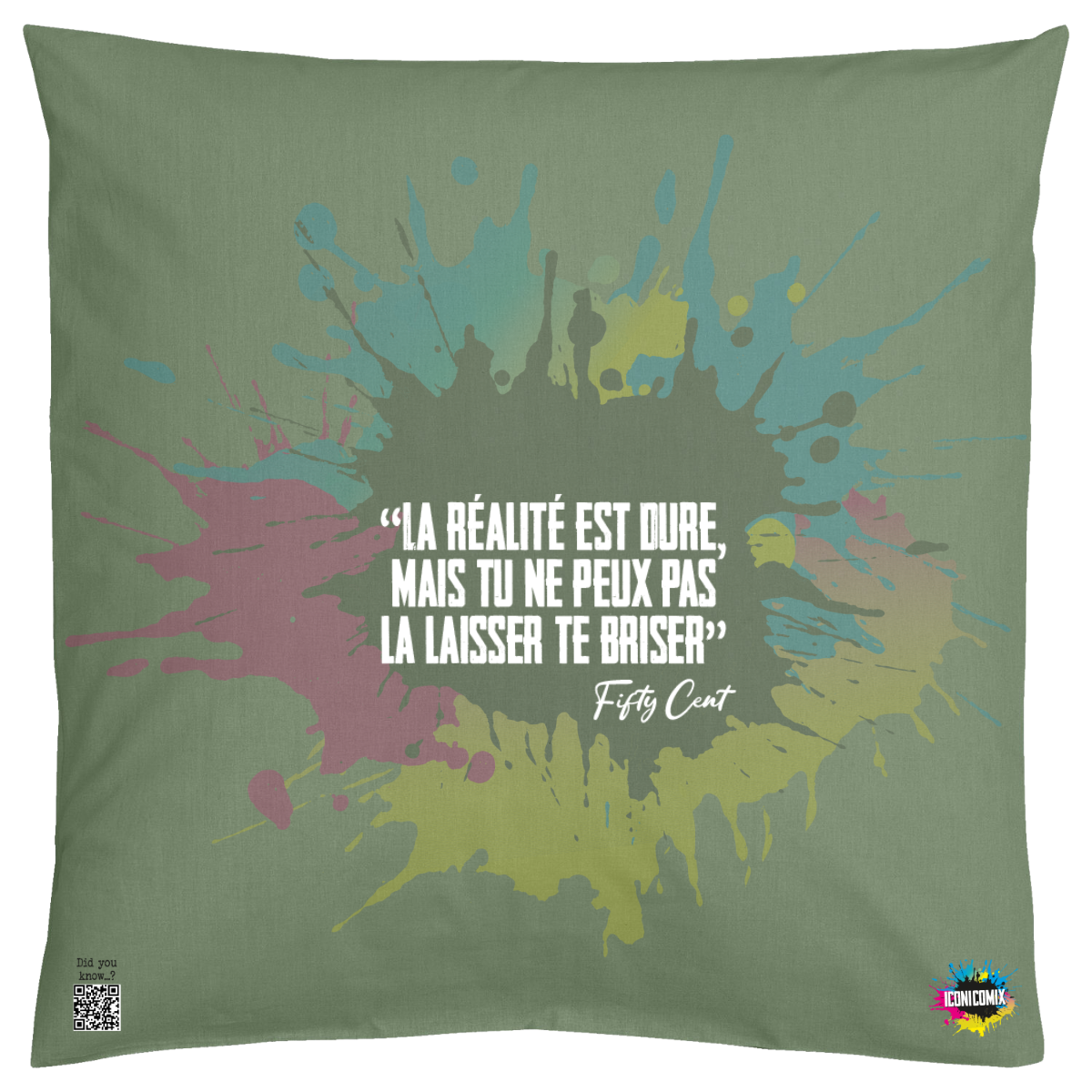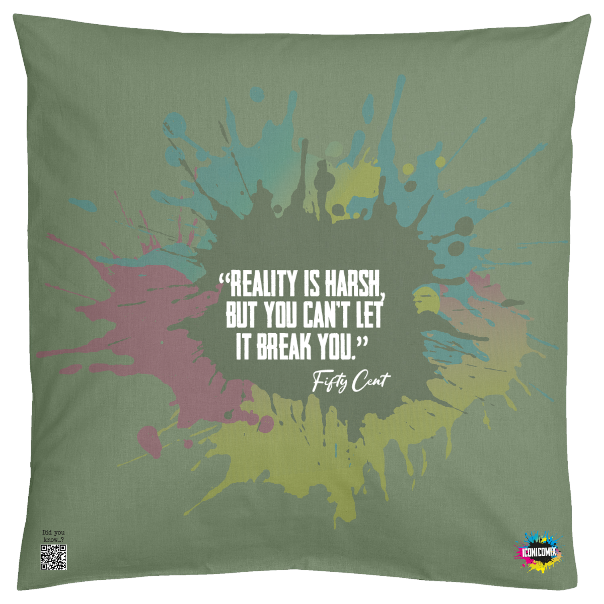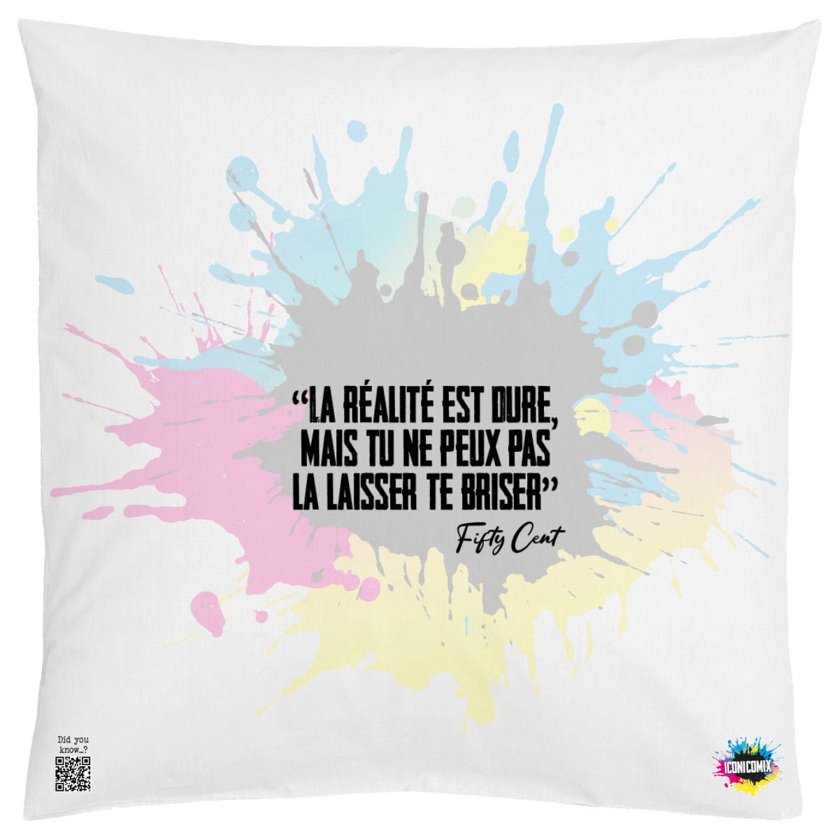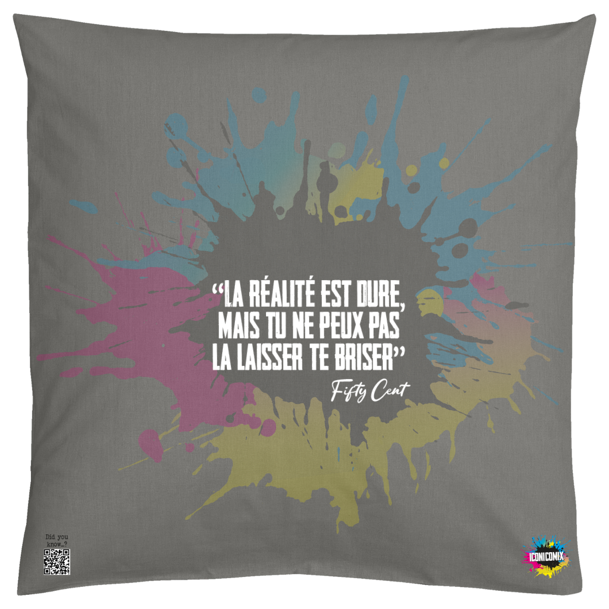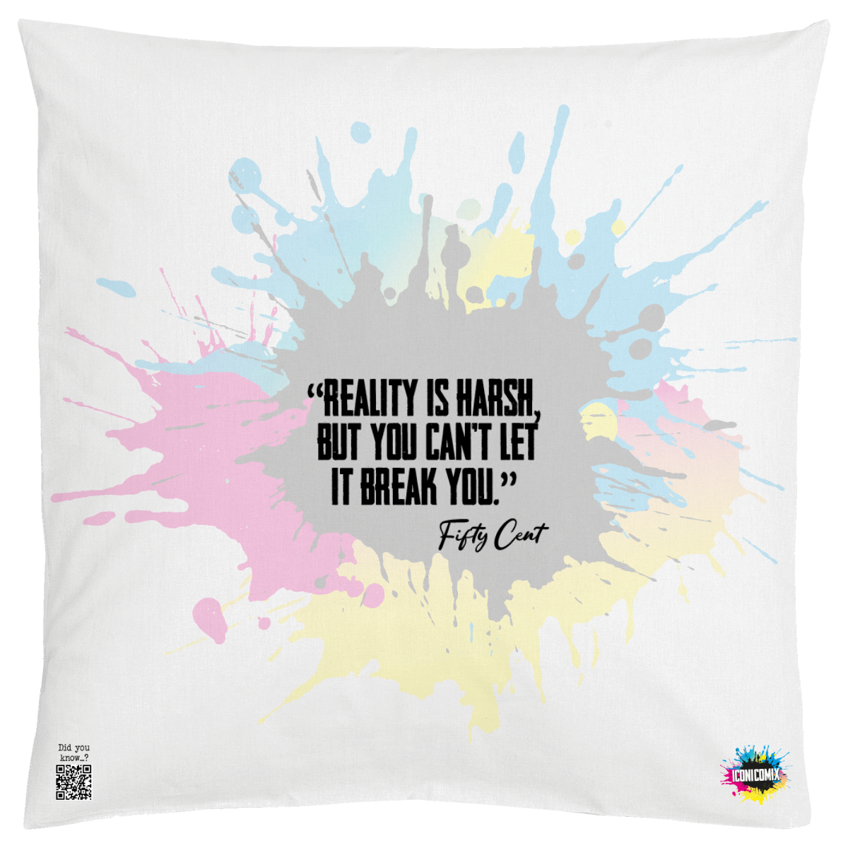 In ogni nostra grafica è presente anche un QR code che reindirizza al sito iconicomix.com, alla pagina ufficiale dell’icona che hai scelto. Una porta digitale che racconta la sua storia, le sue frasi e il suo mondo.