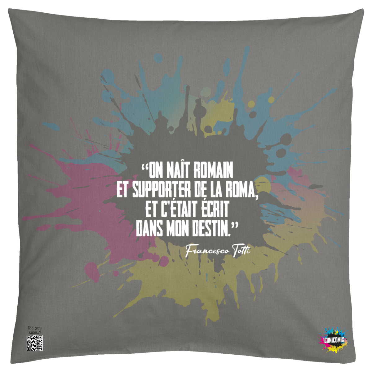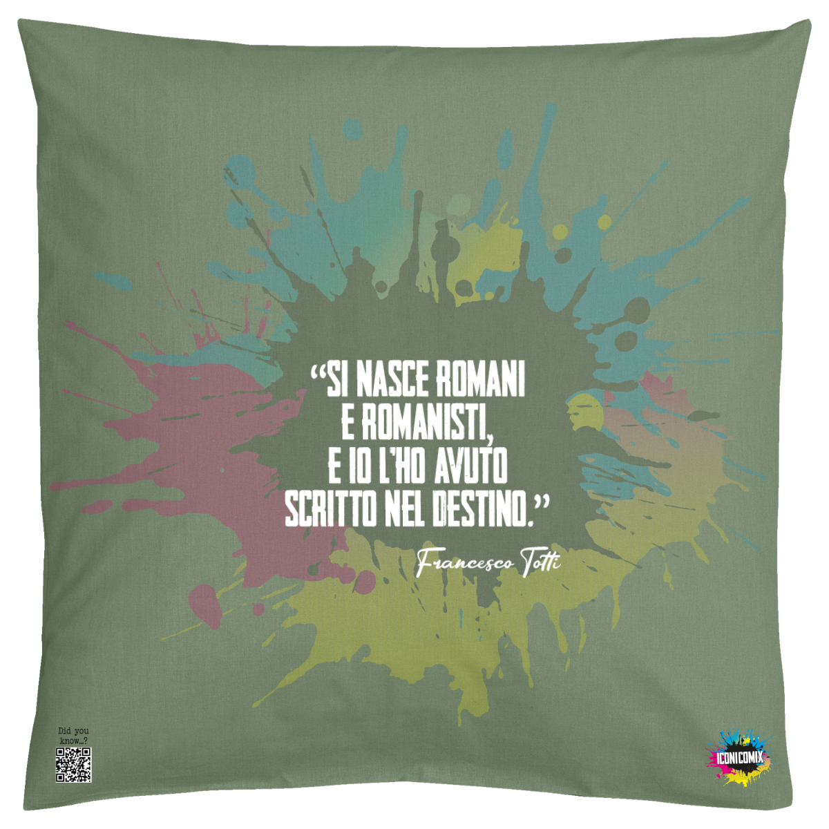 In ogni nostra grafica è presente anche un QR code che reindirizza al sito iconicomix.com, alla pagina ufficiale dell’icona che hai scelto. Una porta digitale che racconta la sua storia, le sue frasi e il suo mondo.