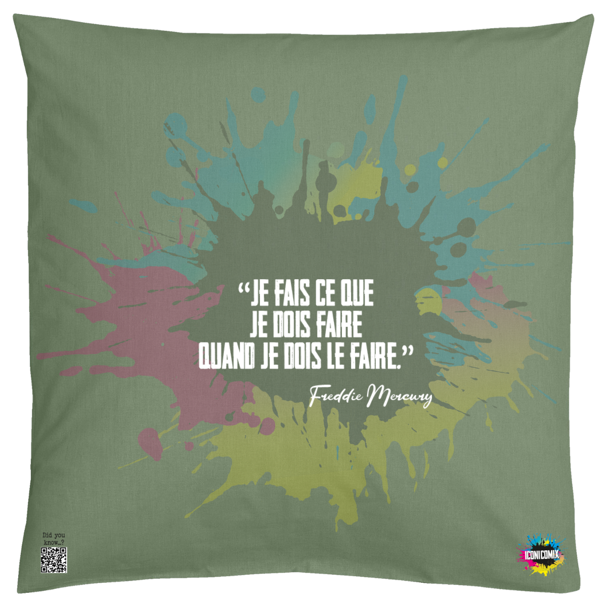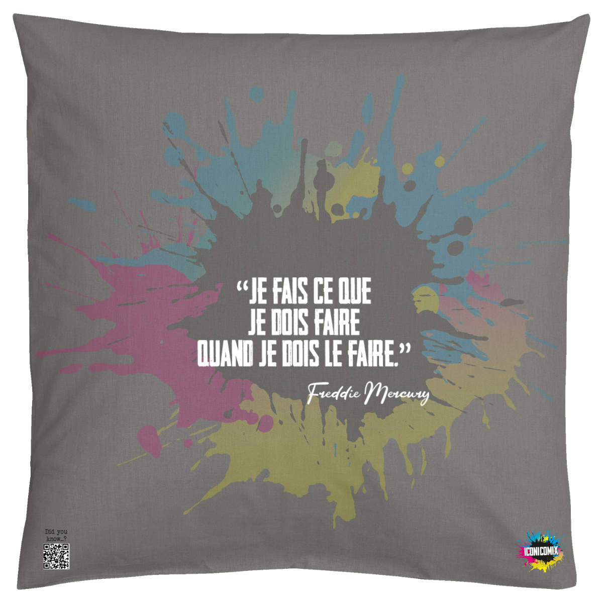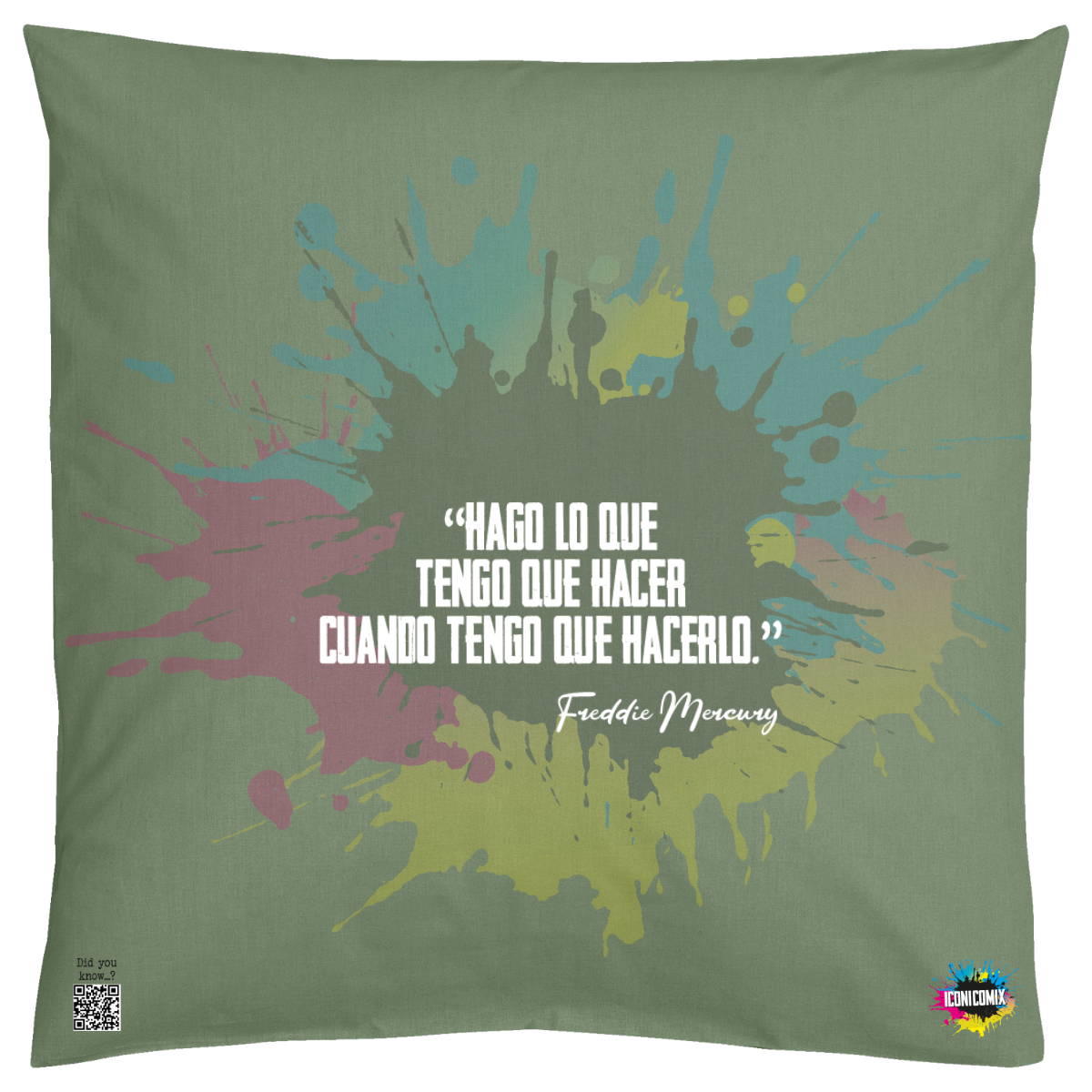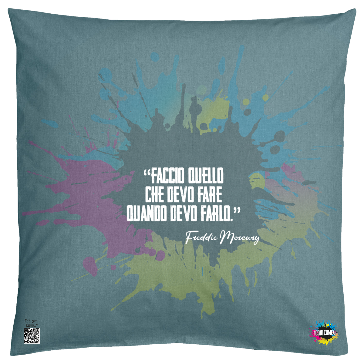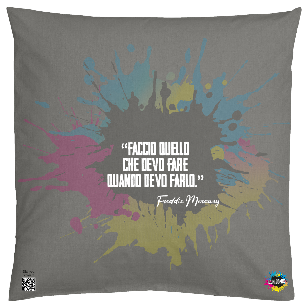 In ogni nostra grafica è presente anche un QR code che reindirizza al sito iconicomix.com, alla pagina ufficiale dell’icona che hai scelto. Una porta digitale che racconta la sua storia, le sue frasi e il suo mondo.