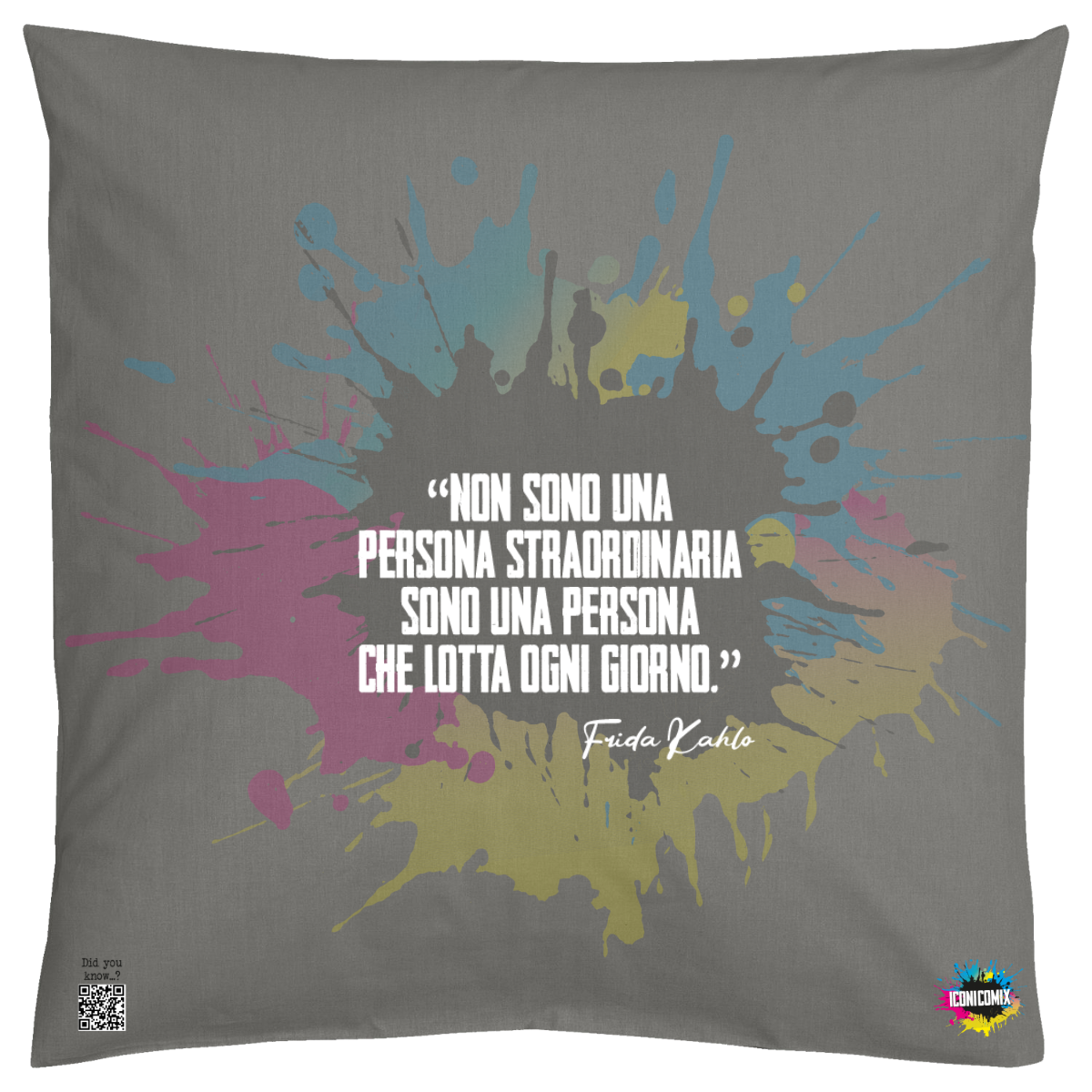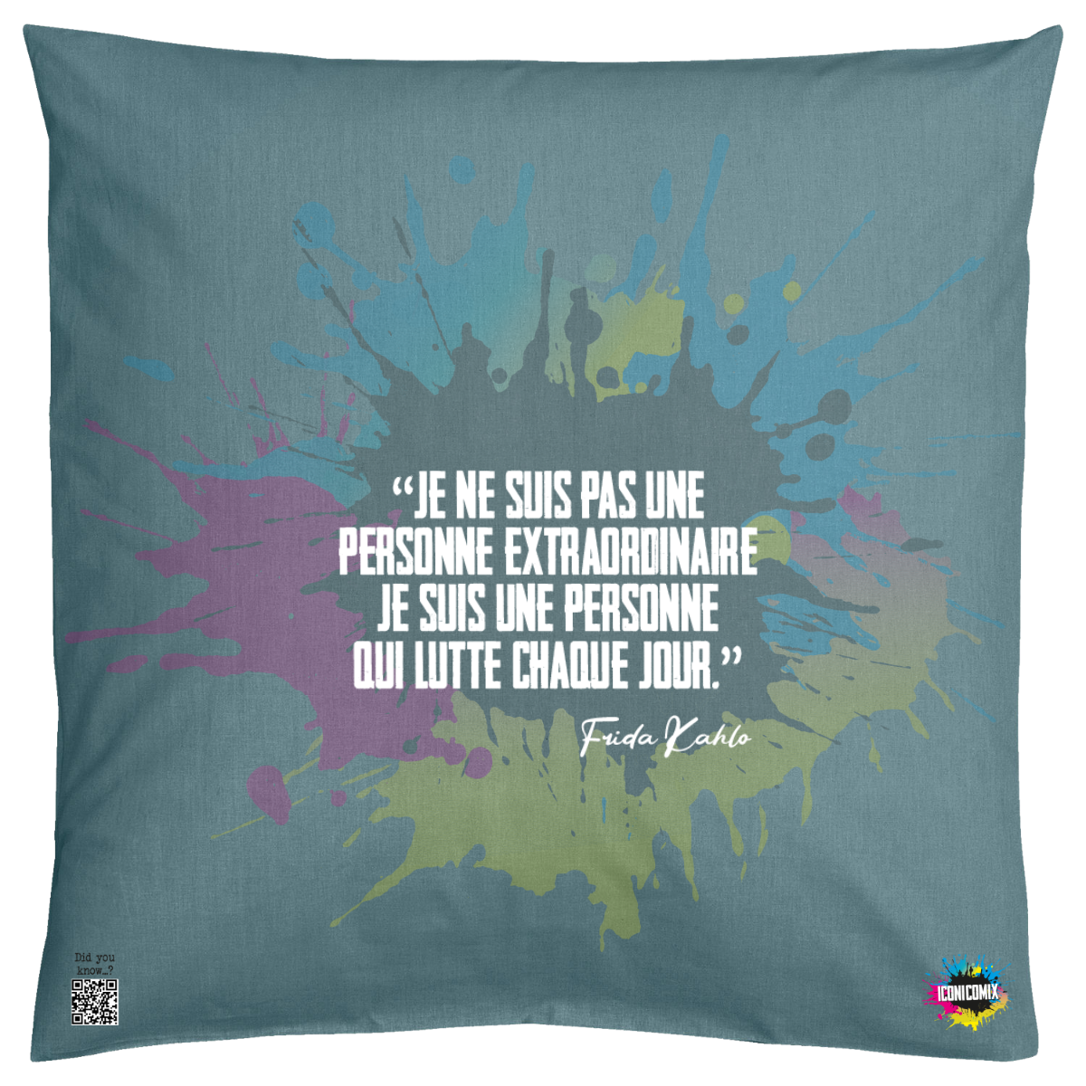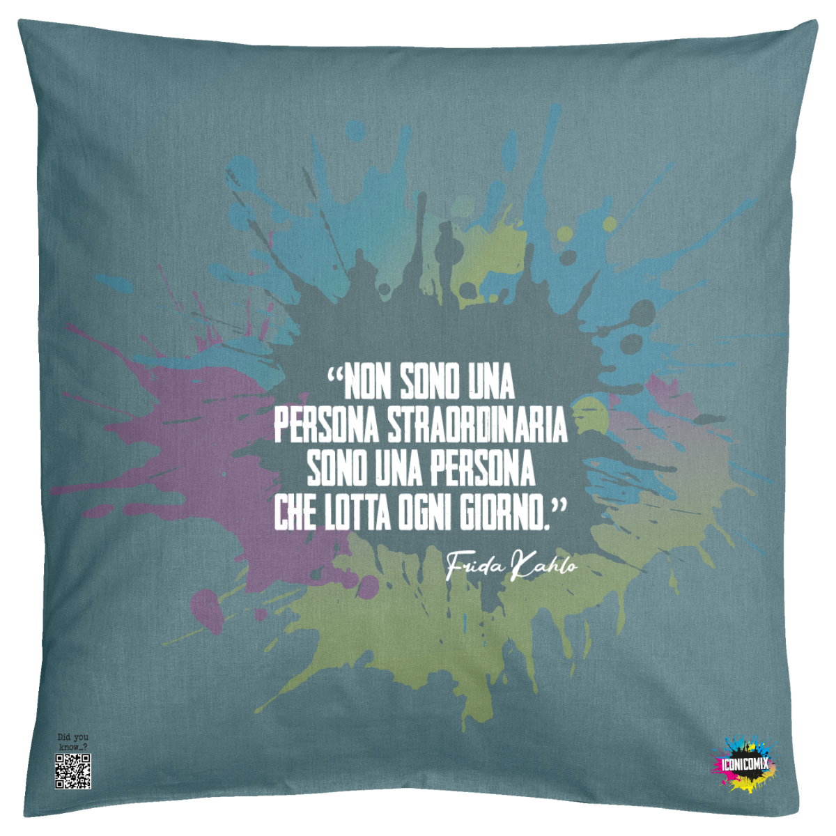 Each of our graphics also features a QR code that redirects you to the iconicomix.com website, the official page of the icon you've chosen. A digital gateway that tells its story, its phrases, and its world.