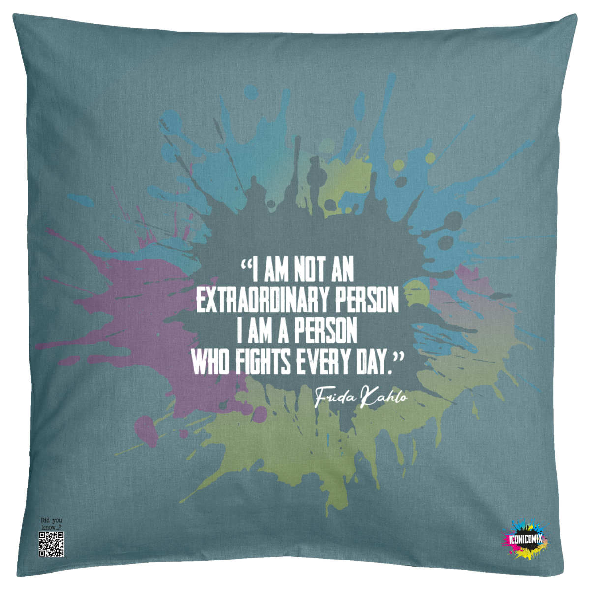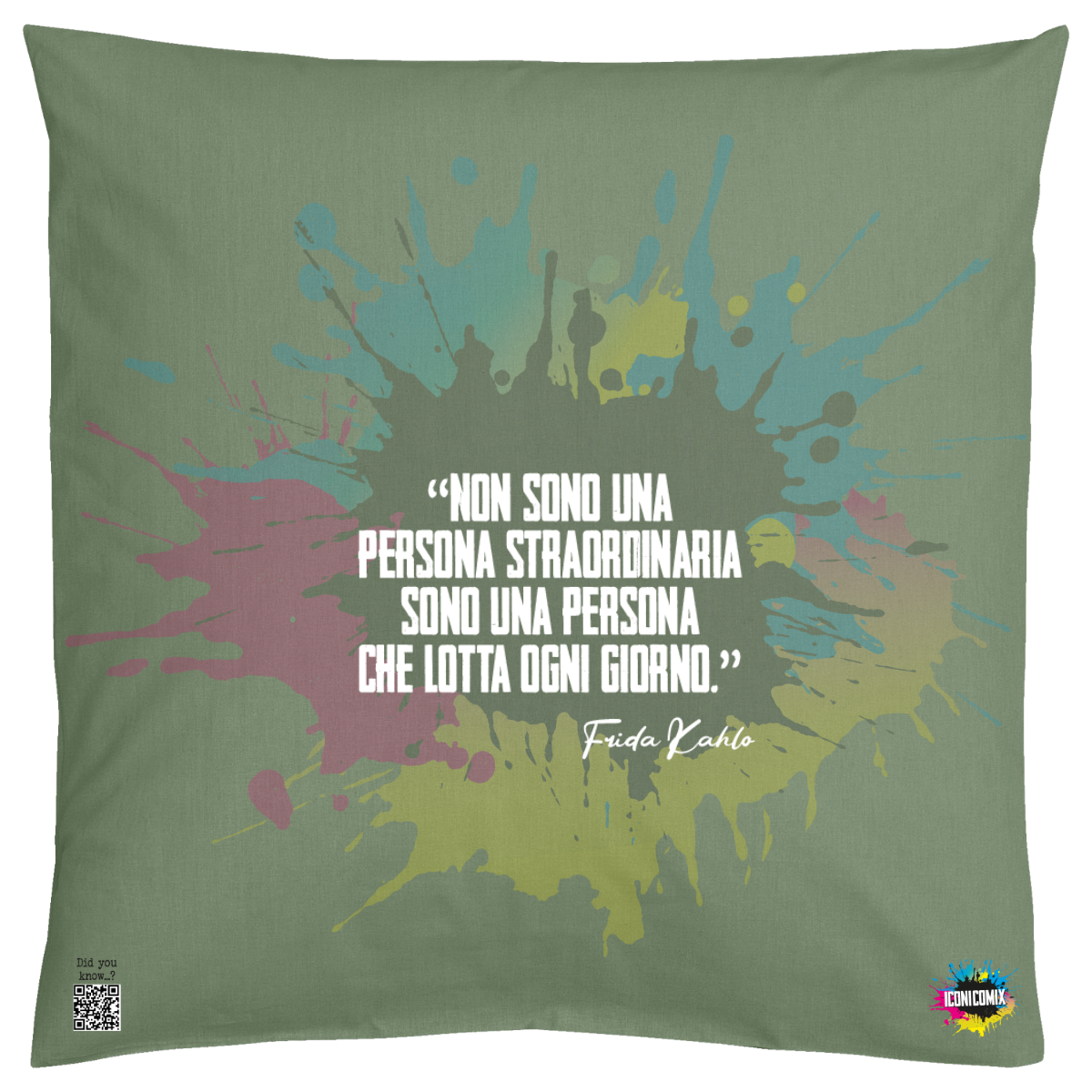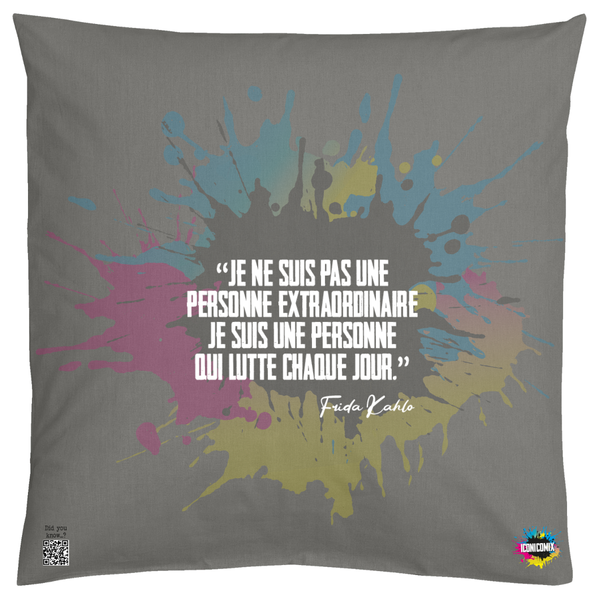 Each of our graphics also features a QR code that redirects you to the iconicomix.com website, the official page of the icon you've chosen. A digital gateway that tells its story, its phrases, and its world.
