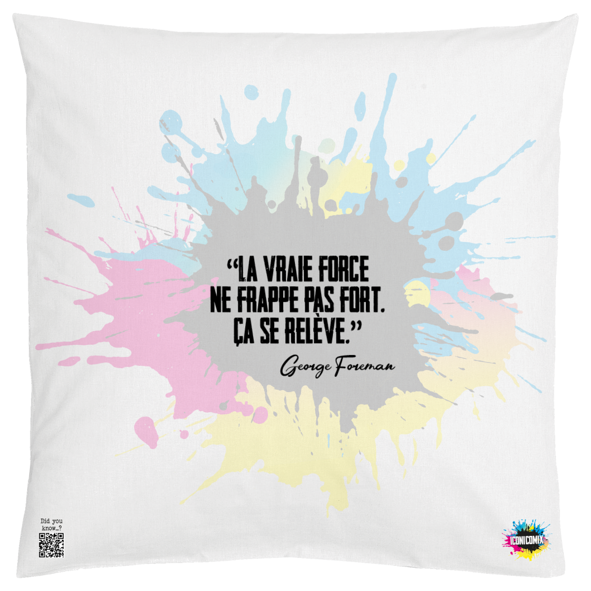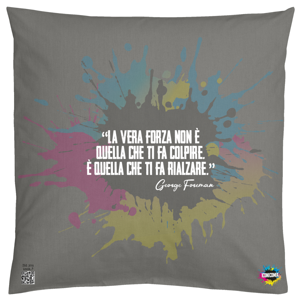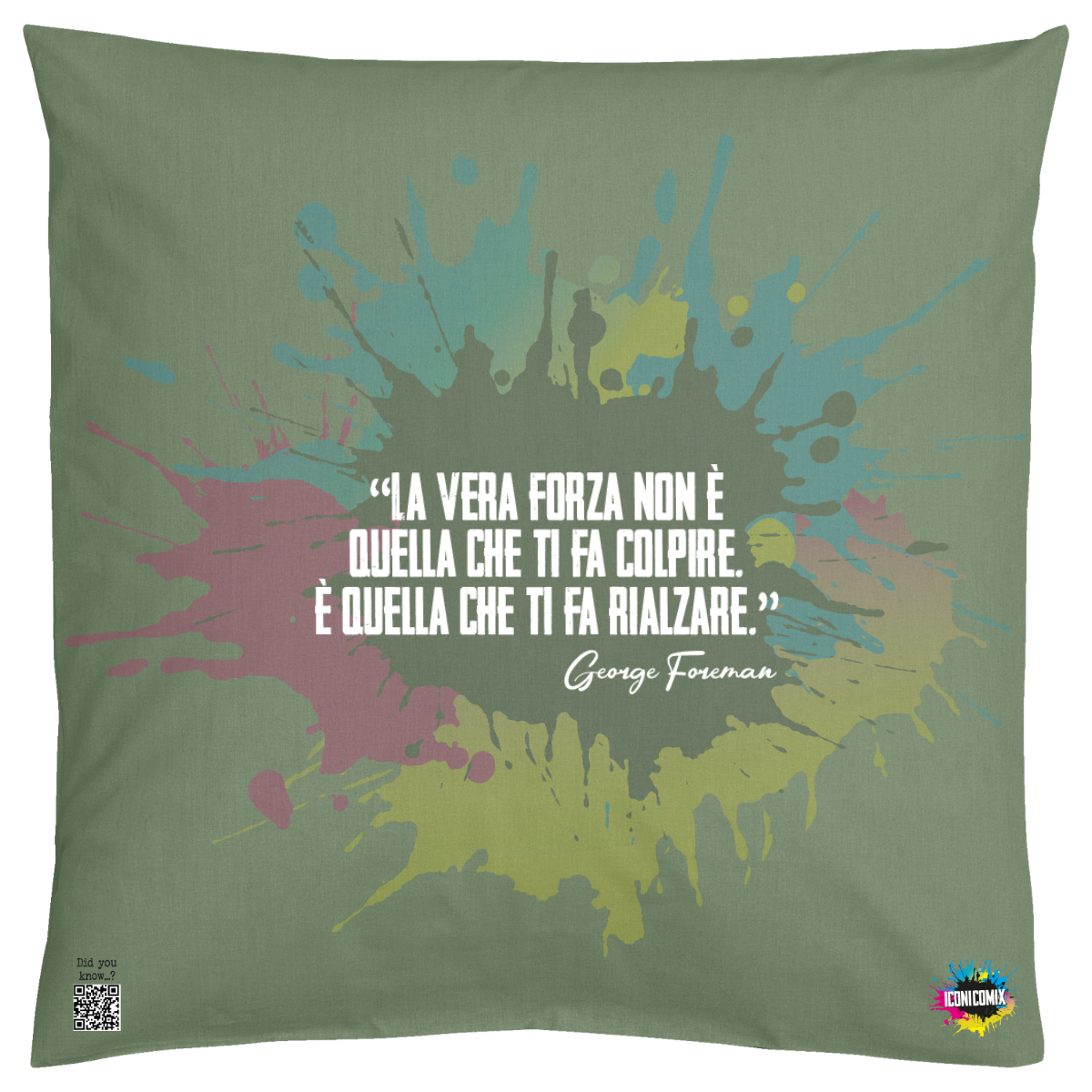 In ogni nostra grafica è presente anche un QR code che reindirizza al sito iconicomix.com, alla pagina ufficiale dell’icona che hai scelto. Una porta digitale che racconta la sua storia, le sue frasi e il suo mondo.