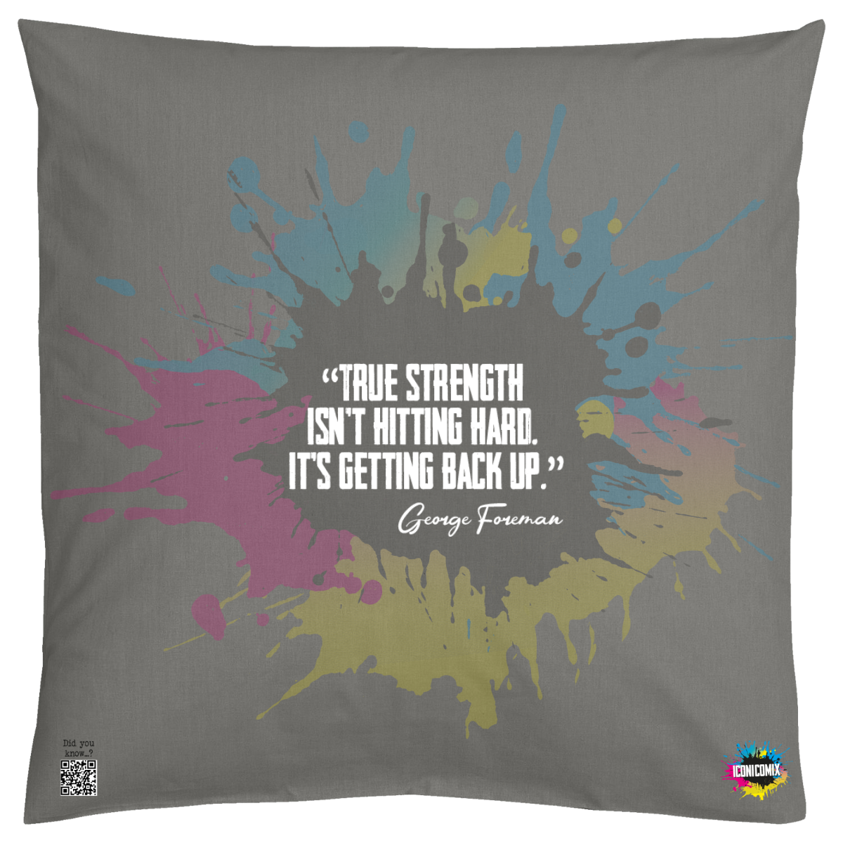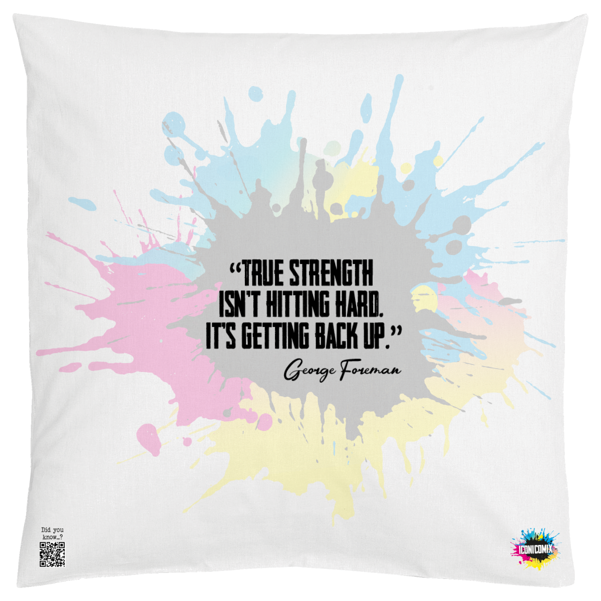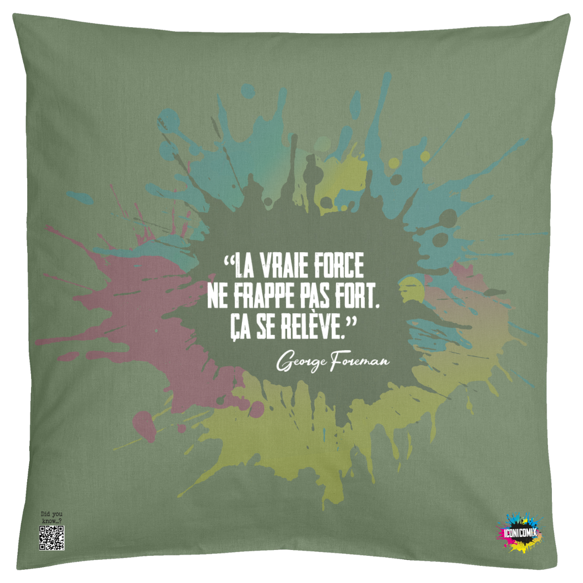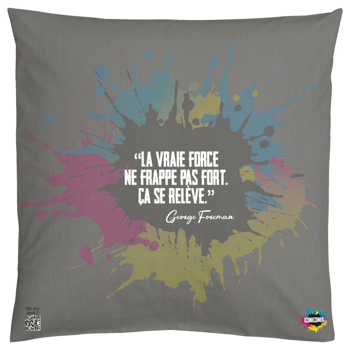 In ogni nostra grafica è presente anche un QR code che reindirizza al sito iconicomix.com, alla pagina ufficiale dell’icona che hai scelto. Una porta digitale che racconta la sua storia, le sue frasi e il suo mondo.